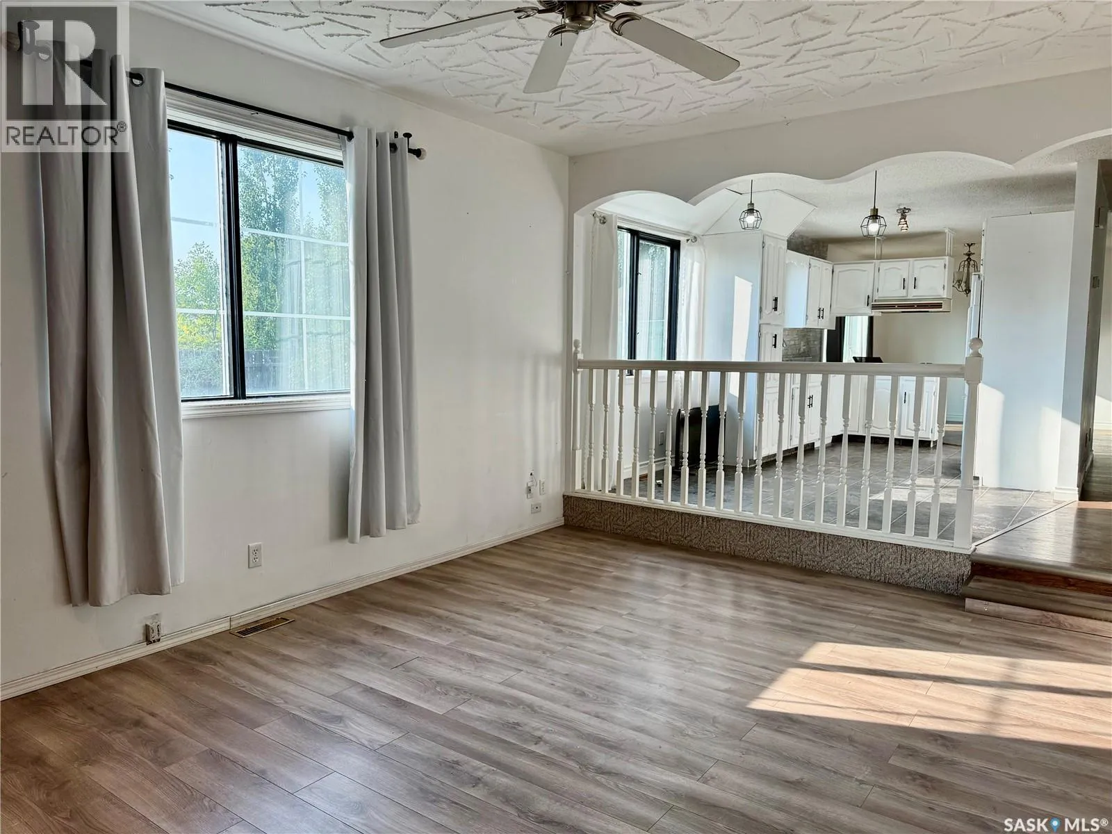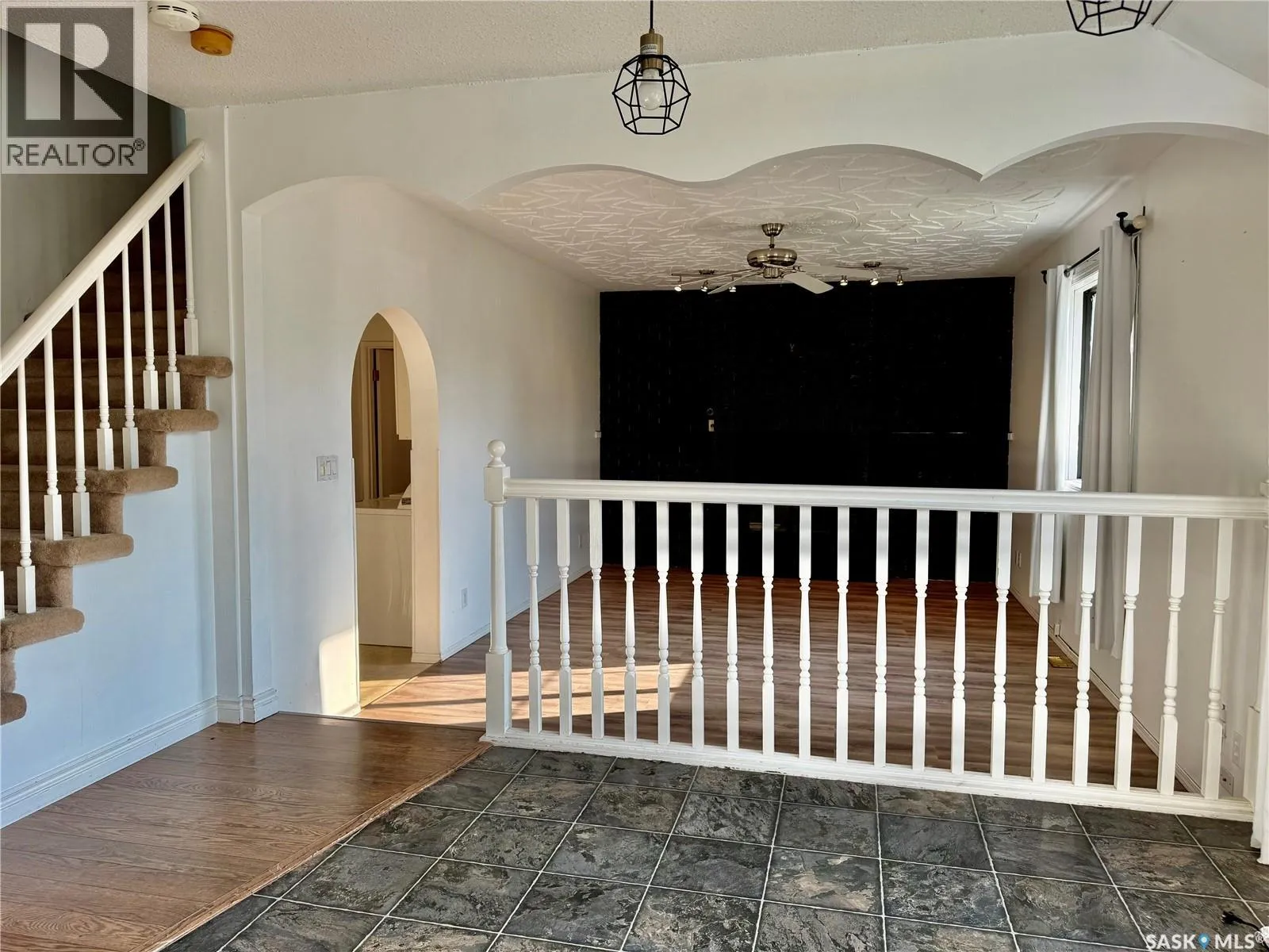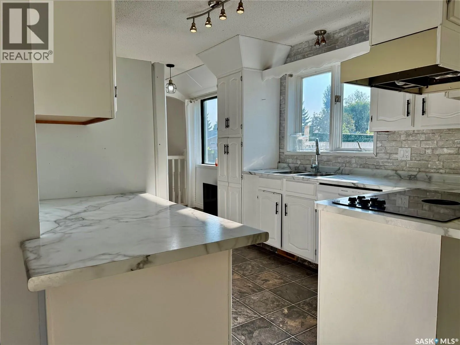 Room for the whole family! This 2-storey split in the City of Humboldt features 4 bedrooms, 3 bathrooms, and a layout designed for comfort and convenience. The second floor offers a large primary retreat with a cozy fireplace, double closets, a 3-piece ensuite, and a walk-in closet with access to a covered balcony overlooking the front yard. Three additional bedrooms and a full 4-piece bathroom complete the upstairs living space. On the main floor, youâll find a bright living room and dining area with patio doors leading to the fenced backyard. The kitchen provides abundant cabinetry, wall oven, cooktop, built-in dishwasher, fridge, and a sunny eating nook. A family room with fireplace offers extra space for gathering, while a convenient laundry/mudroom with direct access to the double attached garage and a 2-piece bath complete the main level. The garage also provides backyard access. Outside, the private yard boasts mature trees, fruit trees, and a patio for enjoying the outdoors. The basement is unfinished and ready for your future development. Updates over the years: Laminate flooring over the years, water heater and furnace within last 10 yrs old, b/i dishwasher approx. 1 yr old. This spacious and functional home is an excellent opportunity in the vibrant City of Humboldt. Call today to view! (id:27476)
