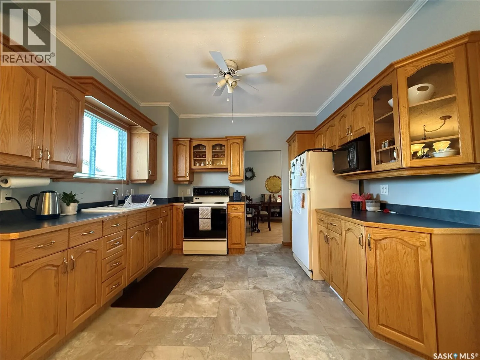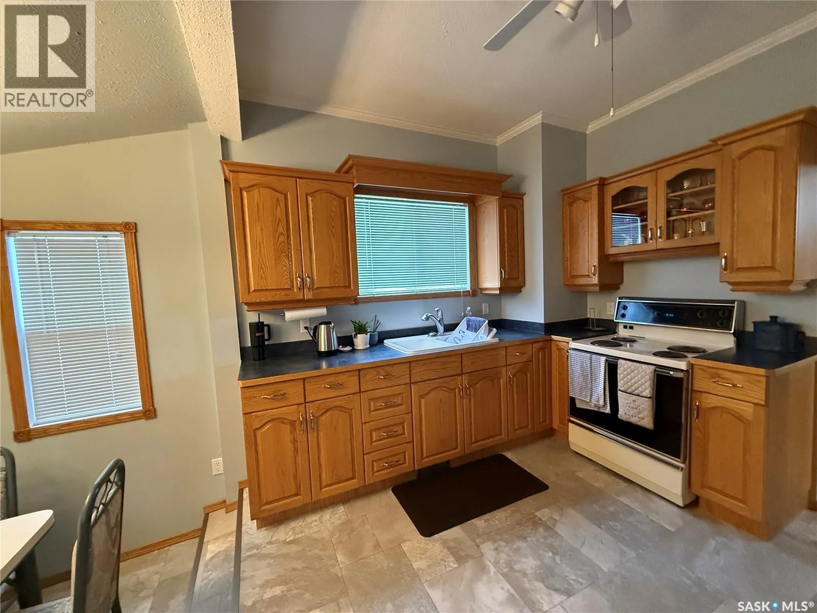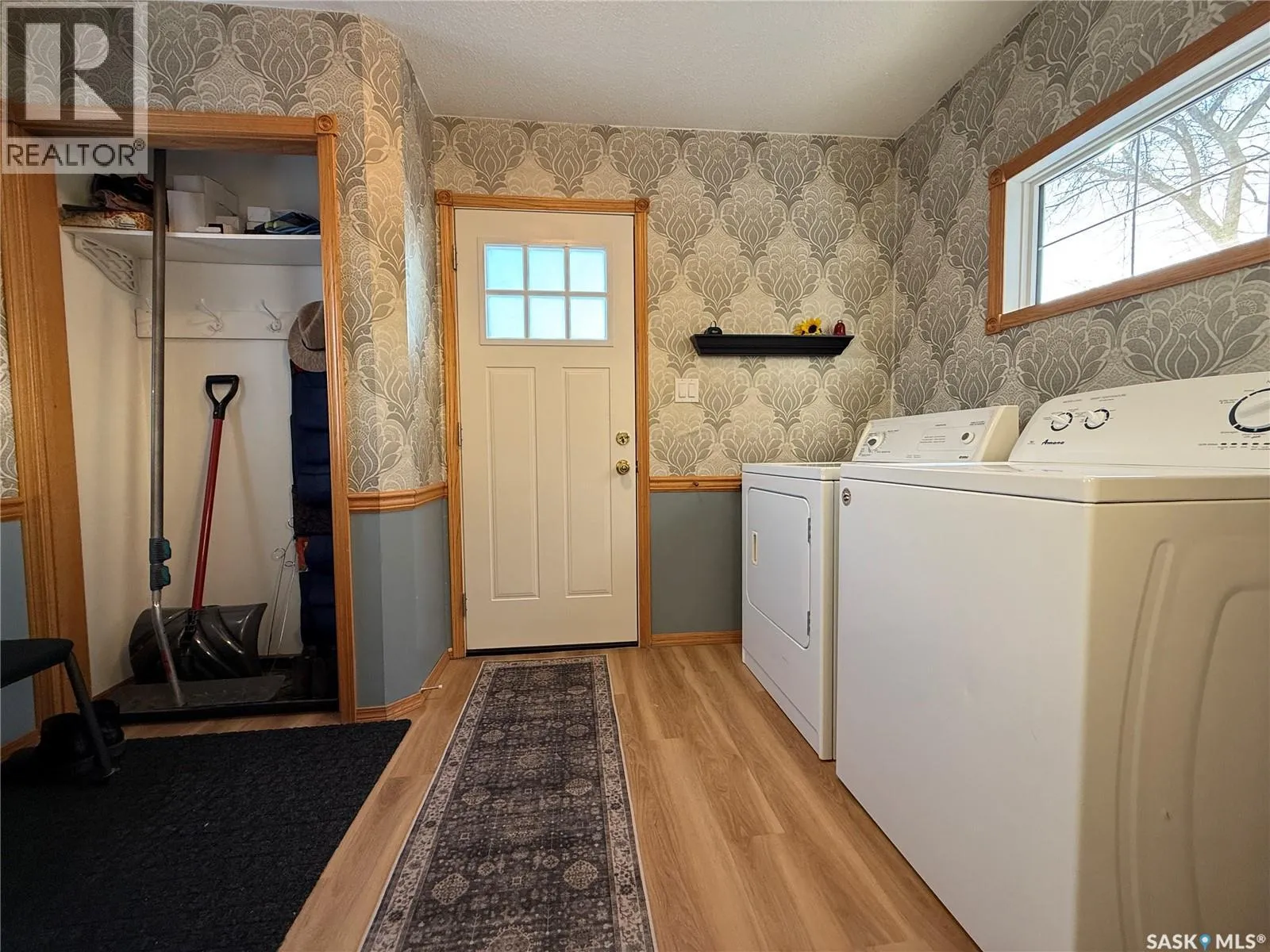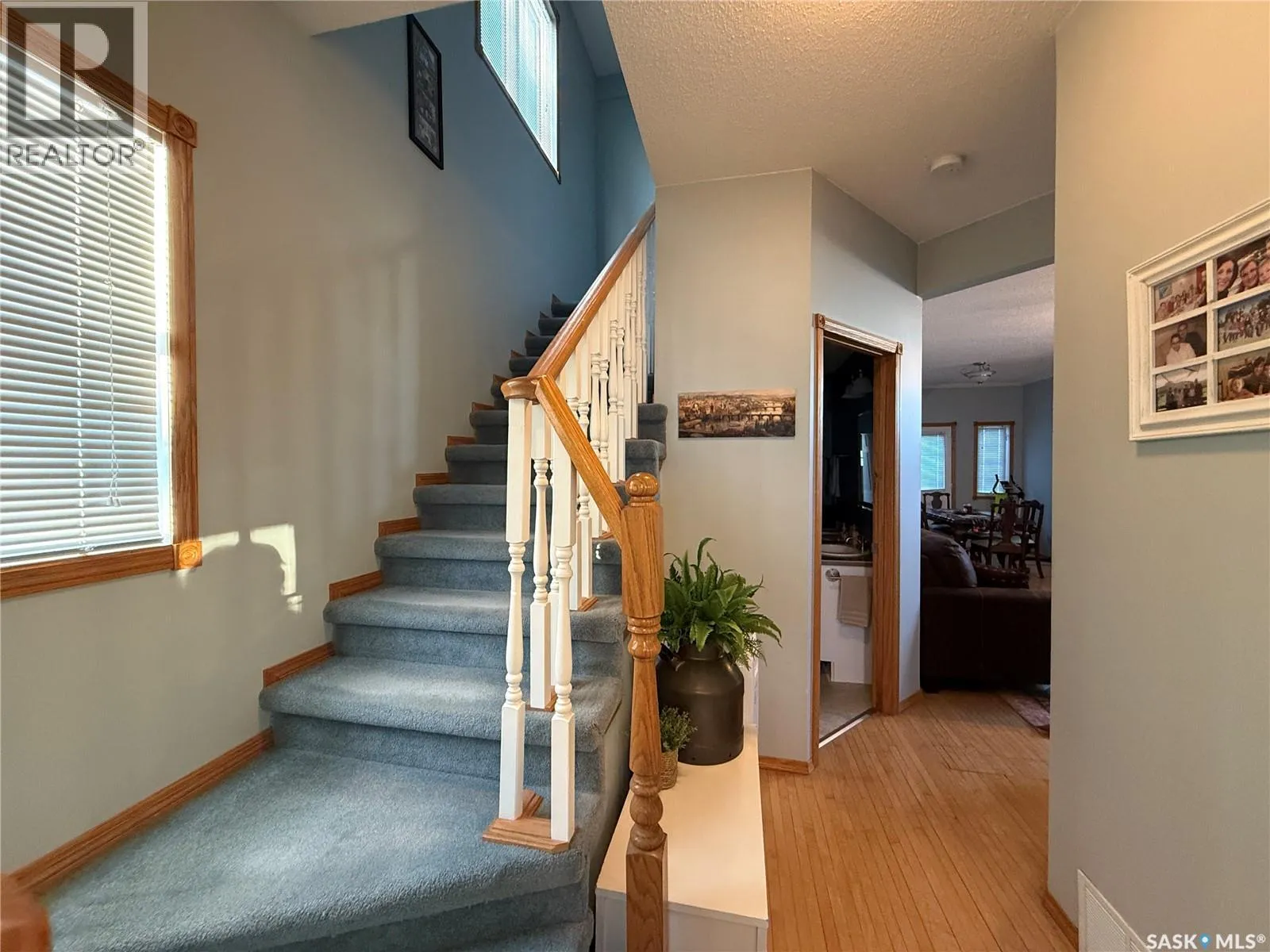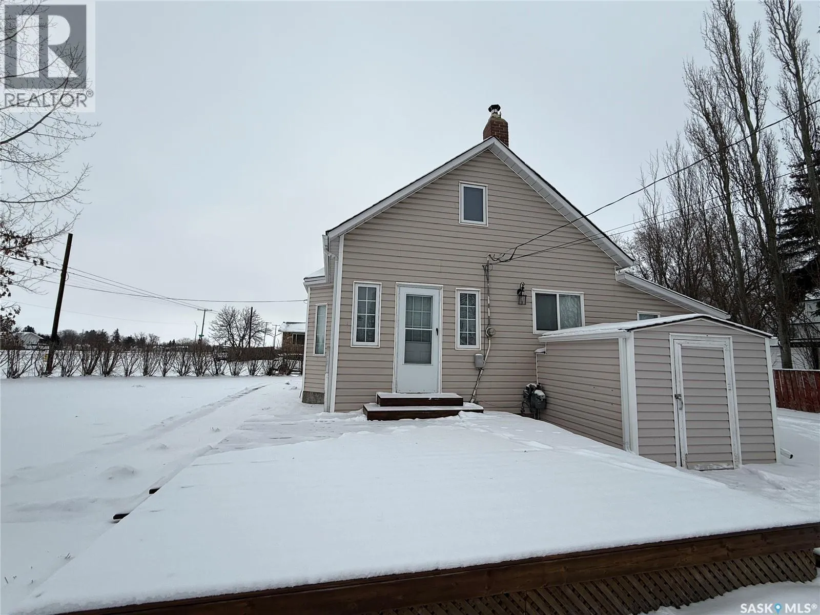 Exceptionally well-maintained 1¼-storey home set on a spacious, irregular lot, conveniently located near the elementary school and located a few blocks from downtown Humboldt. This inviting property offers a blend of character and modern updates, featuring original hardwood in select areas, newer flooring in others, and a bright living room that creates a warm, comfortable atmosphere. The well-appointed kitchen includes a dropped dining area, while main-floor conveniences such as the laundry and mudroom add everyday practicality. The main level also includes a comfortable bedroom and a 4-piece bathroom complete with a jetted tub.The main bathroom provides access to the unfinished basement, offering excellent storage potential and a unique secondary door connecting to the backyard shed. The open staircase leads to the upper level, a flexible space that can be adapted to your needsâwhether as additional bedrooms, a bonus room, or an expansive walk-in closet with an attached sleeping area. Outside, a 15' à 15' deck overlooks the beautifully maintained yard, featuring mature trees, shrubs, and generous green space. A started parking space off the avenue offers potential for future garage development, adding extra value to this well-cared-for home. Not many homes in this price range with this value, call today for your showing! (id:27476)
