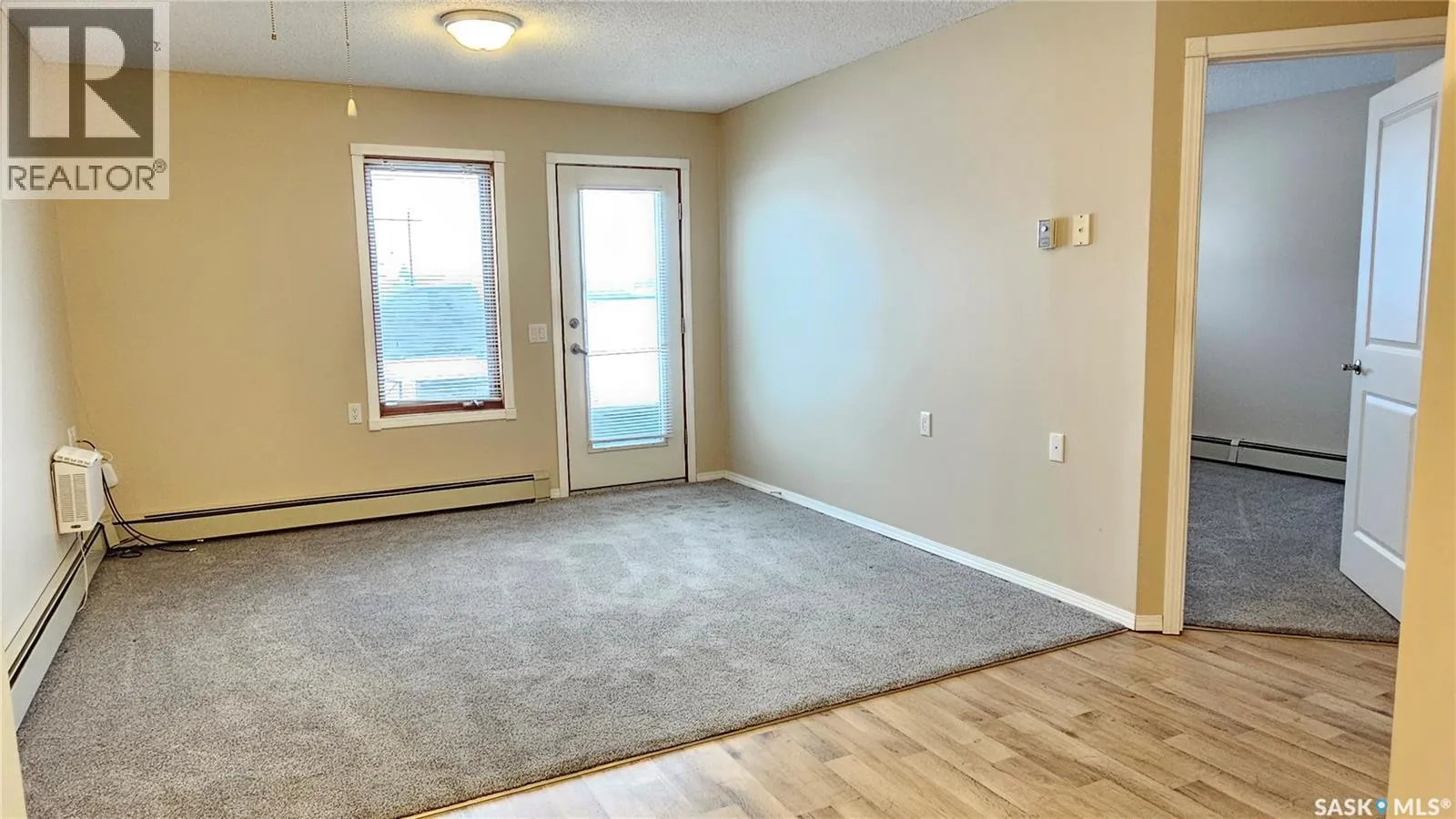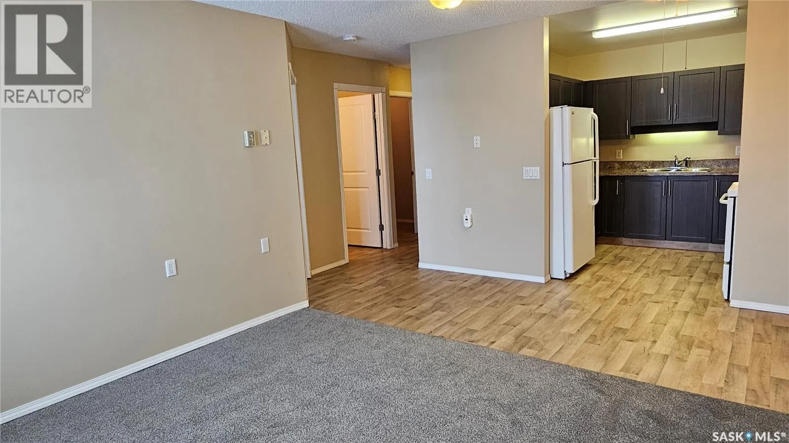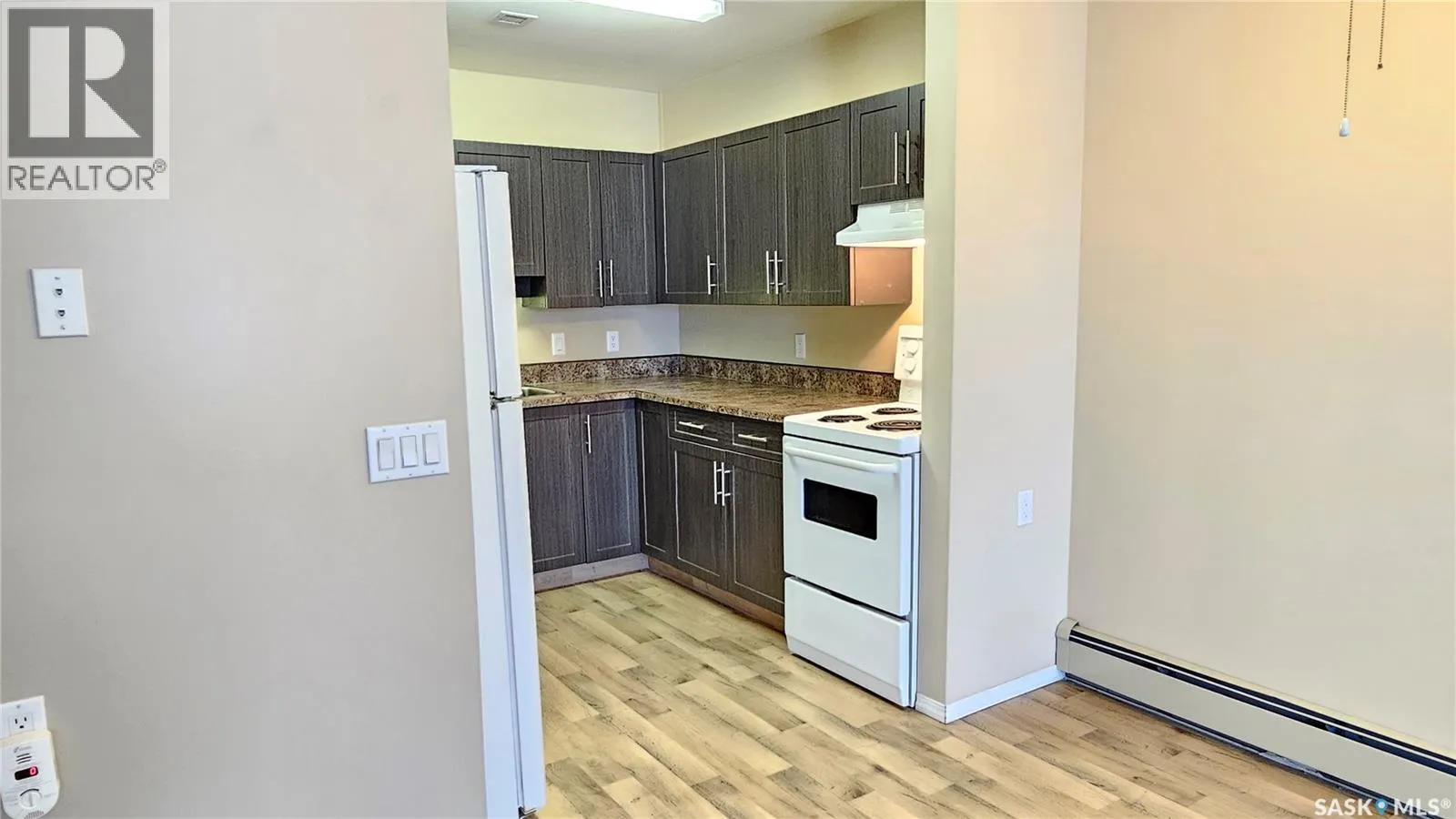 #103 Kinsmen Court, Humboldt. Affordable 55+ condo offering 595 sq. ft. of comfortable, low-maintenance living. This east-facing 1-bedroom, 1-bath unit overlooks the courtyard and is in great condition with new carpet and an updated kitchen. Functional layout includes a 4-piece bathroom and a convenient in-suite storage room. The building is wheelchair accessible and features two amenities rooms, complimentary shared laundry, and one electrified parking stall. Vacant and ready for quick possession. Ideal for downsizers or anyone seeking quiet, affordable living in a well-managed building. (id:27476)