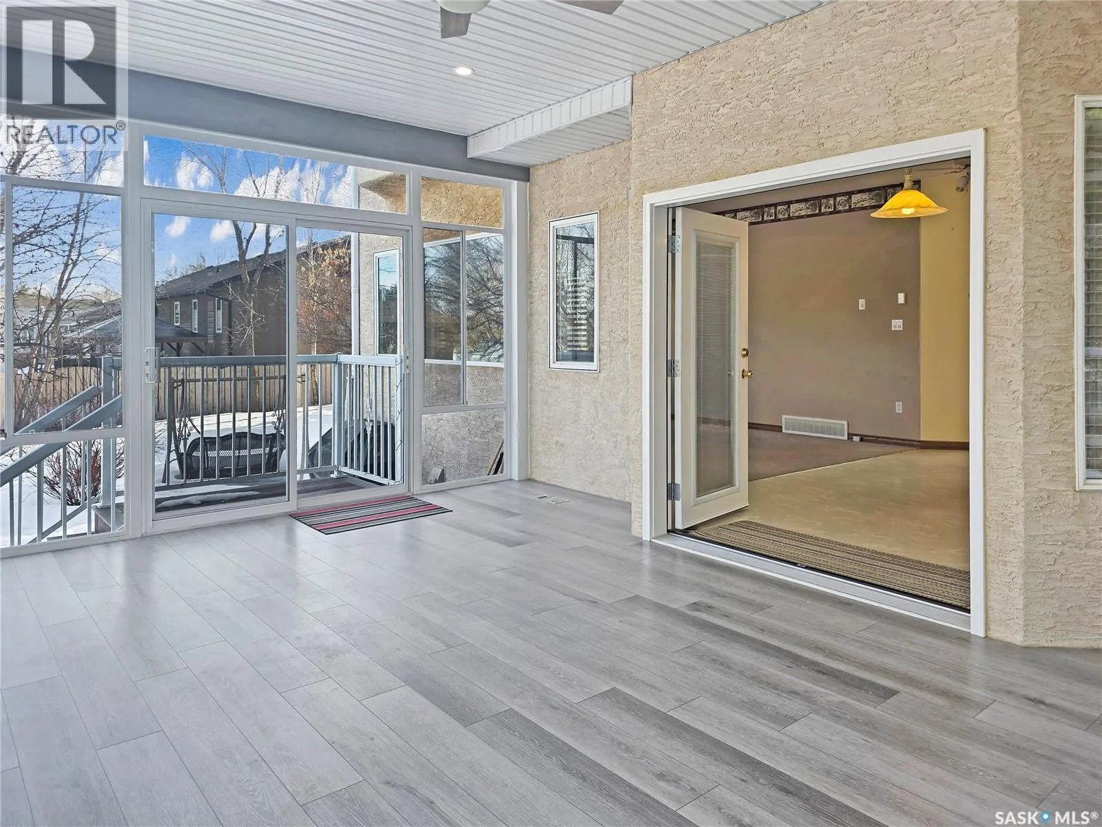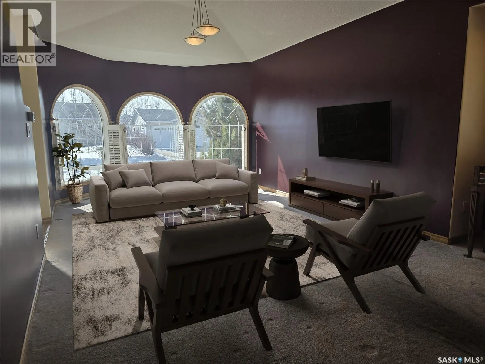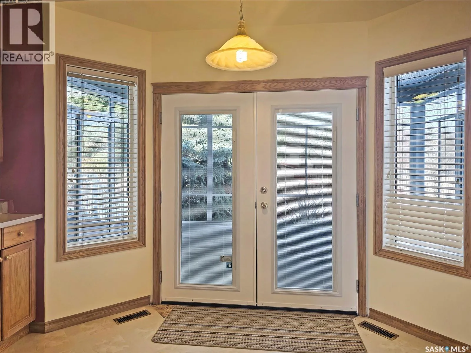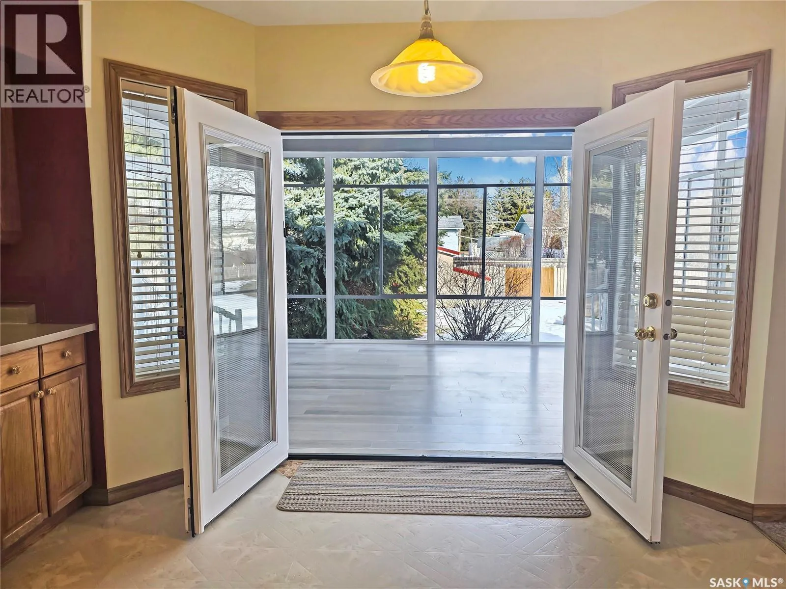 Stunning 2 storey home at 1009 Dewdney Street in Indian Head is waiting for you! Custom built home that perfectly blends style, function & comfort. This 1690 sq. ft. property immediately impresses with its exceptional curb appeal, with triple concrete driveway, two-car attached garage, & tasteful stucco and brick exterior.Step inside the spacious foyer and be greeted by a beautiful half-spiral staircaseâa true centrepiece that sets the tone for the homeâs warm, elegant design.The main floor offers a bright, open-concept living area warmed by a natural gas fireplace & expansive windows that flood the space with natural light. The kitchen features oak cabinetry pantry space, & includes all major appliancesâfridge, stove, built-in dishwasher, and microwave range hood. Thereâs also a cozy dining nook,as well as a large formal dining/living area measuring 14' x 26', ideal for entertaining.Youâll also find main floor laundry with built-in cabinetry, a two-piece bathroom, and direct access to the garage. One of the homeâs standout features is a custom built sunroomâa beautiful 13â10â x 18â space finished with vinyl plank flooring and large screened windows overlooking the fully fenced backyard. The yard offers mature trees, shrubs, flower beds, and a storage shed, with two decks on either side of the sunroom.Upstairs, youâll find three generous bedrooms, each accommodating larger furniture. Also includes a 4-piece bathroom & a stunning wood railing overlooking the main foyer and living room below. Primary suite is a true retreat, complete with walk-in closet & a luxurious 5-piece ensuite featuring a soaker tub, large window to enjoy the peace of the backyard views, separate shower, dual sinks.Basement is partially finished and framed, ready for your personal design. It includes rec room space,bedroom,utility room. Built in 1999,this property has been maintained and upgraded, offering both modern comfort and timeless appeal.Come experience this showcase of a home in person! (id:27476)