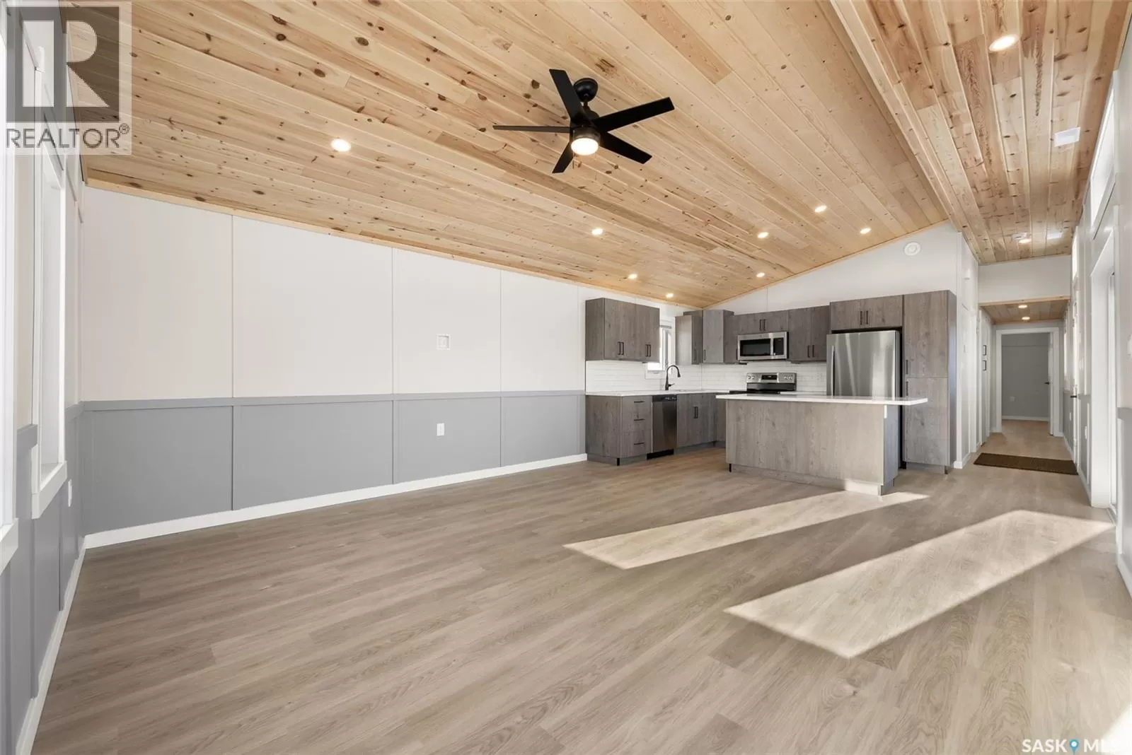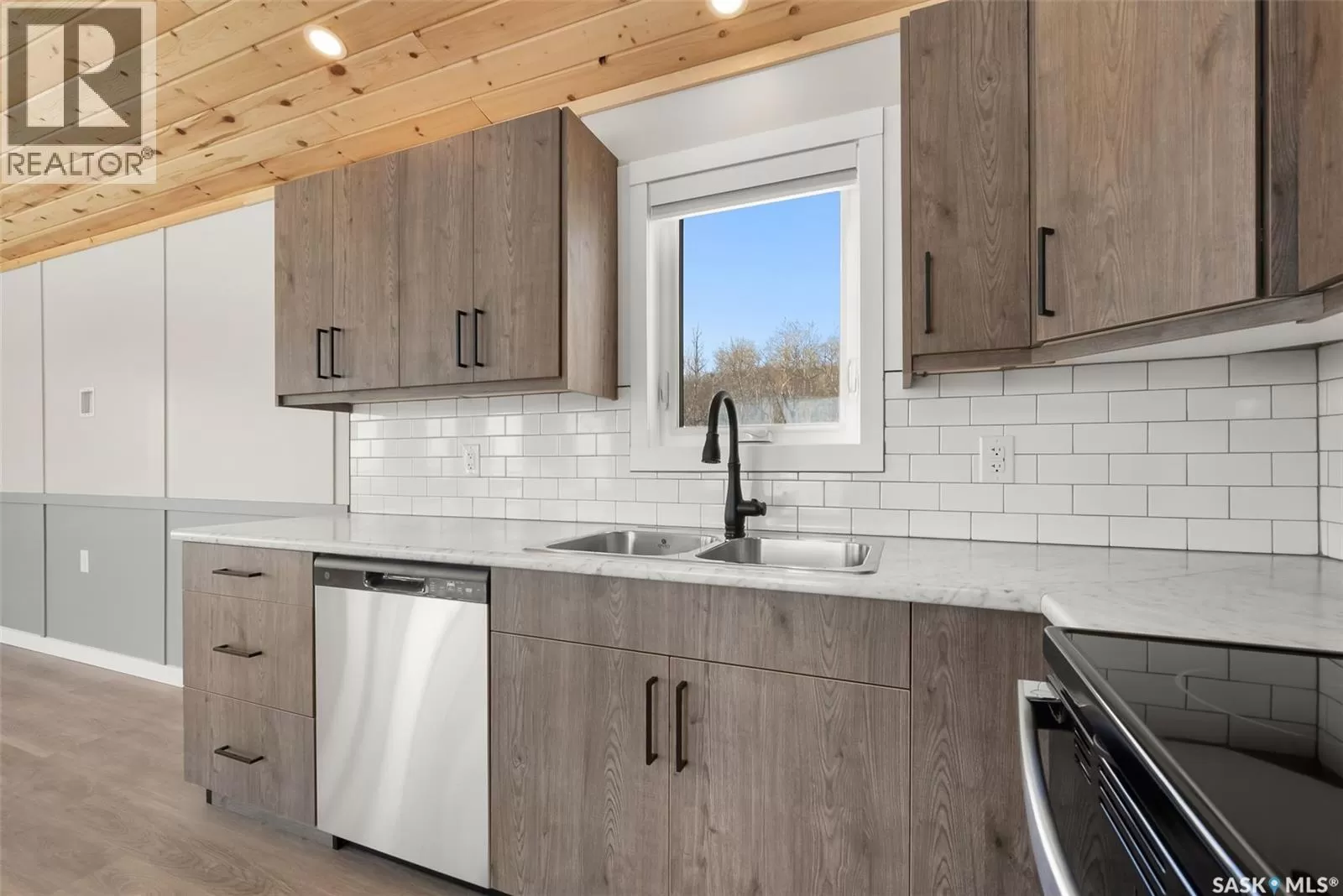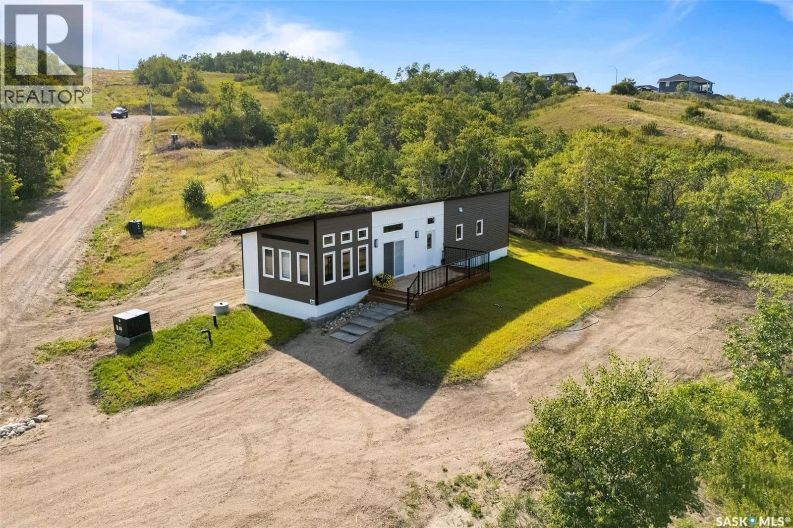 Your dream lake life awaits for ONLY $325,000!! (Garage build also available) BRAND NEW Year-Round Getaway at Katepwa Lake! Welcome to Pincherry Place in Berry Hills Estates, where breathtaking lake views and modern comfort come together in this brand-new 960 sq. ft. bungalow. Sitting on 10 secure screw piles, this home offers complete peace of mind with a new 2000gal septic tank and 220' well. The open-concept design features a spacious great room with tall ceilings and large windows, flooding the space with natural light and stunning views of Katepwa Lake. The stylish kitchen boasts soft-close cabinetry, brand-new stainless steel appliances, and an eat-up island, perfect for entertaining. A pine ceiling with plenty of pot lighting adds a cozy, cottage feel. This home includes two large bedrooms, with the primary suite featuring a private ensuite with tile walk-in shower and built-in wardrobe. Additional highlights include a 200-amp panel, skirting, beautiful siding, and a large deck, while a forced-air natural gas furnace, water heater, and A/C ensure year-round comfort. Plus, hi-speed internet lets you work from home with ease or unwind with your favourite Netflix series. The property backs onto a municipal reserve with a wooded ravine area, ideal for a fire pit area, kids' play structure, or private retreat. Located just five minutes from Katepwa Beach Provincial Park, boat launch, and local dining, and within 15 minutes of three stunning golf courses, this home is perfect for outdoor lovers. Down the street is a park, outdoor rink, and many other amenities. Less than an hour from Regina, Berry Hills Estates provides the perfect mix of relaxation, convenience, and community. With dedicated developers maintaining the subdivision, this is your chance to own a BRAND NEW stunning lake retreat. Don't waitâYOUR LAKE LIFE AWAITS! Contact your real estate professional today! **Developer is open to coordinating a garage build** (Some virtually staged photos) (id:27476)