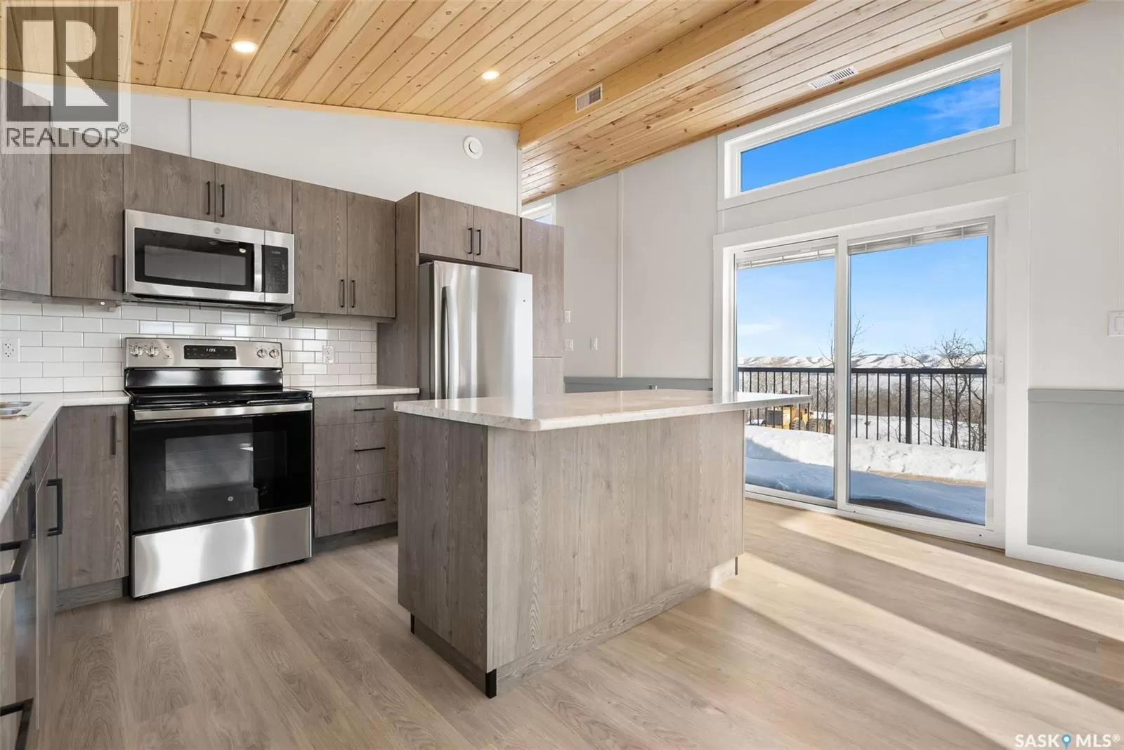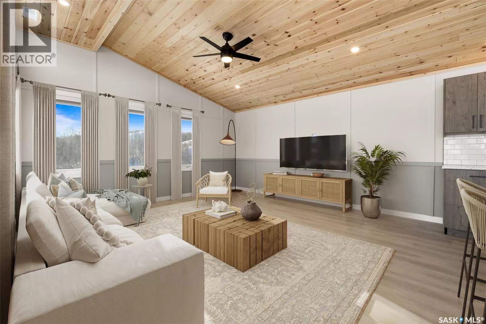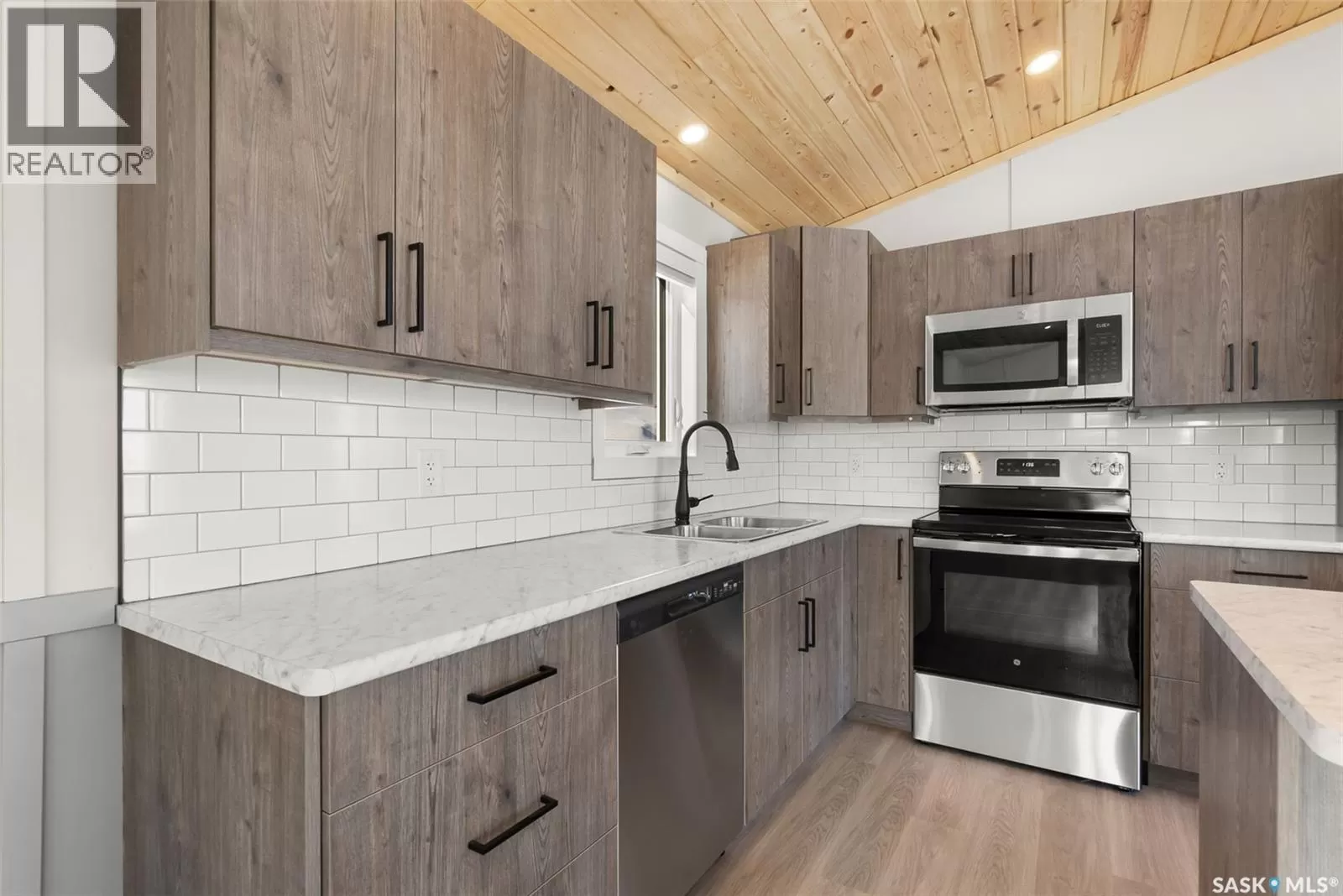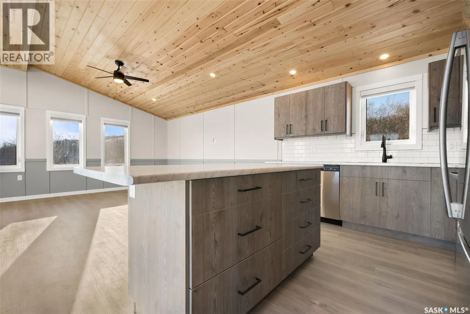 Your dream lake life awaits for ONLY $325,000!! (Garage build also available) BRAND NEW Year-Round Getaway at Katepwa Lake! Welcome to Pincherry Place in Berry Hills Estates, where breathtaking lake views and modern comfort come together in this brand-new 960 sq. ft. bungalow. Sitting on 10 secure screw piles, this home offers complete peace of mind with a new 2000gal septic tank and 220' well. The open-concept design features a spacious great room with tall ceilings and large windows, flooding the space with natural light and stunning views of Katepwa Lake. The stylish kitchen boasts soft-close cabinetry, brand-new stainless steel appliances, and an eat-up island, perfect for entertaining. A pine ceiling with plenty of pot lighting adds a cozy, cottage feel. This home includes two large bedrooms, with the primary suite featuring a private ensuite with tile walk-in shower and built-in wardrobe. Additional highlights include a 200-amp panel, skirting, beautiful siding, and a large deck, while a forced-air natural gas furnace, water heater, and A/C ensure year-round comfort. Plus, hi-speed internet lets you work from home with ease or unwind with your favourite Netflix series. The property backs onto a municipal reserve with a wooded ravine area, ideal for a fire pit area, kids' play structure, or private retreat. Located just five minutes from Katepwa Beach Provincial Park, boat launch, and local dining, and within 15 minutes of three stunning golf courses, this home is perfect for outdoor lovers. Down the street is a park, outdoor rink, and many other amenities. Less than an hour from Regina, Berry Hills Estates provides the perfect mix of relaxation, convenience, and community. With dedicated developers maintaining the subdivision, this is your chance to own a BRAND NEW stunning lake retreat. Don't waitâYOUR LAKE LIFE AWAITS! Contact your real estate professional today! **Developer is open to coordinating a garage build** (Some virtually staged photos) (id:27476)