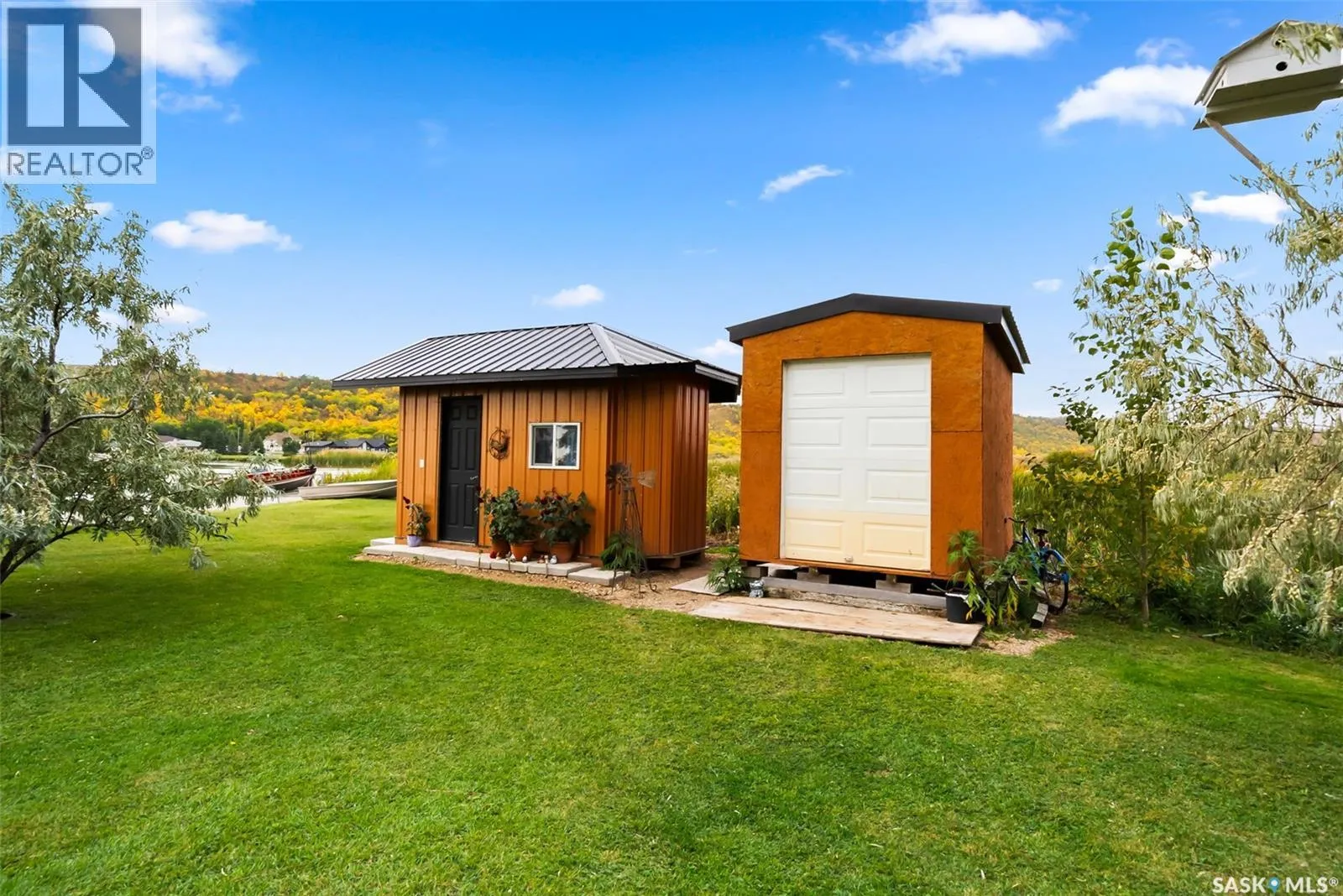 RARE--Katepwa Lake Beachfront Home â Over 200' of Pristine Sandy Frontage!! Discover a once-in-a-lifetime opportunity to own a truly rare piece of paradise on Katepwa Lake. Set on a beautifully manicured 0.38-acre lot this one-owner home offers exceptional privacy and serenity, bordered by crown land for a tranquil feel. Built in 2005, the home has been lovingly maintained and thoughtfully designed for year-round comfort and functionality. As you step inside, you're greeted by an open-concept living space highlighted by a stunning wall of windows that frame breathtaking, unobstructed lake views. The dining room extends seamlessly onto a spacious lakefront deck, expanding your seasonal living space and creating the perfect place to relax or entertain. The main floor features a well-appointed primary bedroom, main floor laundry, and a tidy, functional kitchen complete with a walk-in pantry and adjacent dining area. Storage is abundant, and every detail has been carefully considered for practical, everyday living. Upstairs, you'll find a second bedroom, a half bath, and a flexible loft space that easily serves as a third bedroom or cozy lounge/office space. Outside, enjoy the immaculately maintained grounds, a heated 24' x 24' garage, and two storage shedsâeverything you need to embrace the lakefront lifestyle with ease. This property is a rare gem on Katepwa Lake, offering unmatched beachfront, privacy, and natural beauty. A true legacy property that must be seen to be appreciated. Call your favorite local agent today. (id:27476)