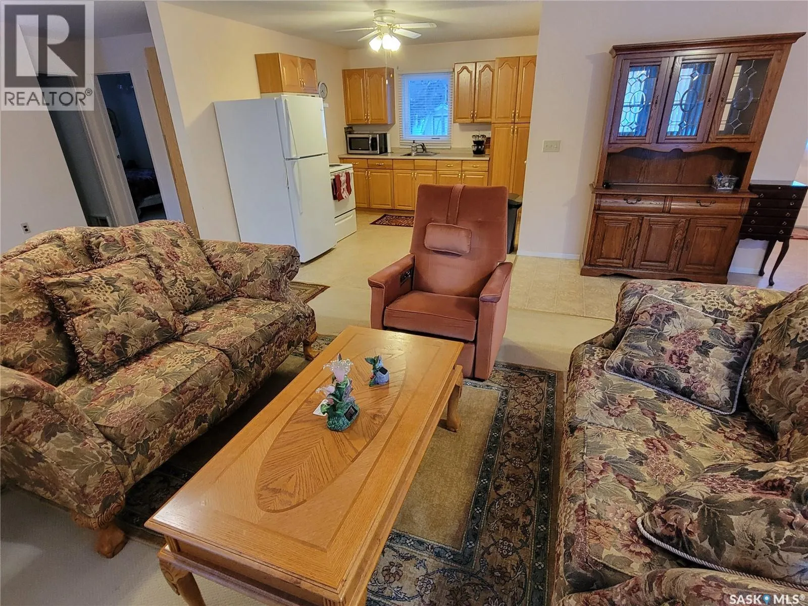 LOCATION LOCATION LOCATION - this GEM is in the highly sought after Katepwa Lake Prov Park. Where else would you want to be?! This lovingly maintained home was moved here in 1997 onto a new concrete crawlspace, with an addition in 2008 for a total of 960 sq ft. The home features a bright and airy open concept, with a Texas sized living/ dining room and kitchen combo. The kitchen boasts lovely oak cabinets, and just outside the 4pc bath there are extra storage cabinets to hold all the toiletries and linens. The 3 bedrooms hold the family or any guests you just KNOW will want to come visit. The main floor laundry/ utility room includes a water softener and iron filter. Seller states the well is 74' and the septic tank 1000g. In warmer months step outside onto the deck or backyard patio, to sun, lounge, dine alfresco, or simply watch the cottagers go by. Maybe plant a garden next spring in the garden plot? The home functions as well as it looks with new shingles Oct 2025, newer windows, gutter guards on eaves, and tasteful no-maintenance vinyl siding. Even the car or boat will love this property, sheltering in the single detached garage with overhead door opener. You won't run out of parking on the extra long front driveway, or the alley access backyard parking for the boat, quad, golf cart, etc. And all this is just steps or a fun golf cart ride away to the public beach, boat launch, hotel, store, restaurant, burger/ ice cream take out, 2 golf courses, and the Trans Canada Walking Trail. Don't miss out on this charmer, call today for your personal viewing. Furniture and contents may be negotiated in a sale. Shed on property will not be included. (id:27476)