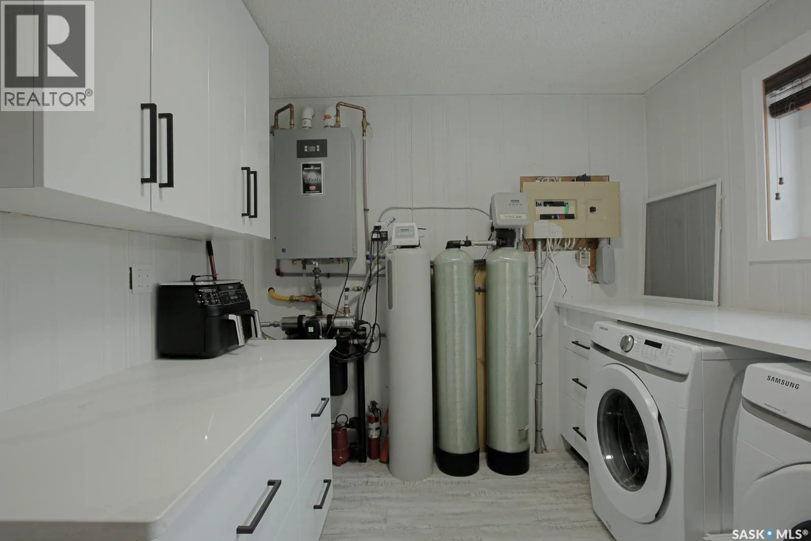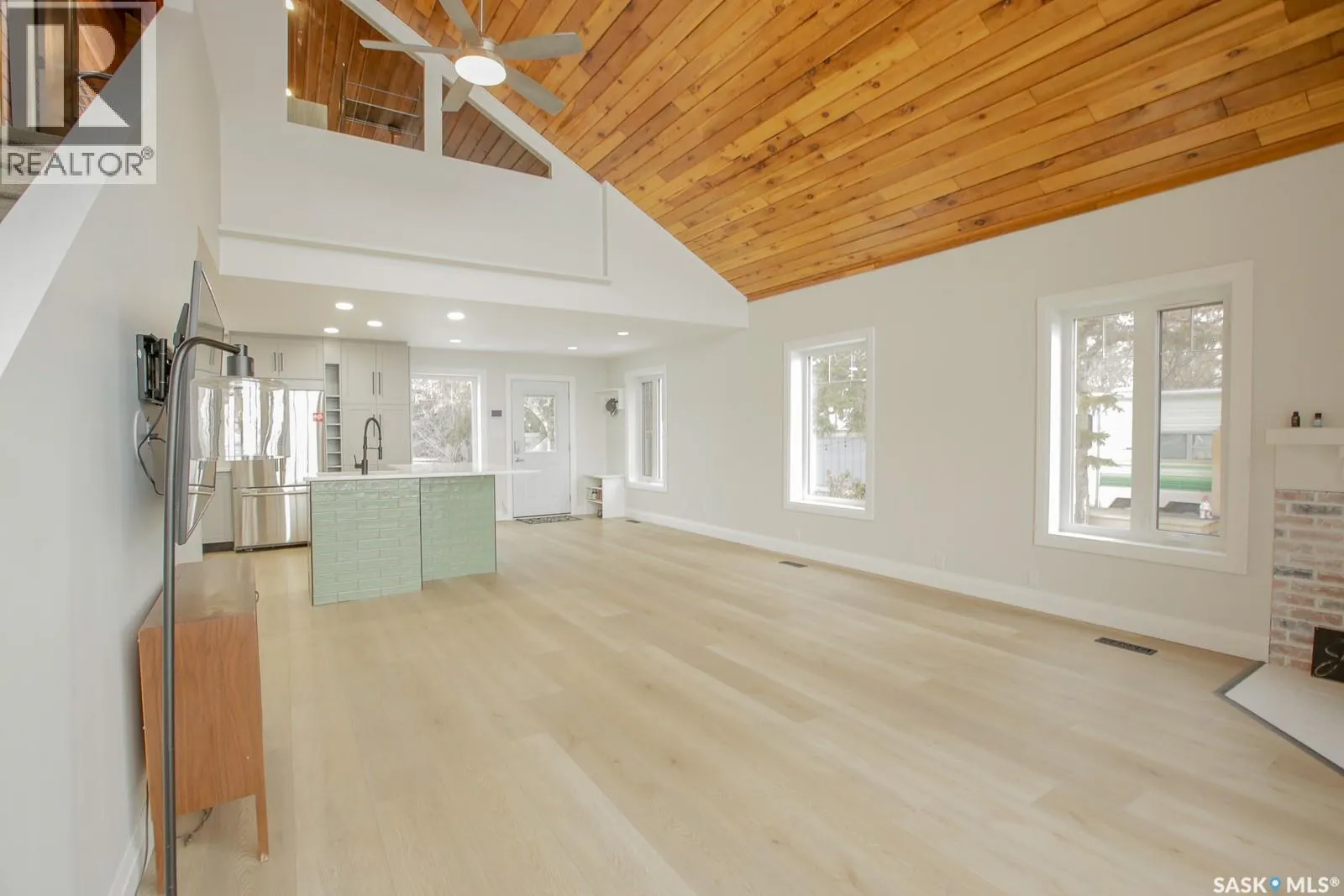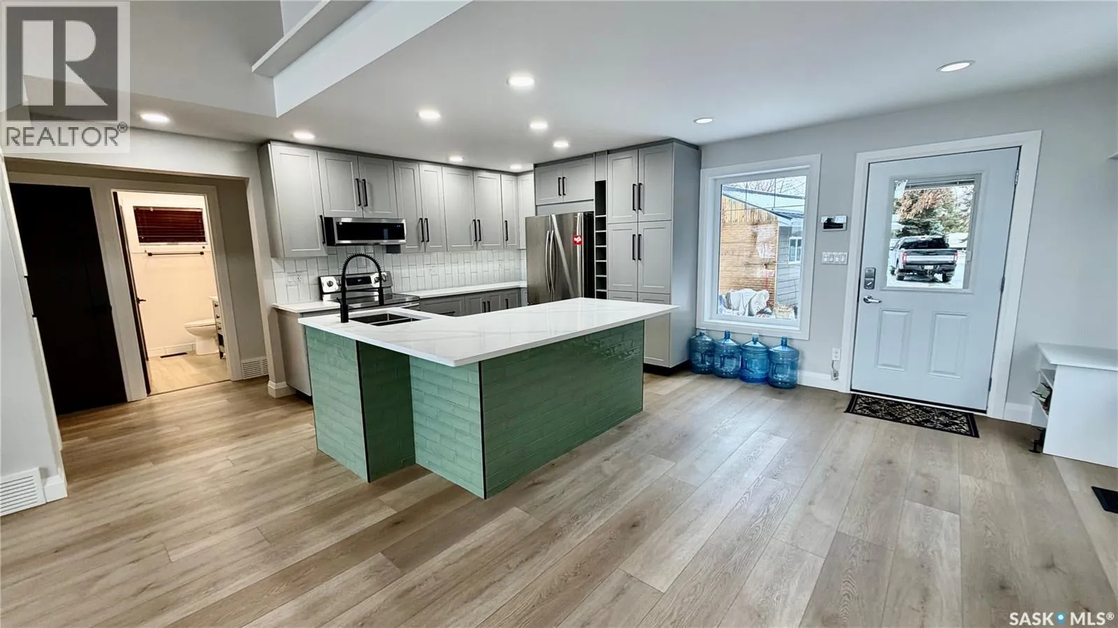 Rare opportunity for a fully renovated property located on Katepwa Lake. This move in ready home sits on two lots with approximately 70' of lakefront. Main level includes: Updated kitchen with quartz counter tops, new cabinets, LED lighting and stainless appliances. Primary bedroom with double closets, patio doors to lake facing deck. Four piece bath with tiled tub surround, updated; vanity, lights and flooring. Laundry room with additional storage. Second level includes three bedrooms. Two bedrooms with 8' ceilings and the third keeps the original cabin charm with an angled roof line. Second level bath has been updated with new flooring, vanity and tiled tub surround. Exterior of this property has been updated with metal roof, PVC windows and new matching siding on the boat house and garage. 14'x24' boat house with roof top deck. (id:27476)