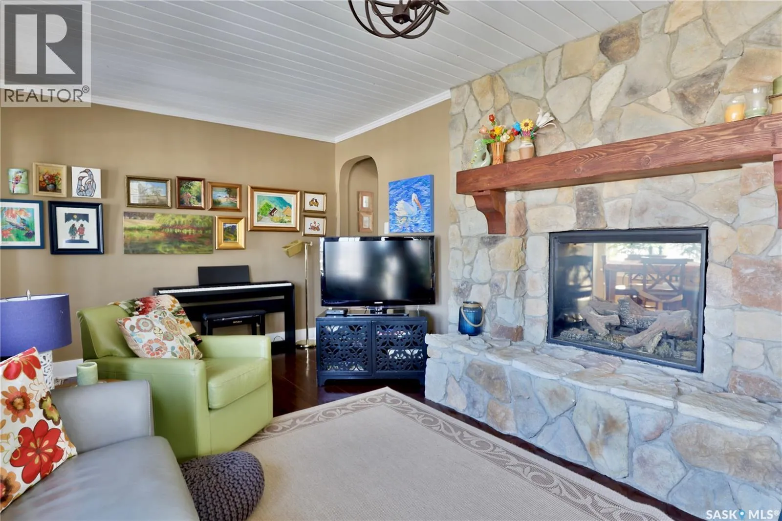 Welcome to lake life at Katepwa, where comfort and lifestyle come together in one unique property. Set to capture unobstructed lake and valley views, this home features two spacious decks that extend your living space for relaxing and entertaining. Enjoy access to the private green space and beach out front, with the option to participate in the community dock and boat slip, an exclusive feature for Michelle Place residents. Inside, the home blends warmth and modern updates throughout. A fieldstone natural gas fireplace anchors the living room, creating a cozy and inviting space. Newer windows flood the interior with natural light, while newer appliances add everyday convenience. The bathroom features a tiled shower surround and in-floor heat for a clean, modern finish. Outside, you'll find a fenced in backyard and room for RV parking. With a newly shingled roof, upgraded on-demand water heater and pavement right to your property, this home delivers both accessibility and peace of mind. Just a short walk away, Breese Park offers a recently completed spray pad, sport court, playground, and community gardens, perfect for those who value an active lifestyle. Whether you're searching for a year-round home or a lake escape, this is a rare opportunity to own at Katepwa. (id:27476)