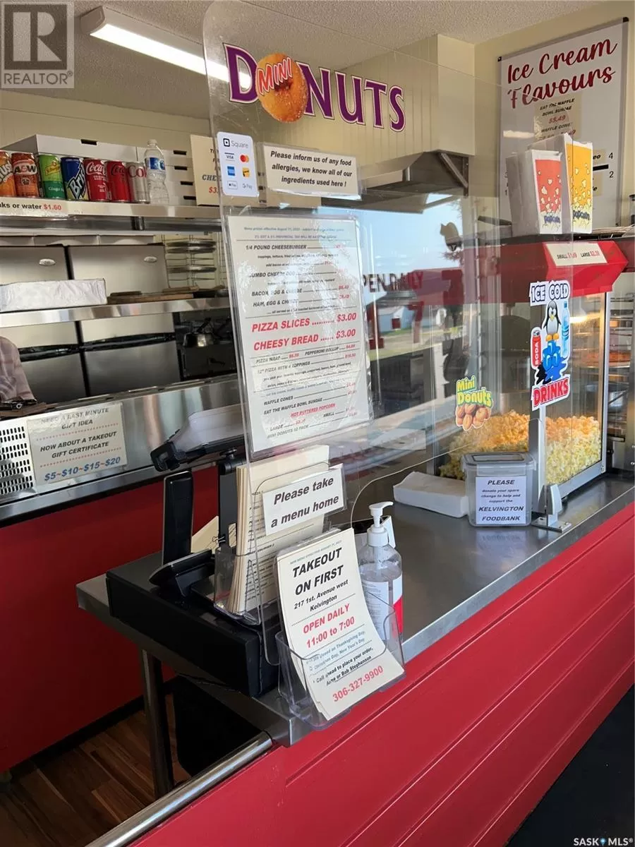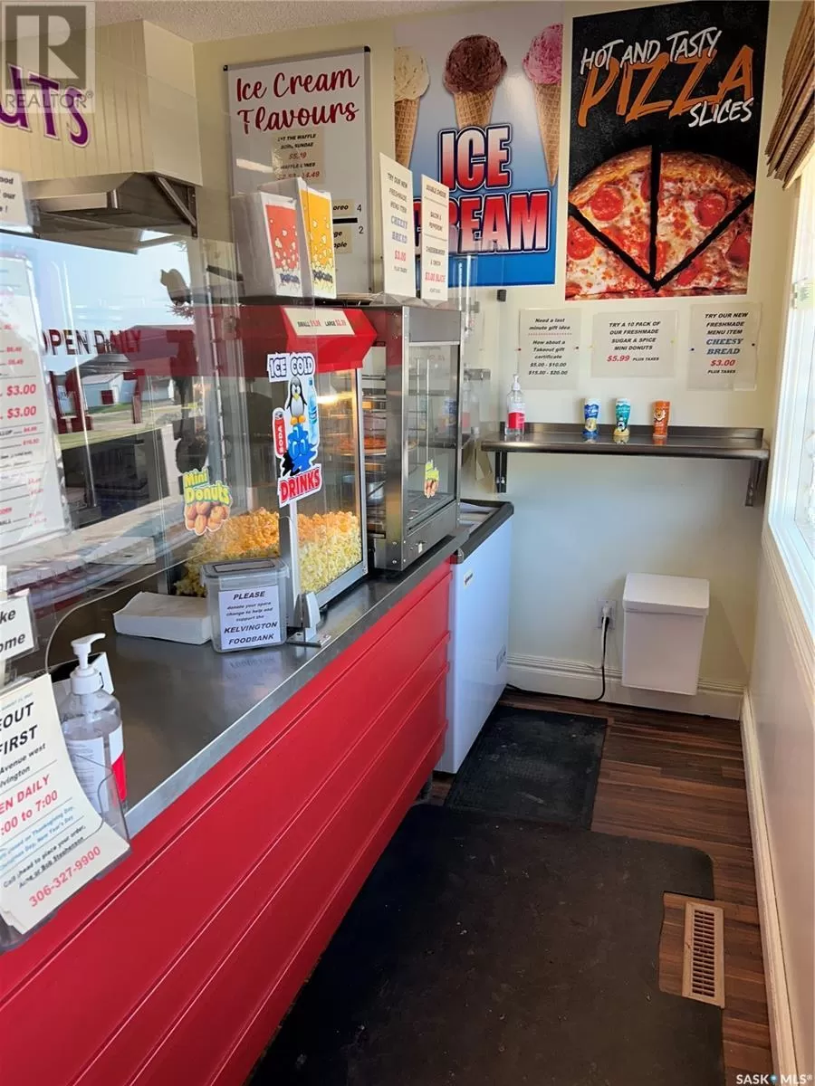 Welcome to Takeout On First in the center of Kelvington, just off highway 38, across from the highschool and next to the grocery store , location couldn't be better! This little takeout is being sold as a true Turnkey business. Everything you see in the photos will be left behind. Currently they sell Pizza, burgers, Cheesedogs, mini donuts and in-store made Ice cream with hand made waffle cones as and more. Recently added SOFT ICE CREAM in THREE Flavors and donuts. This business has been seeing an increase in sales month to month. Sellers are forced to sell due to health reasons. Kelvington is located 30 minutes south of Greenwater Provincial Park, East of Saskatoon 250kms and west of Yorkton 150 kms. This area is know for its snowmobile trails, hunting, fishing and a very active community with a 9 hole Grass green golf course, swimming pool, bowling alley, Hospital ,and Hockey arena to name a few highlights. A complete information package available upon request. (id:27476)