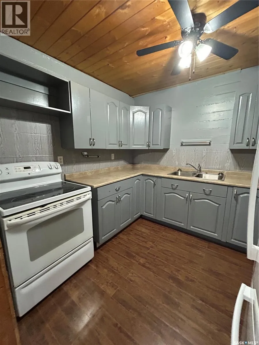 The original age of this 1080 sq ft home is 1920, but there is not much left that is original. There are three bedrooms, a large bathroom and mainfloor laundry. It has been added onto in the past with a 12x20 addition being the last one in 2002. Some of the upgrades over he years include HE furnace, triple pane windows, vinyl siding, full basement dug out and cemented, laminate flooring and kitchen cabinets replaced. The cottage vibe in this home is accentuated with the wood plank walls and ceilings. The yard is 100 ft of frontage by 140 ft deep, lots of past to spread out with a garden area and three sheds for plenty of storage. Take a look for yourself. (id:27476)
