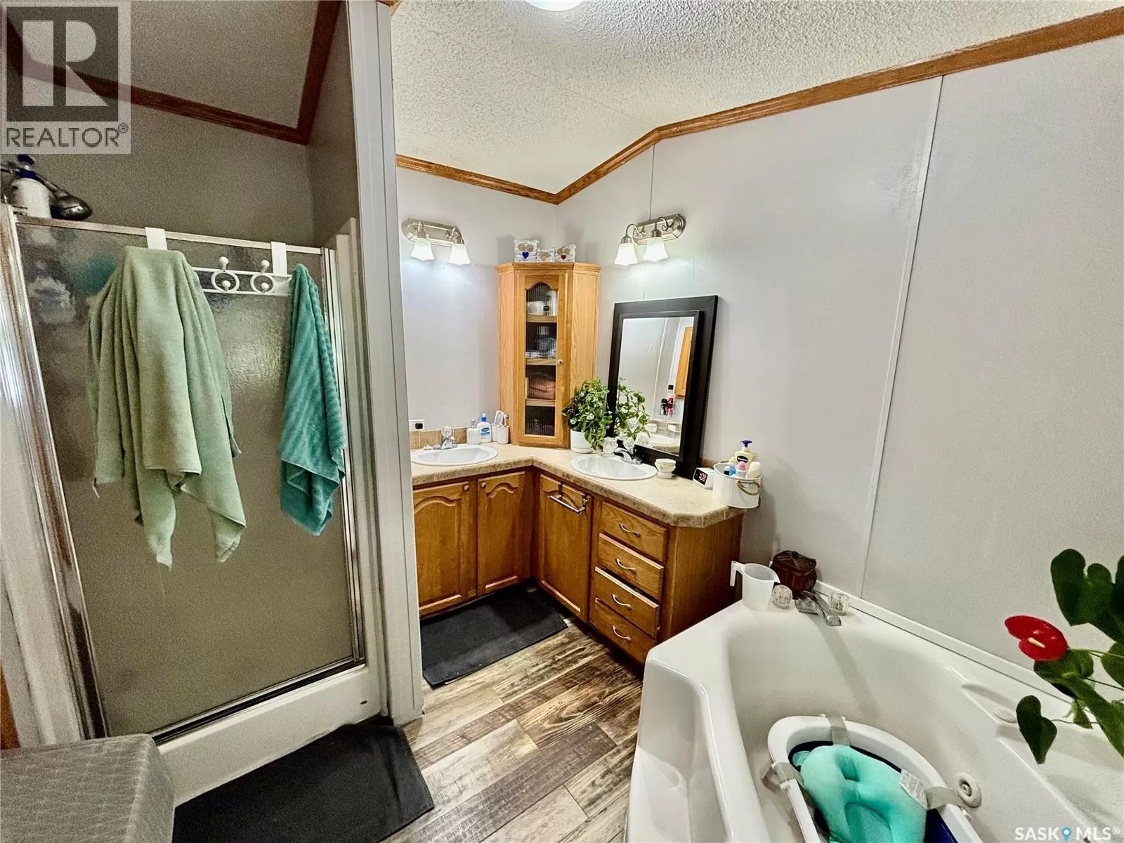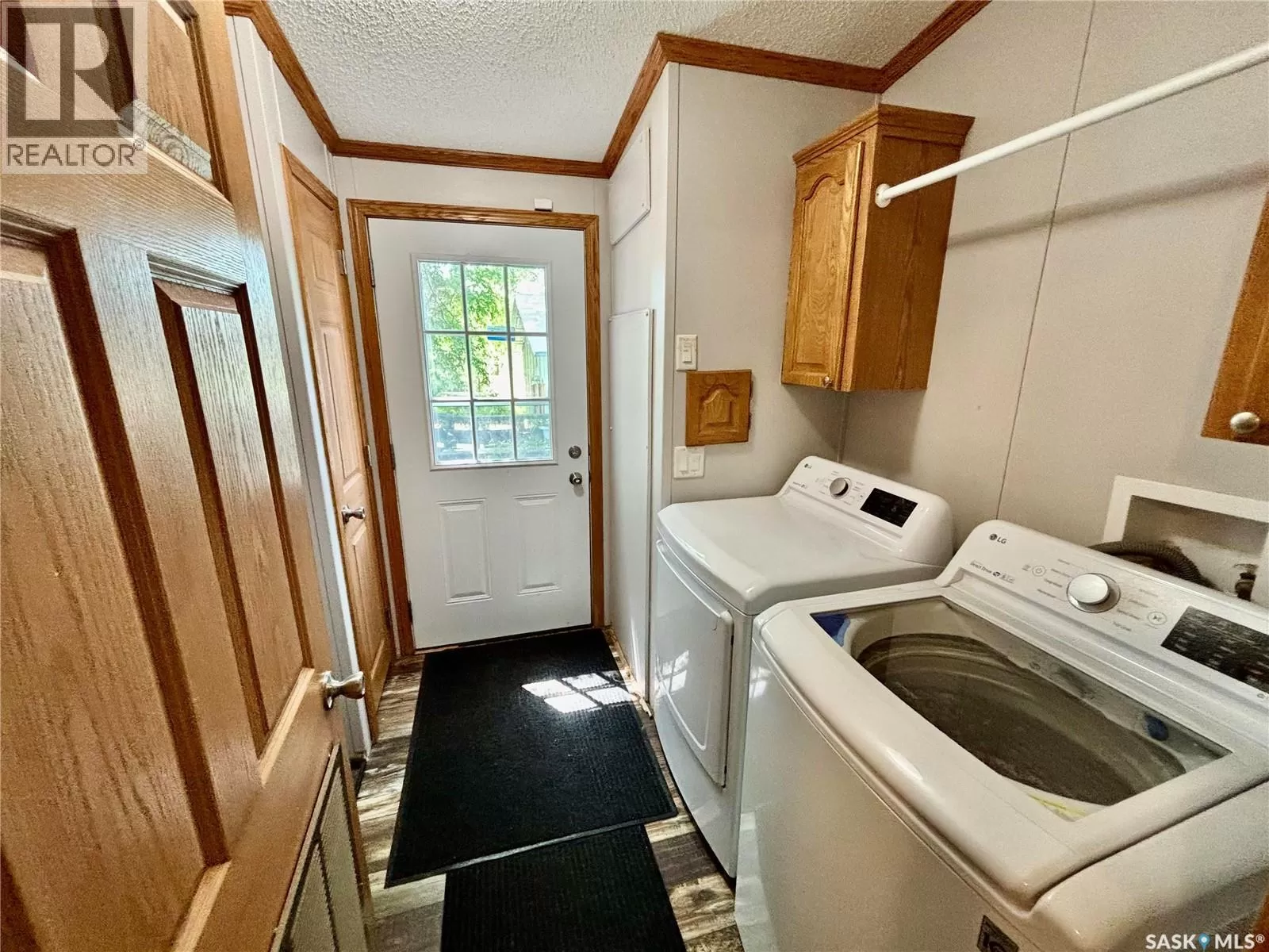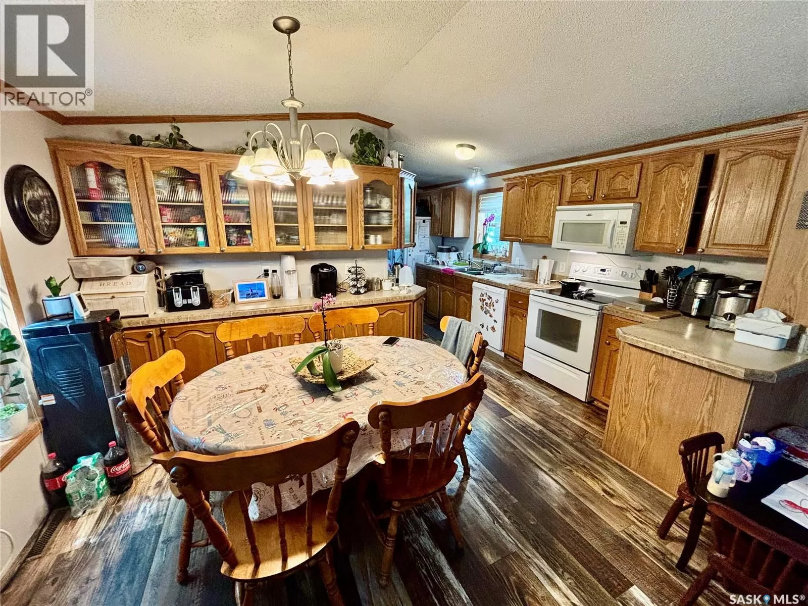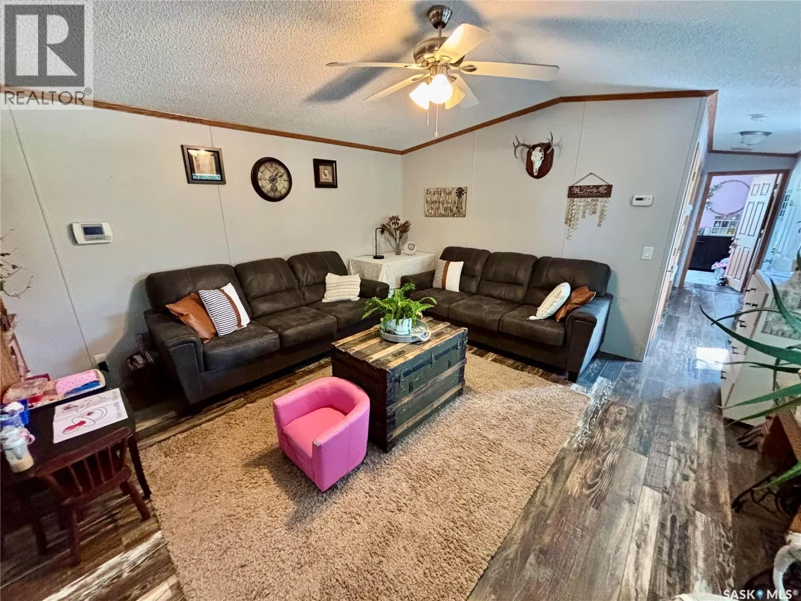 Check out this solid home in the quiet town of Kennedy. As you head inside, you are greeted by a large, open-concept living, kitchen, and dining space. Down the hall, you'll find two spacious bedrooms serviced by the 4 piece bath. At the other end of the home, past the kitchen, you'll find the laundry/mudroom and beyond that the primary bedroom, accompanied by a large 5-piece ensuite! This home sits on an owned double lot, so there are no pad rental fees. The double lot and large deck provide tons of space to spend with friends and family. Not to mention the playground right across the street! A single detached garage rounds out the exterior of this property, allowing for covered parking and extra storage space. If you're looking for a solid home in a quiet but welcoming community, then this just might be the one for you! Reach out to book your private showing today! (id:27476)