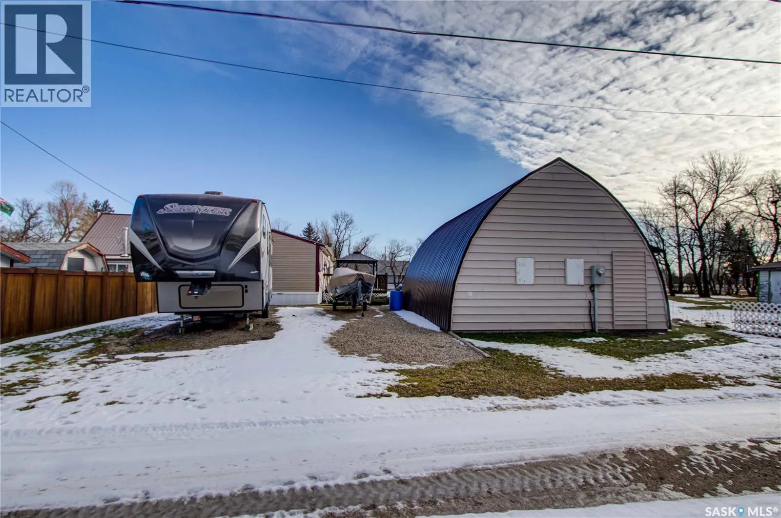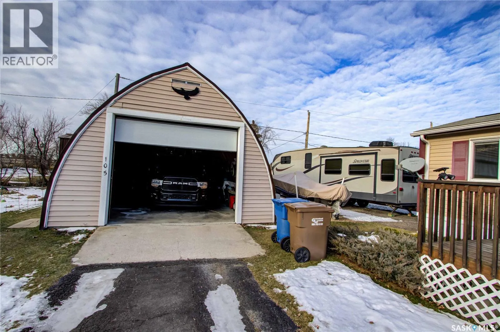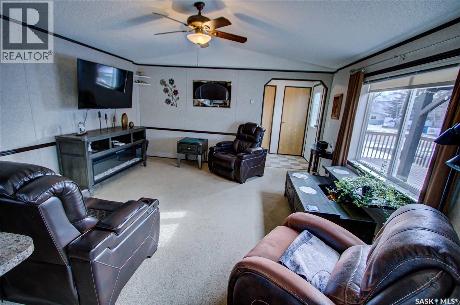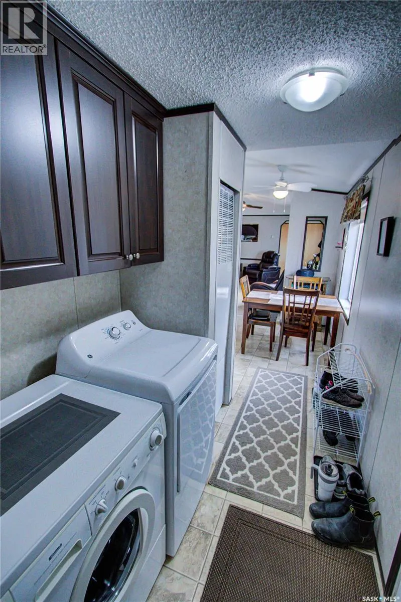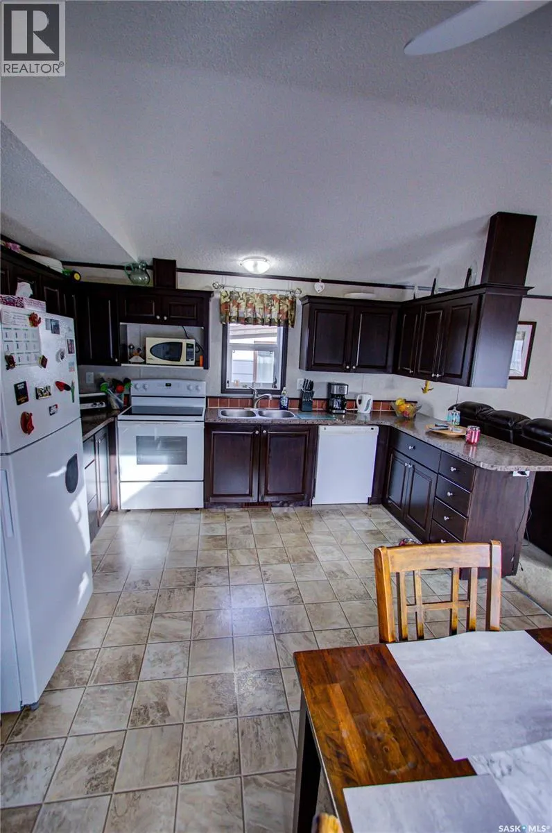 Welcome to Kinistino! This well-kept 970 sq ft modular home (built in 2010) offers affordable, comfortable living in a quiet and friendly community. With 2 bedrooms and 2 bathrooms, this home is an ideal fit for first-time buyers, retirees, or anyone seeking low-maintenance living on a peaceful dead-end street. Step inside to find a bright, clean, and meticulously maintained interior. Fridge and stove new in 2024, dishwasher and dryer in 2020. The functional layout provides great flow, ample natural light, and comfortable living spaces. Outside, enjoy summer evenings on the large west-facing 500 sq ft deck, complete with a gazeboâperfect for relaxing and entertaining. A 588 sq ft Quonset-style detached garage provides sheltered parking or a spacious workshop area. The paved driveway offers plenty of additional parking, while back alley access allows room to park an RV, boat, or other toys with ease. Located in the quiet community of Kinistino, known for its agricultural roots and home to several farm equipment dealerships, this town offers excellent local amenities including a Kâ12 school, gas station, grocery store, nursing home, health clinic, hockey rink, and more. Conveniently situated on Highway 3 between Melfort and Prince Albert, commuting is simple. If you're looking for comfort, convenience, and small-town charm, this property is ready to welcome you home. (id:27476)