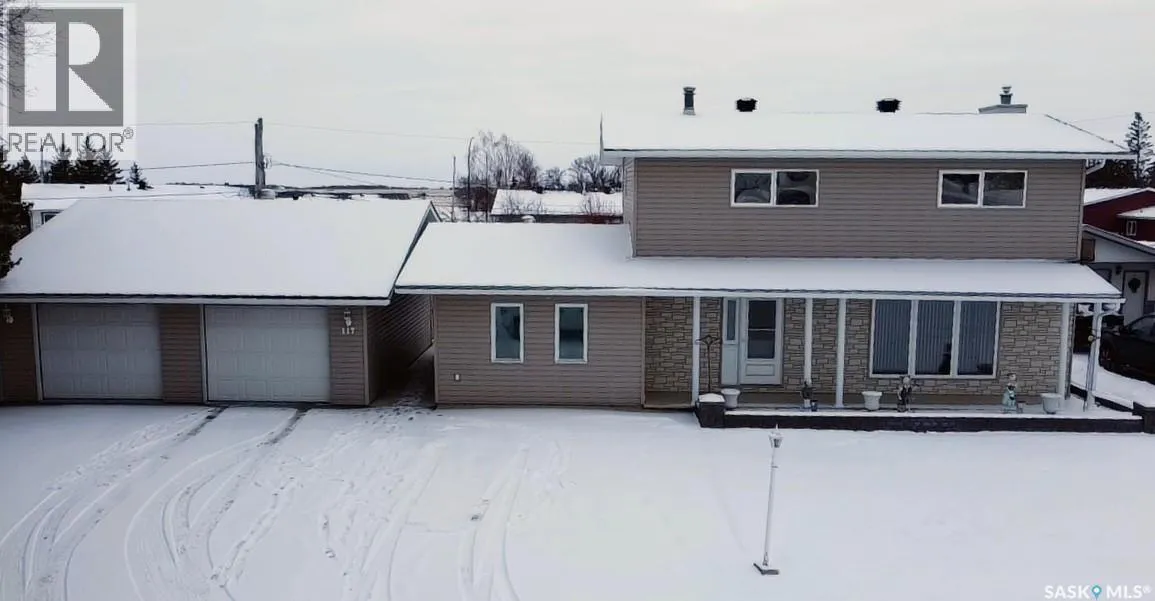 Welcome to this 2-storey home, built in 1979 and exceptionally well maintained, located at 117 Saskatchewan Crescent in the friendly town of Kinistino. Designed for comfort, space, and effortless everyday living, this property offers four generous bedrooms and three beautifully updated bathroomsâperfect for families or those who love to host. The main floor features a well-appointed kitchen with ample counter space, seamlessly connecting to the homeâs inviting living areas, while the fully finished basement provides even more flexible space for relaxing, entertaining, or accommodating guests. The basement also has a natural gas fireplace. Set on an oversized, irregular lot, the backyard truly stands outâpartially fenced and ideal for outdoor enjoyment. Unwind in the hot tub, gather around the firepit, or simply enjoy the expansive yard designed for memorable moments. A 2-car detached garage offers secure parking and additional storage that is fully insulated. This feature-rich property brings together comfort, space, and small-town charm, offering a warm and welcoming place to call home. With its thoughtful layout, outdoor amenities, and well-kept condition, itâs an ideal opportunity for anyone looking to settle into a spacious and inviting home in a wonderful community. (id:27476)