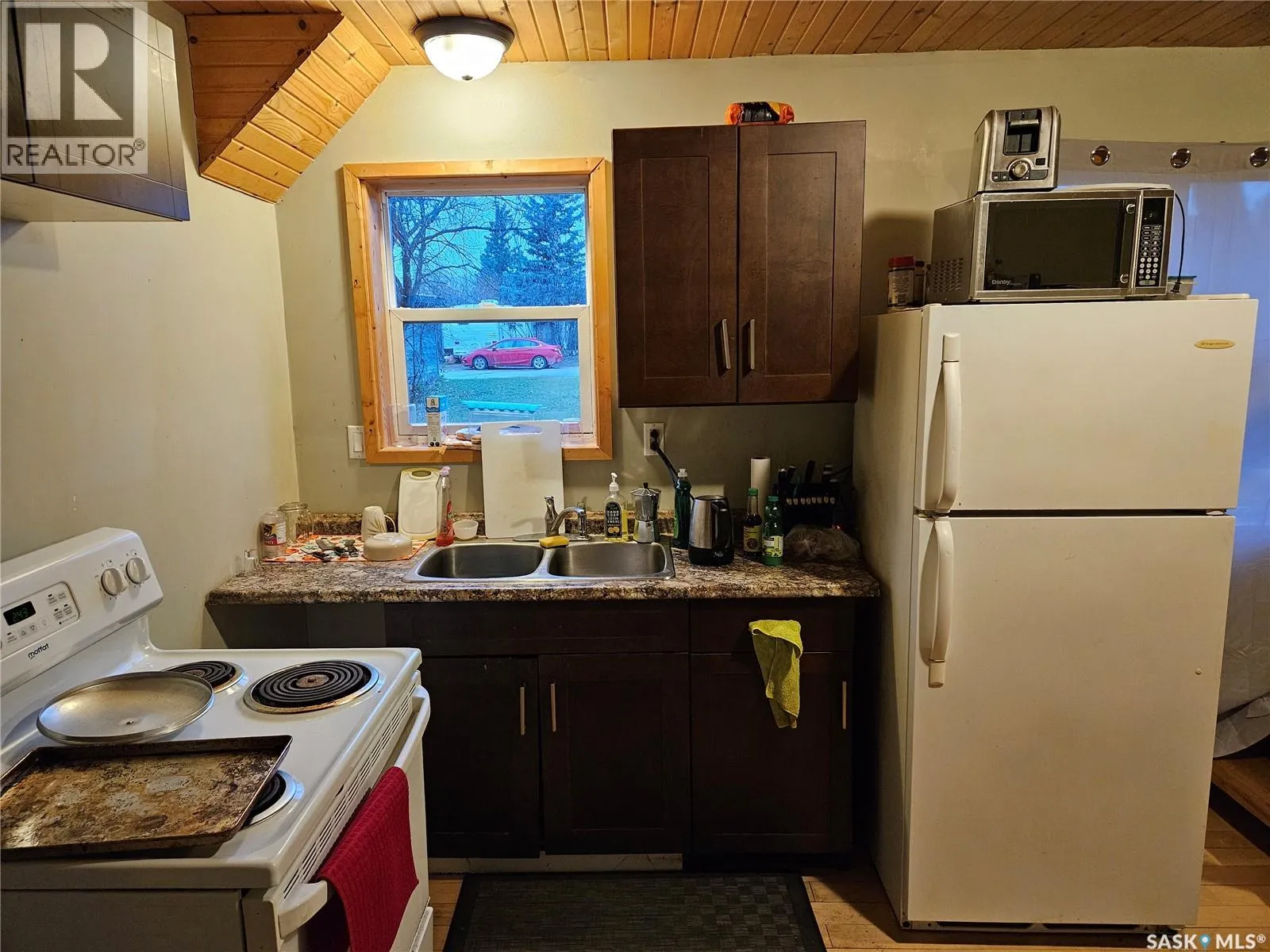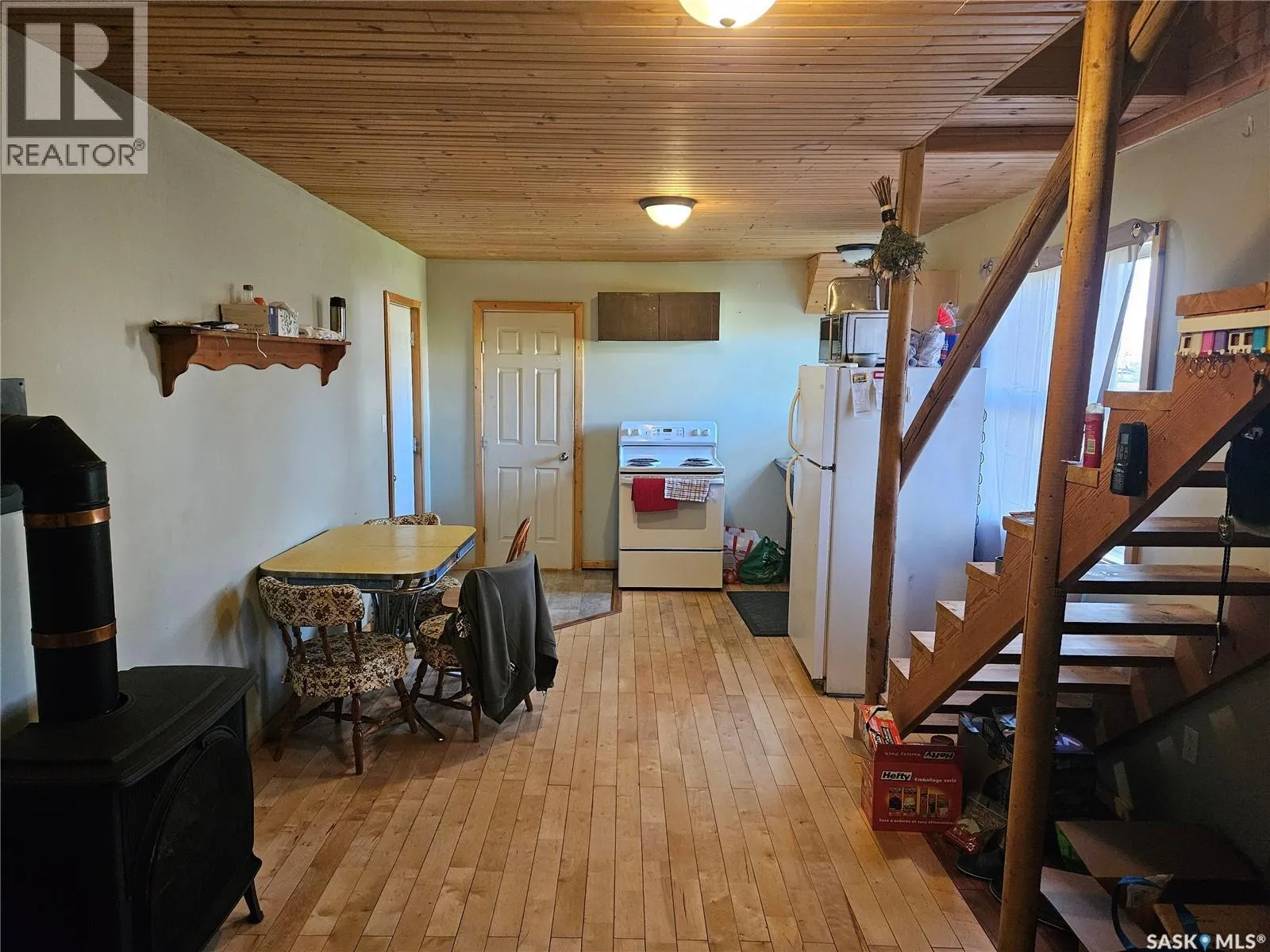 180 Main Street - Cozy 1.5-Story Home in the Quiet Town of Kisbey - Discover affordable living in this charming 1.5-story home nestled in the peaceful community of Kisbey. Offering excellent value, this property is not only ideal for a homeowner but also a perfect place to house employees or provide comfortable staff accommodations. The open-concept main floor seamlessly connects the kitchen, dining, and living areasâperfect for everyday living. The spacious primary bedroom features a 3-piece ensuite and a walk-out balcony, offering a private retreat. Additional highlights include a second bathroom, a convenient laundry room, and a utility room for extra storage. Russian hardwood floors and warm pine ceilings add rustic charm throughout, while a natural gas fireplace provides a cozy ambiance. Outside, youâll find plenty of parking space, including RV parking with a plumbed-in sewer system. The property is serviced by a sand point well, known for producing some of the best water in Southeast Saskatchewan. The tree-lined yard, accented with tall pines, offers both privacy and character, along with multiple storage sheds and ample space to customize the outdoor area to your liking. Enjoy small-town living with comfort, warmth, and flexibilityâthis home is ready to welcome you or your team. (id:27476)