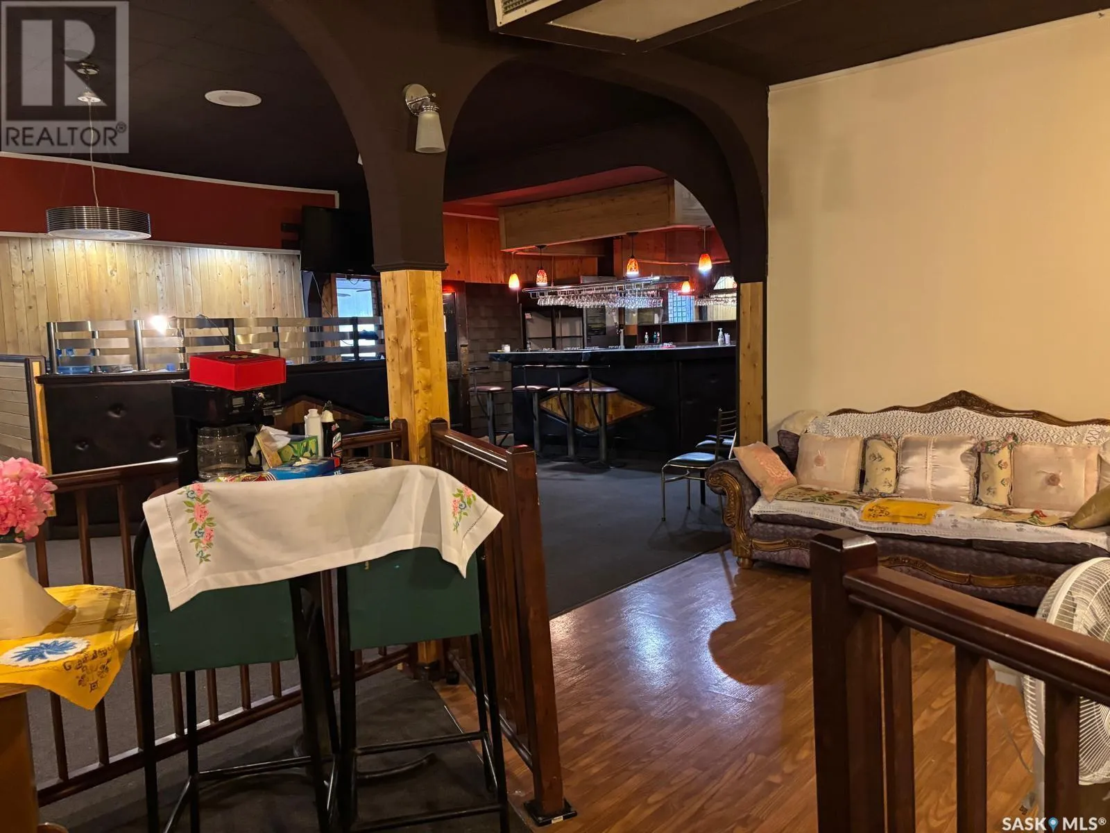 Kyle Restaurant & Bar available to purchase. Situated on three lots totalling nearly 1/4 of an acre, the large, 5200 sq. ft. building comes equipped and furnished for the bar, restaurant and living quarters. Living quarters includes 3 bedrooms, one bath. The restaurant seats 40 persons, bar capacity is 50 persons. The restaurant and bar have a pizza oven, large bakery machine and all types of large and small kitchen appliances including 2 deep fryers and commercial dishwasher. The sofas, tables and chairs are all in excellent condition. There is a huge patio at the rear. The town of Kyle is located about 50 miles South of Rosetown along busy Hwy #4. Tons of potential. Have a look! (id:27476)