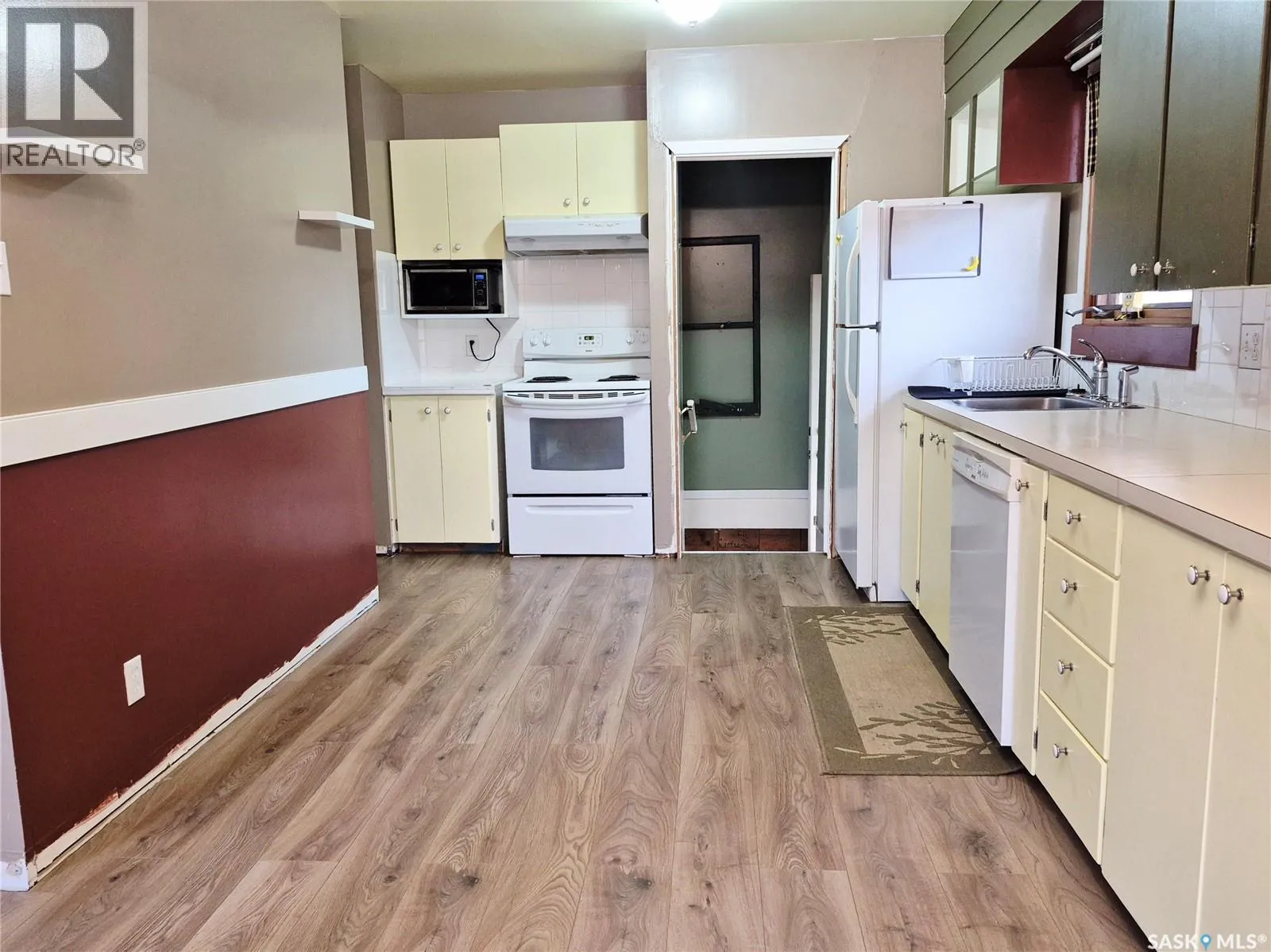 Discover this charming 1,040 sq. ft. home in the welcoming community of Kyle, SK! Offering 3 bedrooms on the main level and an additional bedroom and bathroom downstairs, this home provides plenty of space for family or guests. The lower level also features a generous recreation room, perfect for relaxing or entertaining. Enjoy the convenience of a single-car garage with an attached full-length shed for exceptional storage. Situated on an impressive 12,000 sq. ft. lot, this property feels like an acreage right in town, offering peace, privacy, and room to roam. Ample parking, including RV parking with power hookups adds to the practicality. The yard is beautifully private, and the large porch makes an inviting first impression. Additional highlights include newer shingles, central air conditioning, and the bonus that all furniture and the TV pictured are included! A wonderful opportunity to enjoy quiet small-town living with space inside and out. (id:27476)