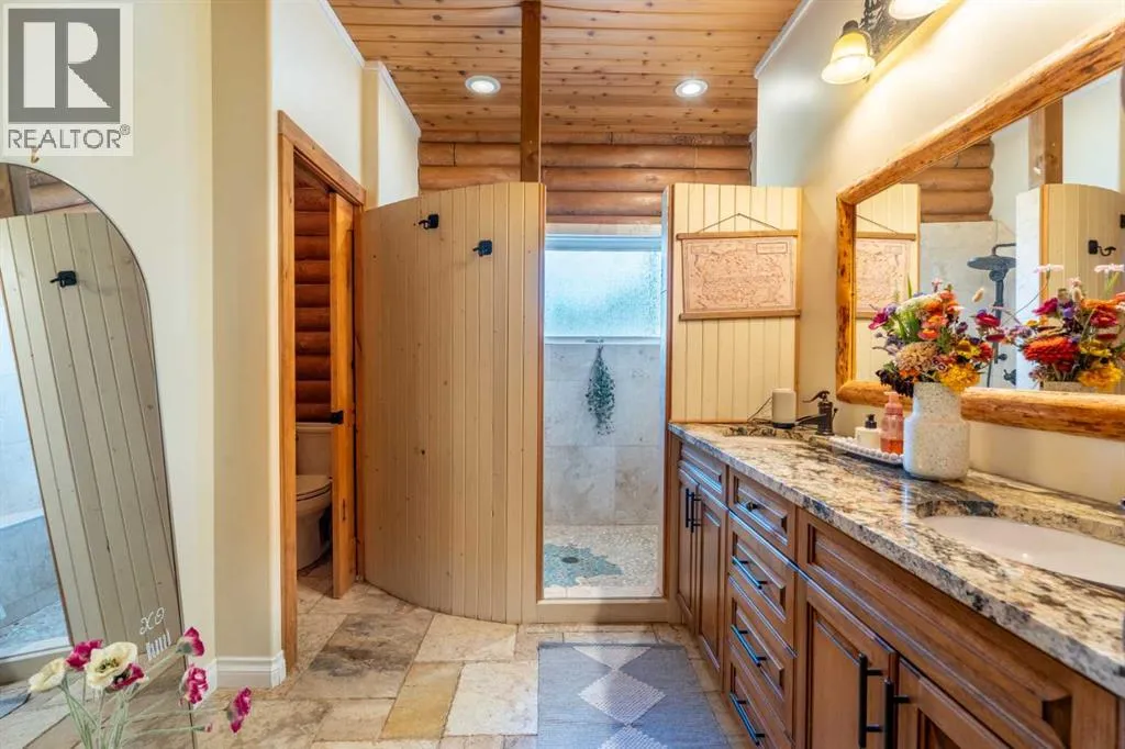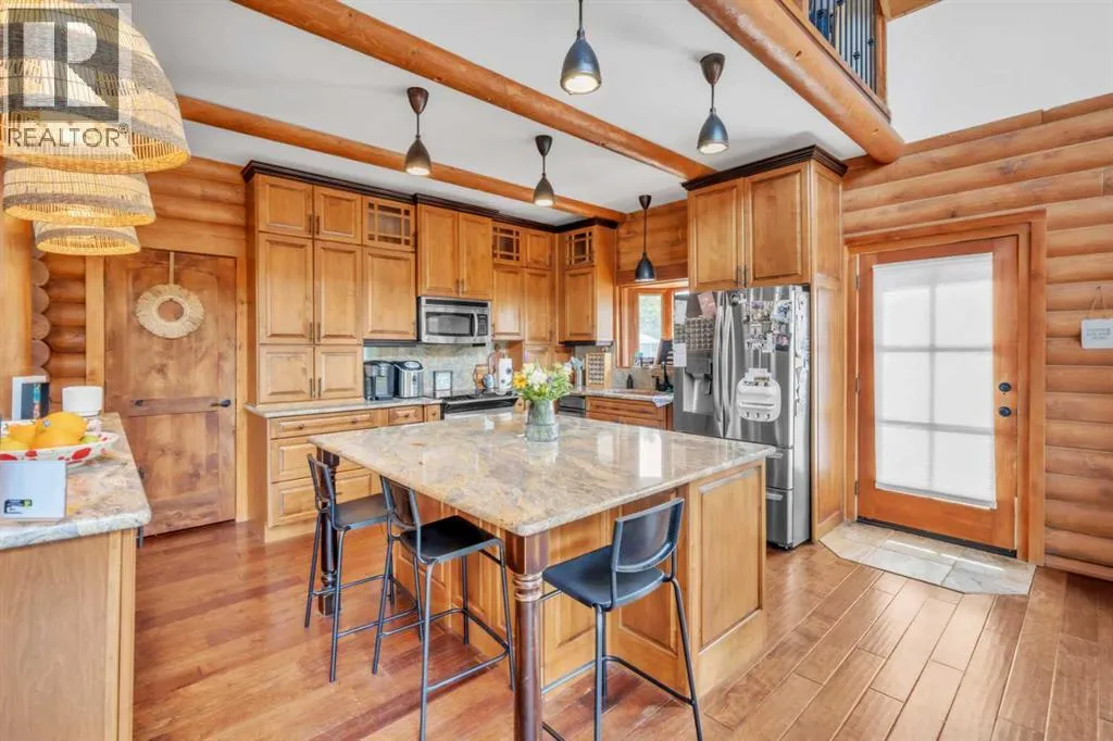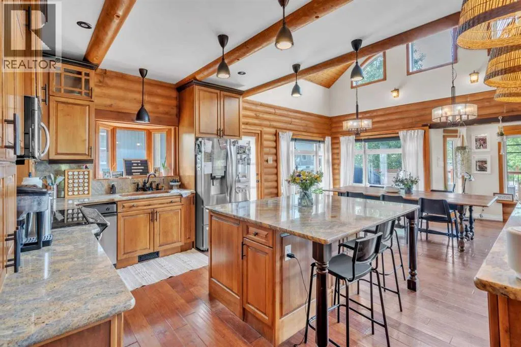 Stunning custom log home at Lac Des Ilse is just steps from the lake. With over 3000 square feet of living space on 3 levels. A true log built home from the entry you'll be awe struck with the beamed cathedral ceilings and log beauty. Large chef's kitchen with granite counters and over size island. Walk-thru pantry. This year round Lake House has 5 bedrooms, 4 bathrooms along with a 90% completed basement with flex space for gym or crafts. The magazine worthy primary bedroom has a custom tile walk in shower and his and hers vanities, a large walk in closet as well. This property includes a boat slip and a portion of the owned dock system. Picture you and your family enjoying evenings on the wrap around deck watching the northern lights over the lake. The deck has 4 natural gas outlets for BBQ and Fire Tables... so handy with the fire bans we may see. A Generac gas powered genrator is an upgrade you'll appreciate when there is a power outage. An oversize lot, beautifully landscaped includes the double garage. There is an easy to remove wall allowing a second vehicle to park. At this time, there is a bedroom for guests. The sellers built this home with quality and longevity in mind with the metal roof and triple pane windows. The expense of just the log house package wouldn't cover the price this property is listed for! Listed for well below value, this dreamy lake home can be yours! (id:27476)