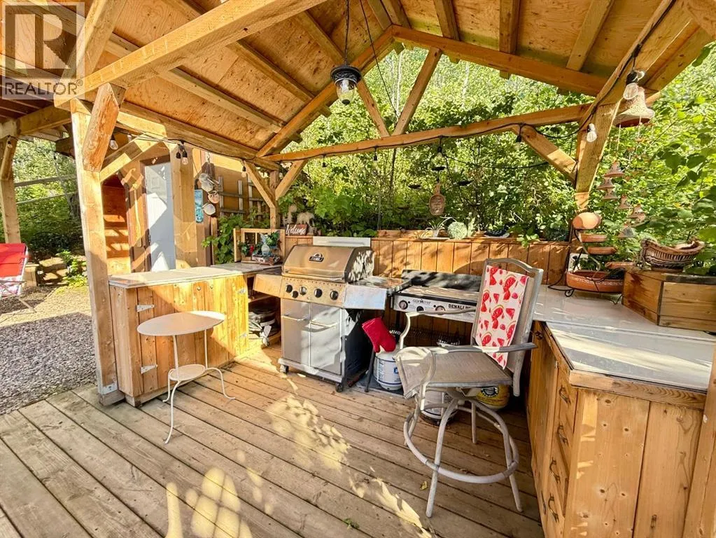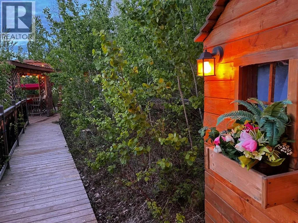 Beautifully planned Lauman's Landing Property. Large lot backing onto greenspace. Only one neighbour to this wonderland oasis. 300 sqft Guest House with full bathroom and prep area with fridge. There's plenty of storage as well as a Murphy Bed and pull out sofa. This cottage is designed to be your home along with the outdoor kitchen and Holiday Trailer for additional guests. This stunning lot is to be built on by 2030; however it is set up for lake time fun while you plan your build. A boardwalk across a bridge through the trees takes you to a large entertainme dining and cooking gazebo. A few more steps up and you're on a rooftop deck watching the sun set over the lake. Panoramic views of Lac Des Ilse from this perch are stunning! A custom made playhouse for the kids or parking your cart in. The upper level makes a great place for kids to play or sleep. There is even a deck on the playhouse! Every square foot of this lot has been caringly placed with family fun, entertainment, storage and a future build in mind. Storage sheds for equipment and firewood, as well as custom bins and cabinets throughout the lot. All the buildings have been professionally built with quality products and attention to detail. Bring your cold beverage and sunscreen. There is still time to enjoy sun at this sought after fishing and summer fun location. (id:27476)