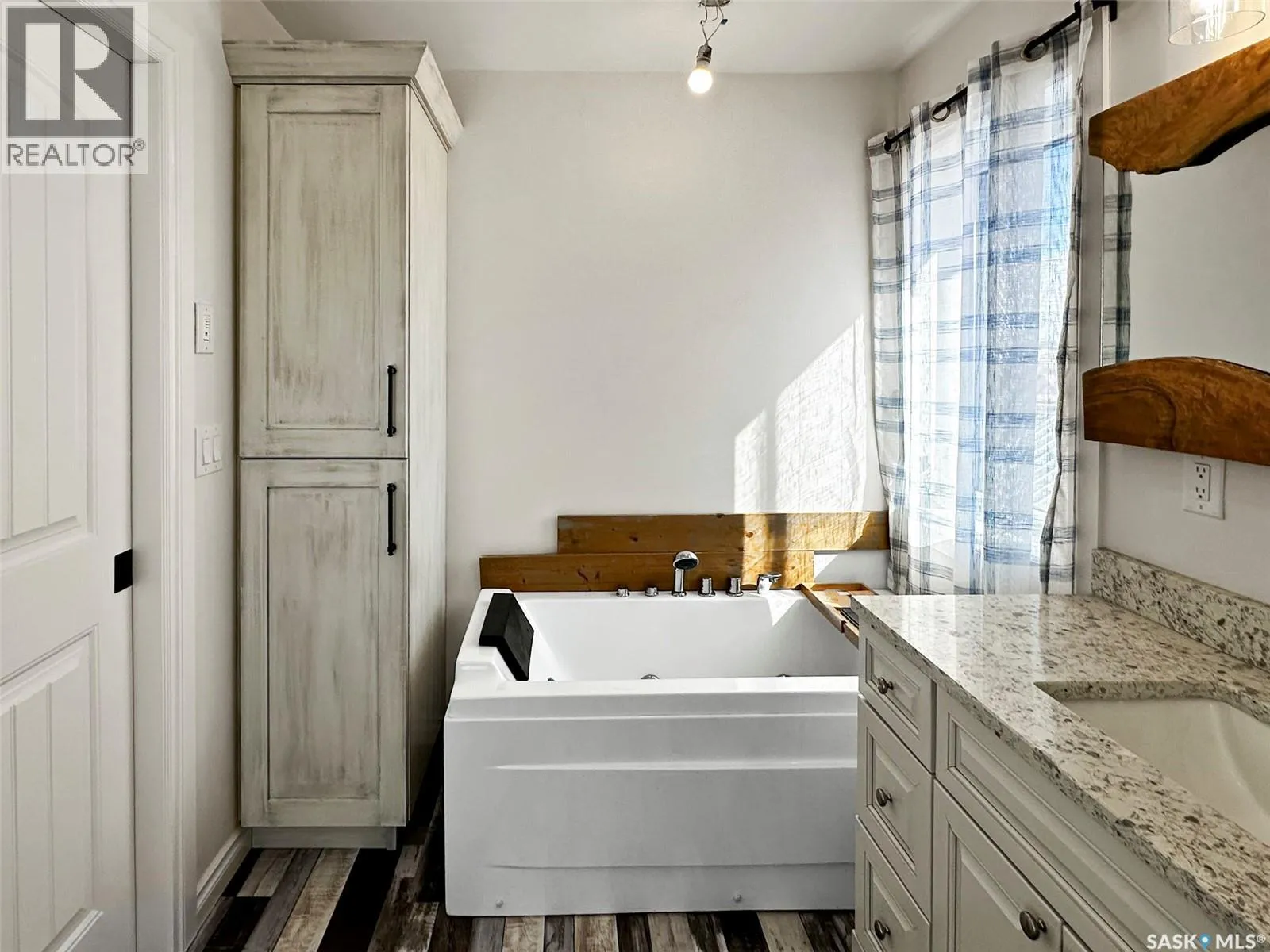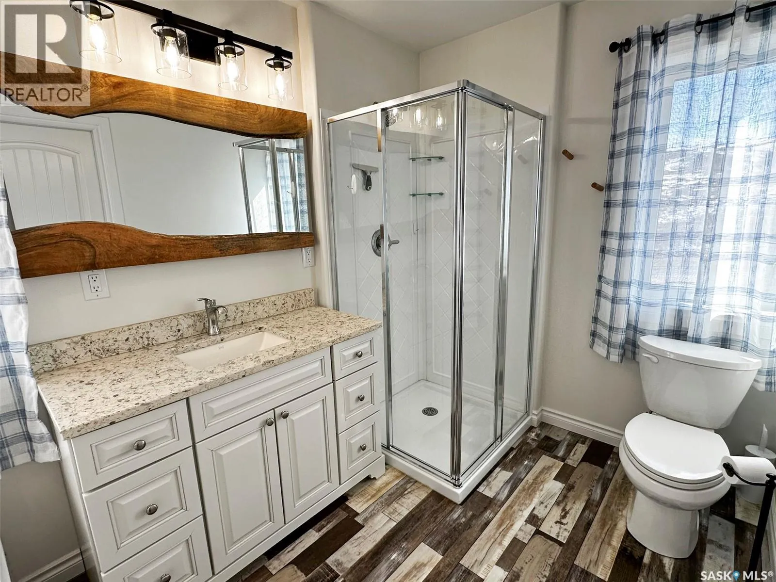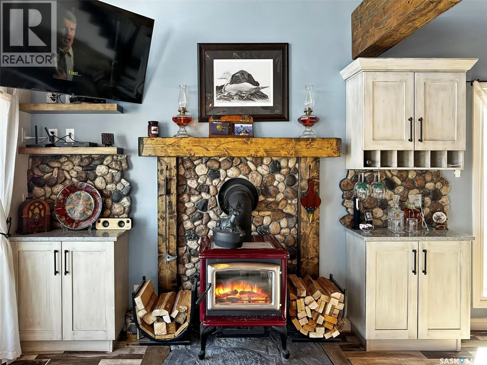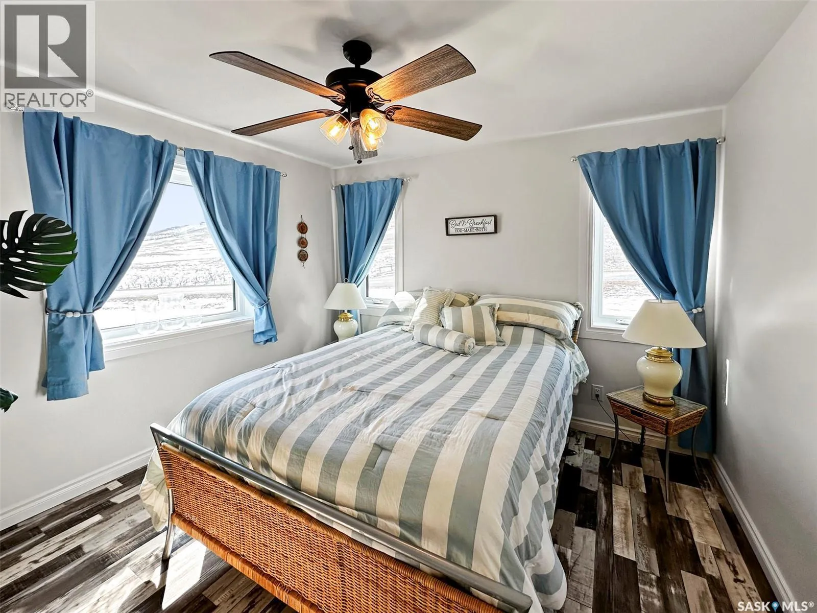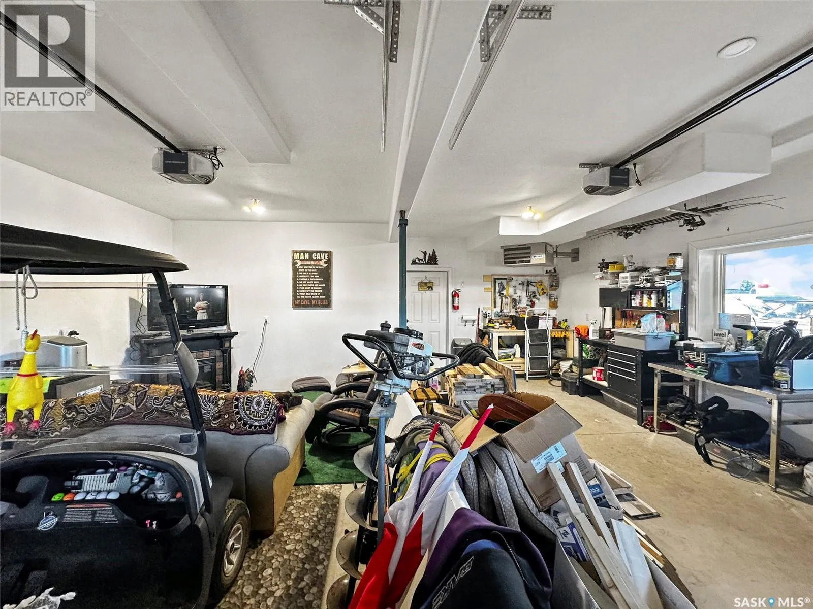 Escape to your own lakeside sanctuary at Lac Pelletier's southwest side w this 4-season ENERGY EFFICIENT A-frame home (ICE panel construction). Built in 2021, this rustic reverse walkout A-frame bungalow won't disappoint! The open concept main floor, adorned w vaulted pine ceilings, has an abundance of windows framing stunning lake views. Vinyl plank flooring throughout for durability. Enjoy the covered deck to the east for peaceful relaxation, while the deck along the north side offers an open-air experience with views of the river hills directly behind the home. Cozy up by the wood-burning fireplace w stone accents, flanked by cabinets including a bar & wine rack. The modern kitchen is a chef's dream, featuring a full stainless steel appliance package, gas range, & a convenient sit-up island. This space seamlessly flows into the loft above, creating a harmonious living environment. The main floor also includes a bedroom, a 4-piece main bath, & a welcoming porch for added convenience. Ascend the open stairwell to the loft area, offering a relaxing space that can dble as an office. The lower walkout level houses a spacious mudroom/laundry area w stacking washer/dryer, a sink, & a modern mechanical room. The dble garage is heated & features a man cave on the south side, while the home is equipped w a high-efficiency furnace, air exchanger, a 2000-gallon septic tank, & connection to the central water line. Majority of furnishings will be included. Embrace the lake life lifestyle w access to the Regional Park's amenities, including a restaurant, 9-hole golf course, licensed clubhouse, mini-golf, boating, fishing, & swimming. This deeded second row property offers a tranquil escape just south of Swift Current, Saskatchewan, at Lac Pelletier Regional Park. Located only 31 km south on Highway #4 and 12 km west on Highway #343, this is your opportunity to own a piece of lakeside paradise! (id:27476)