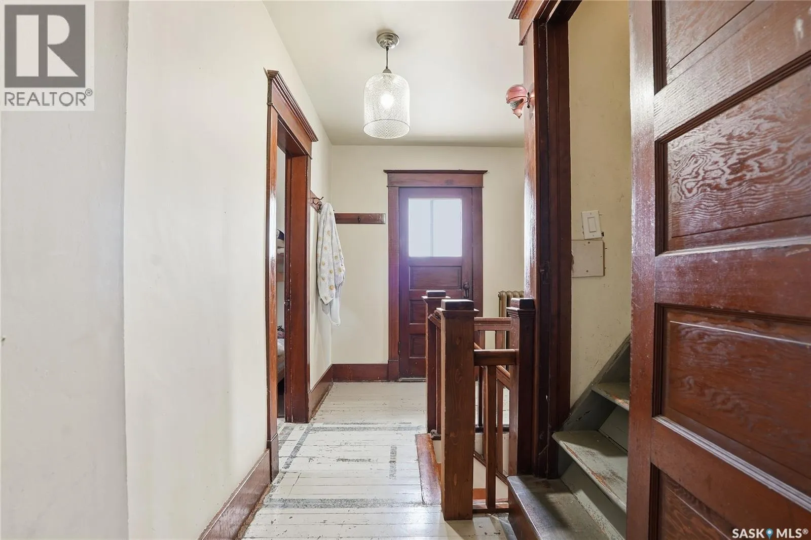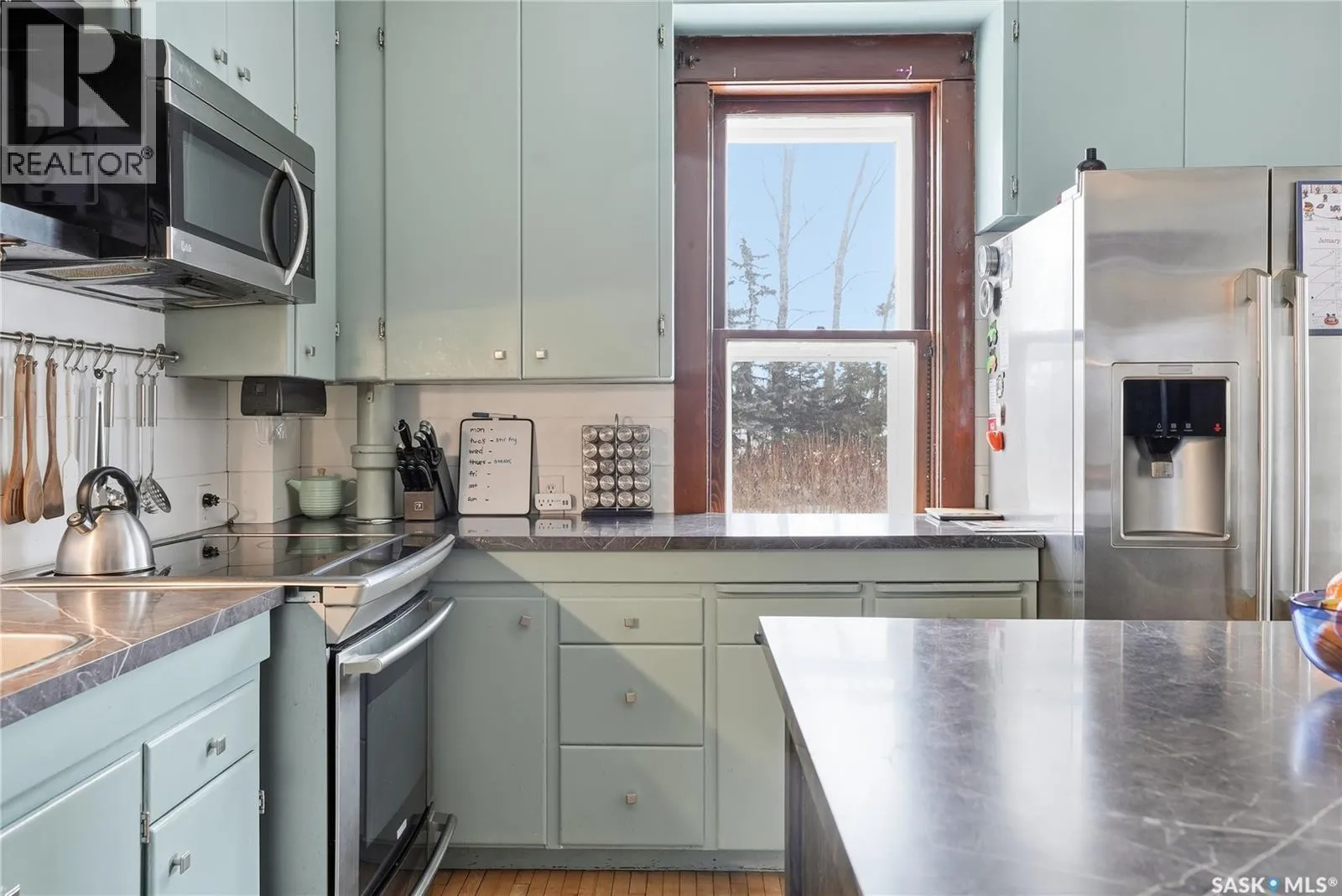 Welcome to a beautiful acreage with an original Eaton's Character Home which still maintains much of its charm! This 34.97 acre property has an abundance of character and beauty. Grass and beautiful trees make it an oasis of quiet living- yet close to valued amenities. The Eaton's Character homes were known best for their sturdy construction and beautifully designed models. They remain a significant piece of Canadian architectural heritage. This home has a family room, a large formal dining room, eat-in kitchen, 2 bathrooms, 4 bedrooms and a mudroom. The 3rd floor was updated/ completed recently to provide additional practical use- with new flooring & painting. (Great as a playroom, or additional space for family use/office or entertaining.) The basement, which is a cement foundation/full basement replaced about 12 years ago, has lots of storage space, and a separate entrance to the outside. A spacious deck is perfect for three season use, and enjoying a coffee, a glass of wine or the perfect spot to read. Shingles were replaced about 8 years ago. The pasture is fenced in. The property is set up for animals - with a Quonset, water bowls, hydrants, corrals, etc. The Quonset can be used for storage or finished for a heated shop, it has been used as loose housing for animals in winter, with corral panels, currently there is a small insulated workshop in it. The quonset is 40' x 60', has a metal clad roofing, no maintainance. There is power to the quonset. Could be kept as a barn, insulated for a shop, or used as cold storage. There are sliding doors at one end and an overhead door on the other end. Shingles on the house replaced about 8 years. ago This property is located at the end of 1st St W- with walking distance to town. (Hepburn) Hepburn has a K-12 School in the Prairie Spirit School Division, along with stores, churches & close proximity to other towns along highway 12, as well as just a short jaunt to Saskatoon on well maintained Hwy#12. (id:27476)
