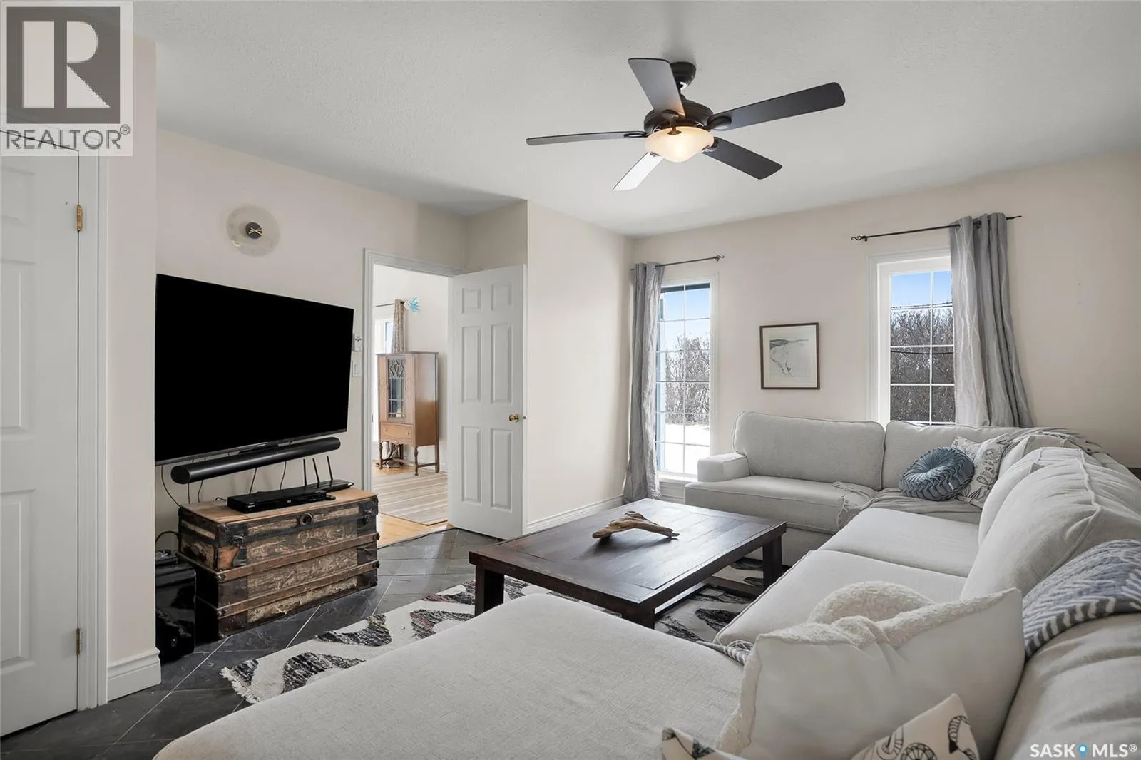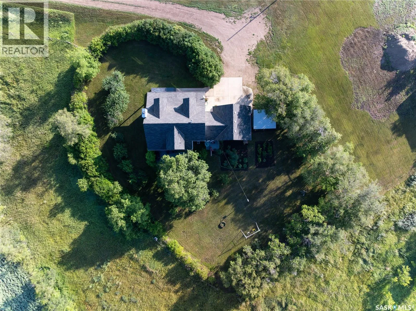 This charming 10-acre country retreat just minutes from Hepburn and Dalmeny is the peaceful slice of prairie life youâve been looking for. Youâll love the longer, tree-lined driveway winding back from the road, giving privacy and keeping the house tucked away from traffic, dust, and dirt. Set on private land with mature trees, lilacs, fruit, and sour cherry trees, thereâs room for horses and kids to play. The school bus comes right to the door, and quick possession is available. This original owner 1,944 sq ft custom 2-storey home has a warm farmhouse feel throughout. Enjoy the bright kitchen updated in 2024, sunny dining area, and cozy living room with hardwood floors and wood burning fireplace. A second main floor living space works as an office, study, or extra bedroom, plus two laundry rooms. Upstairs features a spacious primary suite with walk-in closet, ensuite, and makeup vanity, plus a bonus loft for office, bedroom, or yoga/workout space. The fully finished basement offers three bedrooms, a full bath with heated floor, family room, storage, and unique stone plank floor. Practical perks include a 5,000-gallon water cistern, humidifier, electric boiler heating with low bills, Starlink internet, video security, alarm system, and a 4-year-old generator. Outside features a double attached garage, dog run, charming older barn with lean-to, and serene surroundings with songbirds and wildlife. Seller will consider selling adjoining landâcontact agents for pricing. This home shows a perfect 10/10 and has that settled country soul. Boots by the door, coffee on the porch⦠it just feels like home! (id:27476)