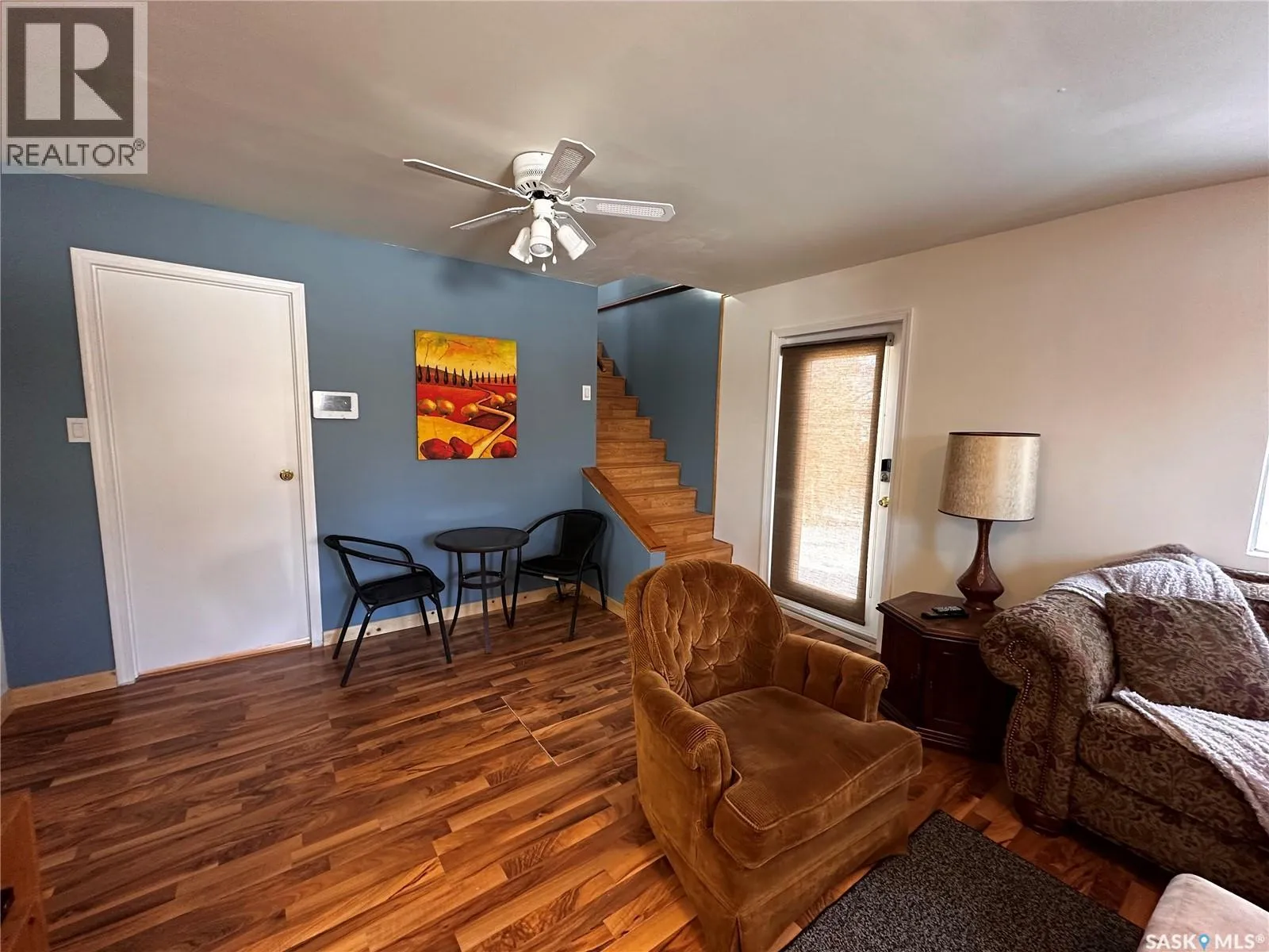 Welcome to your peaceful getaway in the quiet community of Davin, perfectly situated at the end of a tranquil street and only a short 30-minute drive from Regina. This delightful 1 1/2 storey home offers the perfect balance of countryside charm and modern convenience. Step inside to discover a warm, inviting atmosphere. The main floor features an accessible bedroom, ideal for guests or those seeking one-level living, while the upper loft-style bedroom offers a private and cozy retreat. The bathroom is cleverly designed to include in-suite laundry, adding to the home's practical layout. An open-concept kitchen and living area create a bright and spacious main living space. A stylish dividing wall adds character while preserving an open flow between rooms. Outside, enjoy a large yard that backs onto a serene treed areaâperfect for relaxing evenings, family gatherings, or outdoor entertaining. A garden space is already in place, with plenty of room for your personal touches to create the ultimate outdoor oasis. Additional features include a single detached garageâideal for parking, storage, or even converting into a studio or workshop. Recent Updates & Improvements: Main floor structurally braced, Upper floor lifted with added rafters, Lower roof replaced with new shingles, New drywall and fresh paint throughout, Replaced water main shutoff, Driveway widened to accommodate two vehicles, Patio gated and fully fenced, New kitchen counters, New living room heater, Donât miss this opportunity to own a unique, move-in ready home that offers peace, privacy, and potentialâall within easy reach of the city. Come see everything this lovely property has to offer! (id:27476)
