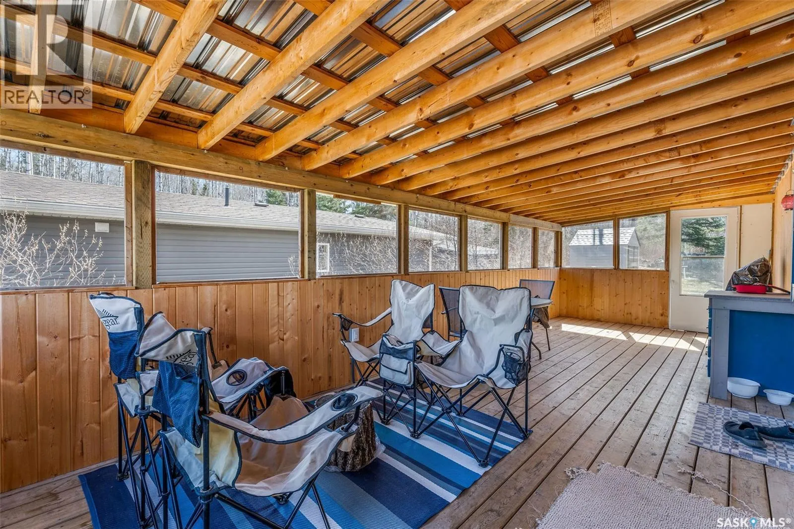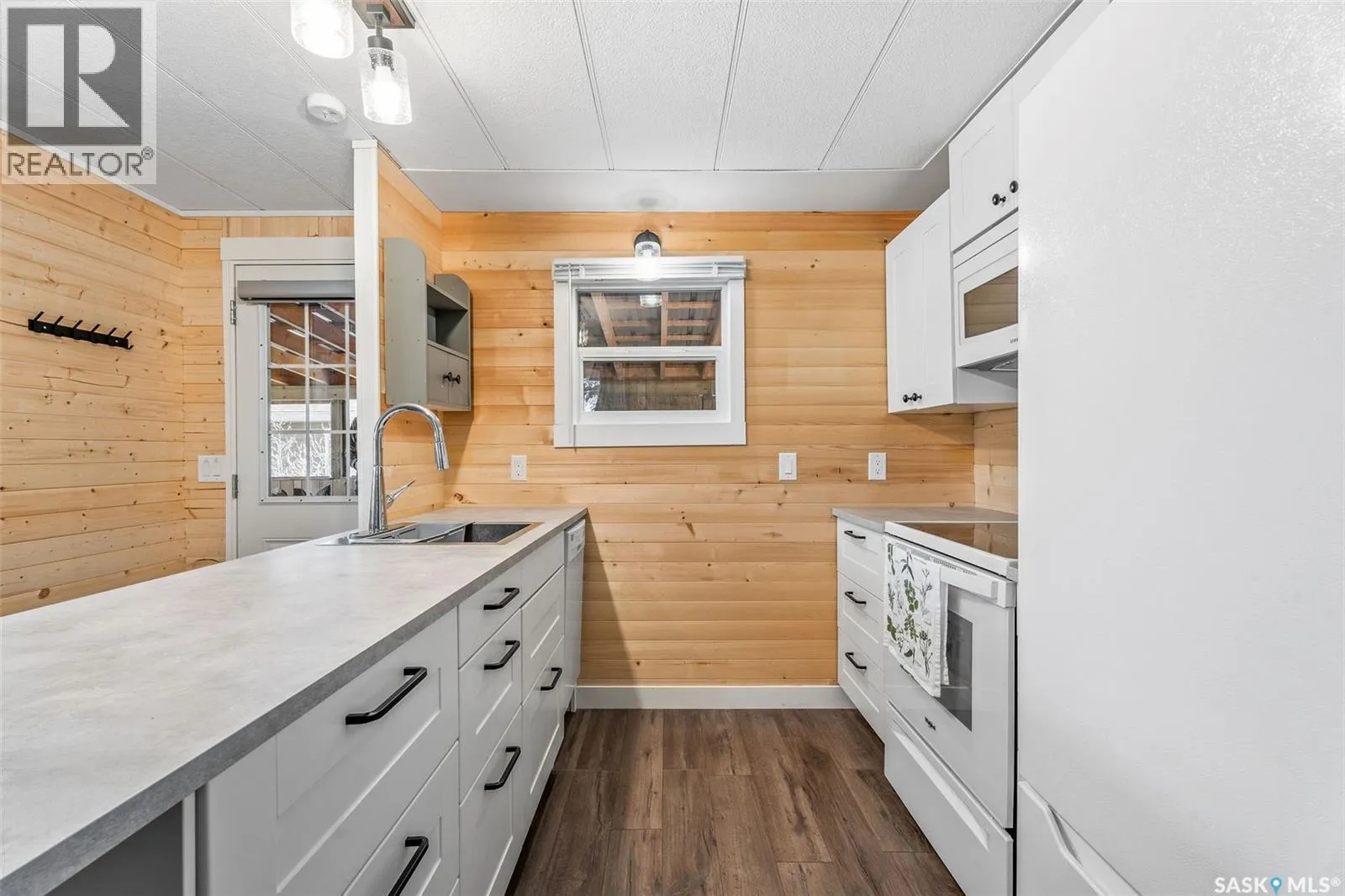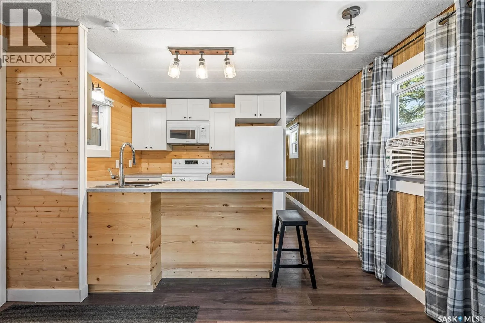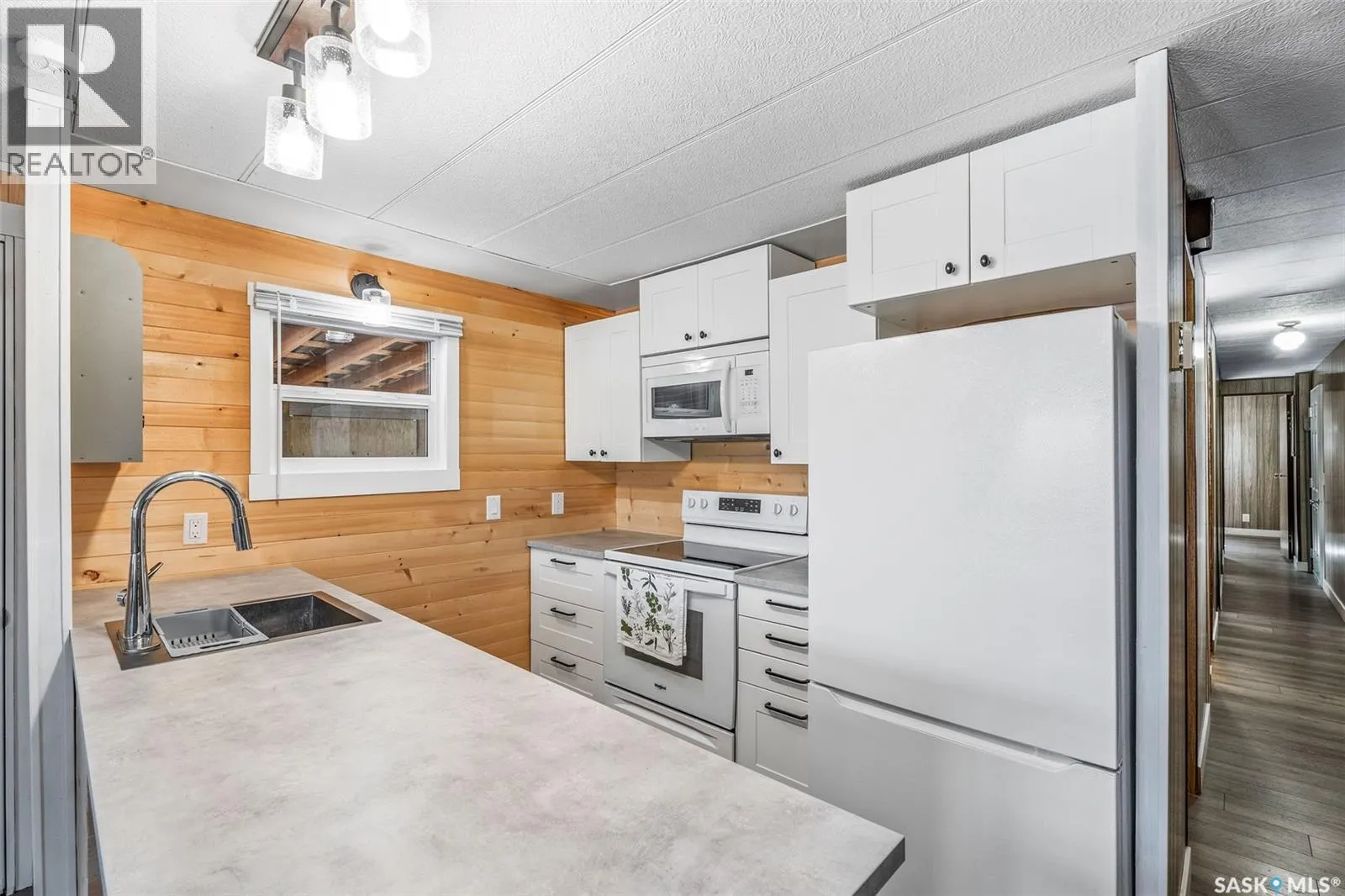 Charming 3-Season Retreat at Rothenburg Park - Titled Lot â Minutes from Emma Lake! This well-maintained, 3 bedroom property offers comfort, convenience and excellent value. The updated interior in 2023 features a stylish kitchen renovation and upgraded windows throughout, a three-piece bathroom with shower, and a separate laundry room. All appliances are approximately two years old and included with the sale, along with any existing furniture. Enjoy the private back yard, large deck, screened-in sunroom, with plenty of storage space beneath the deck, plus a shed. The property has natural gas already at the property, currently the home has an electric furnace and water heater. $400/year fees are for water, sewer and snow removal. This property could easily be converted to a four season home to take advantage of year round services at Rothenburg. (id:27476)
