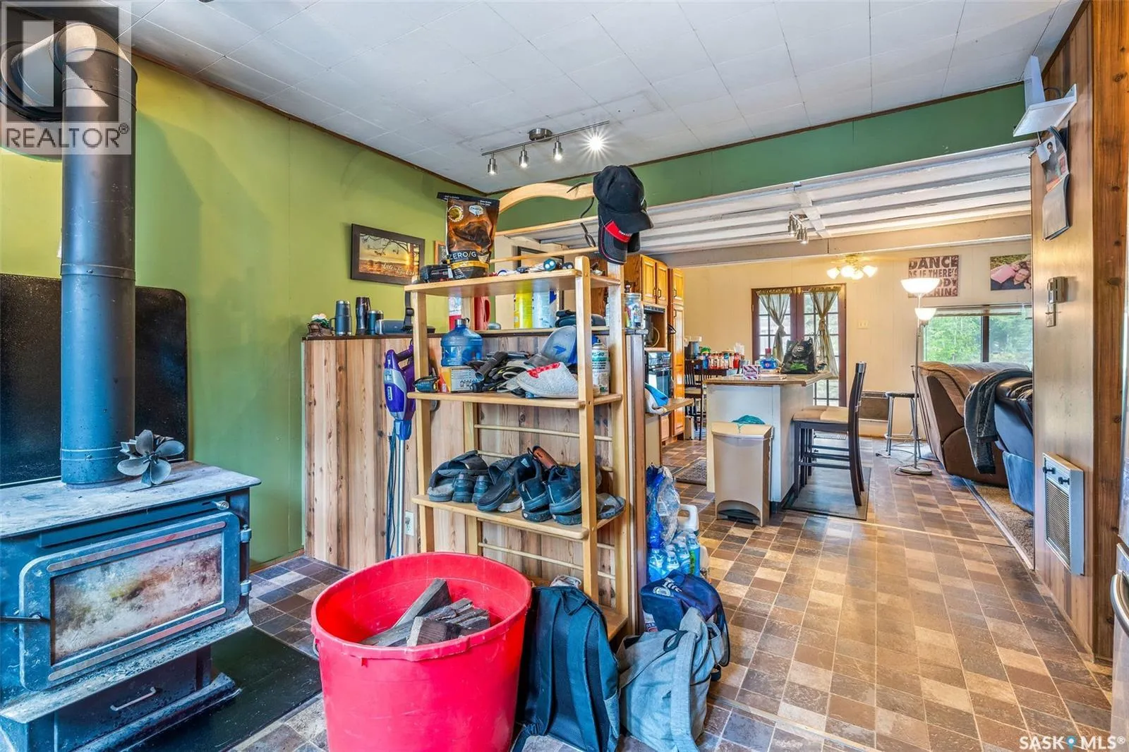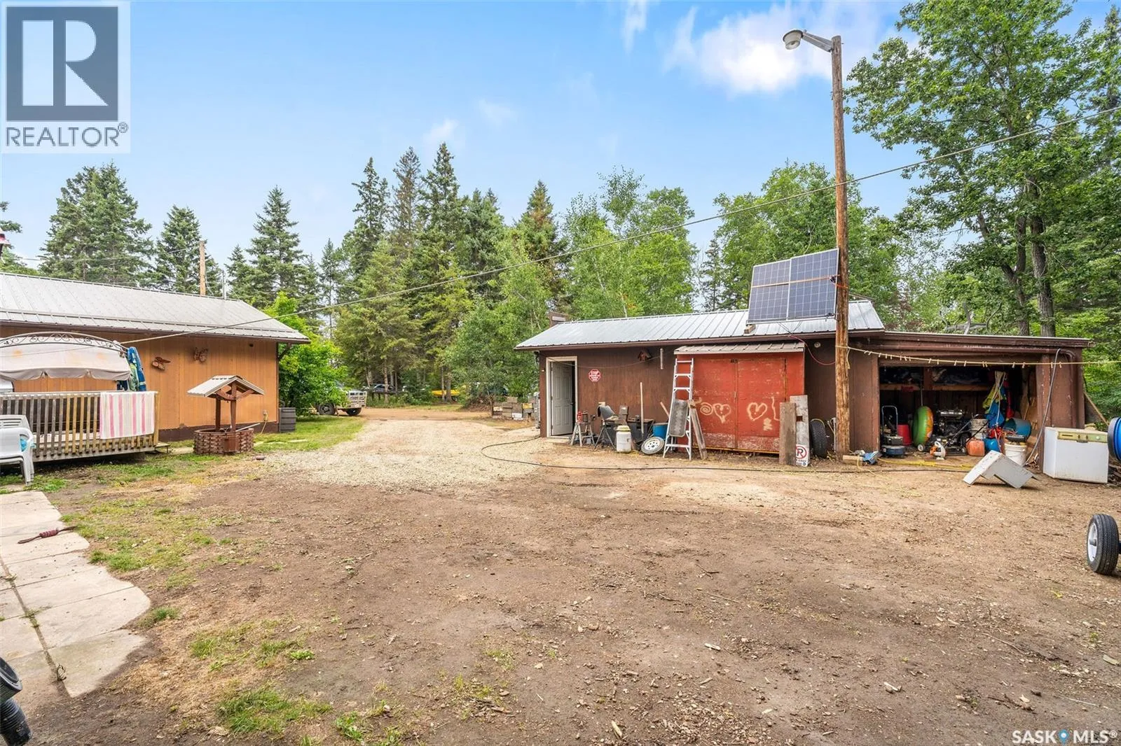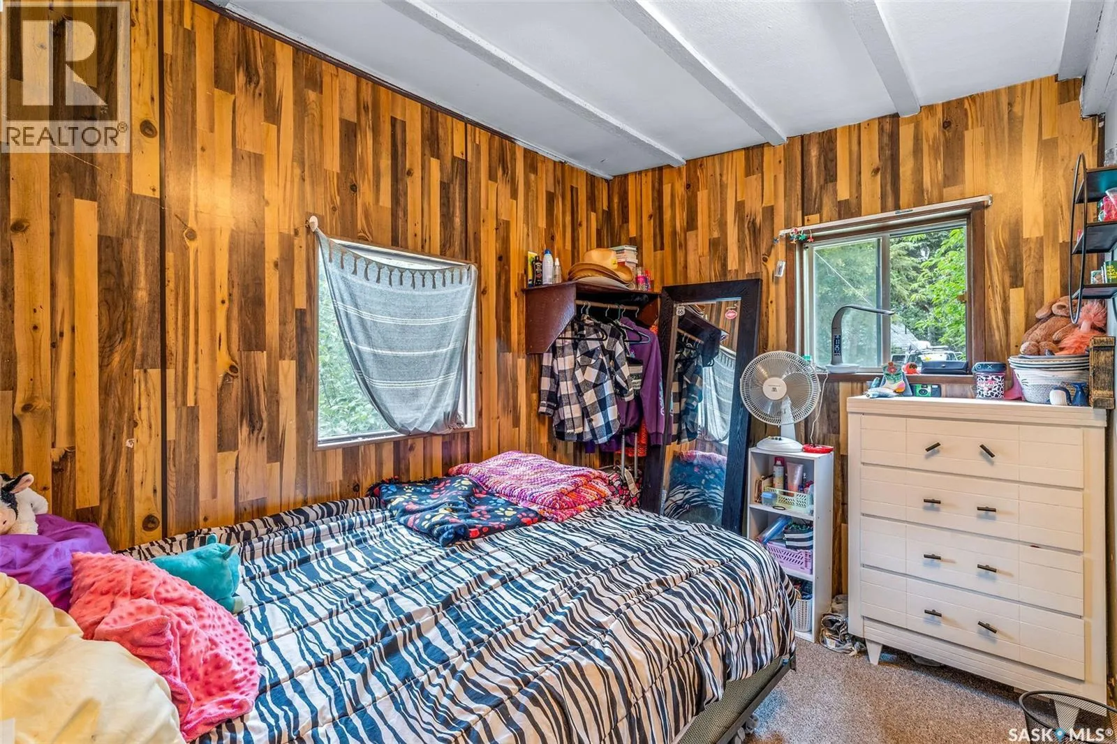 Tucked among the trees on a corner lot and just steps from Sunset Bay Marina and beach, this 3-bedroom bungalow offers the perfect 3-season retreat at Emma Lake. A welcoming entry warmed by a wood stove opens into a cozy living room and a spacious kitchen featuring a large island with bar seating. There are three comfortable bedrooms along with a 4-piece bathroom, while a separate bunk house provides extra sleeping space for guests. Outside, youâll find raised garden beds alongside a mature apple tree and plenty of space for parking or outdoor activities. Backing onto peaceful greenspace, the property offers direct access to trails right from your backyard. A 1-car garage is paired with an attached smaller garage perfect for recreational vehicles or extra storage. Practical touches include a 1,250 gallon water tank, a 1,000 gallon cement septic tank, a sandpoint well (not in use), and a natural gas hookup at the cabin ready to be connected. The cabin is equipped with a metal roof upgraded in 2019, providing excellent durability and low maintenance. From boating and beach days to evenings around the firepit, this cabin offers the ideal spot to enjoy lakeside living. With lake access and recreation nearby, this Emma Lake retreat is ready for its next owners. Book your showing today! (id:27476)
