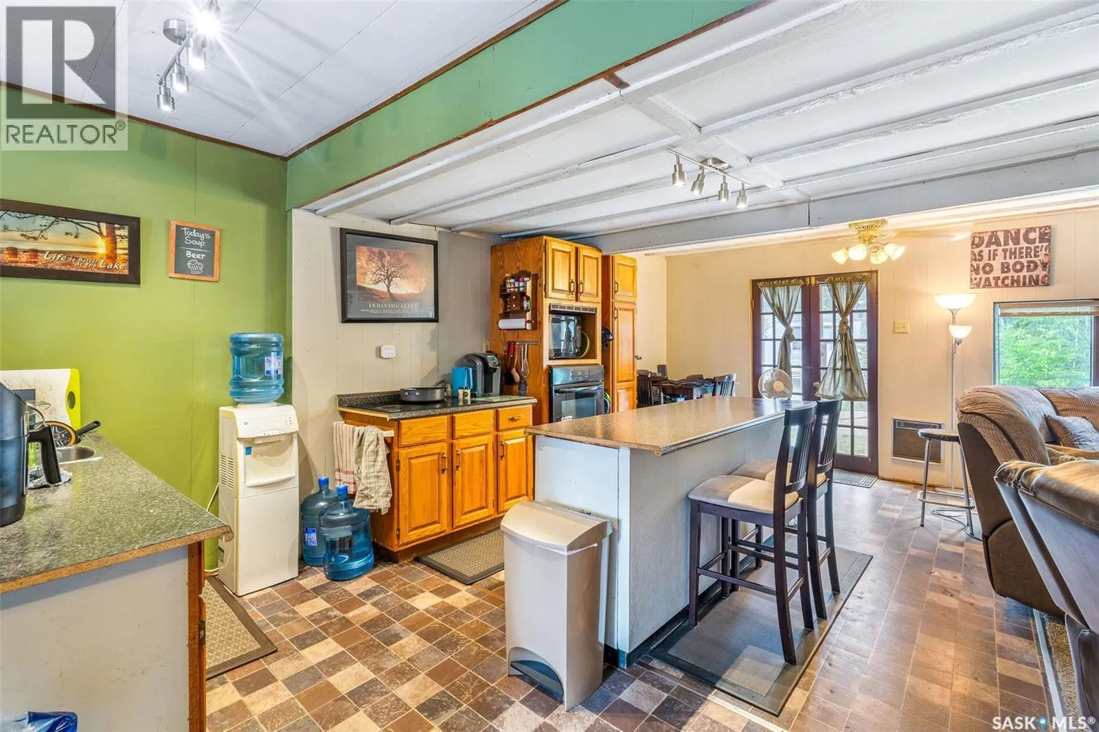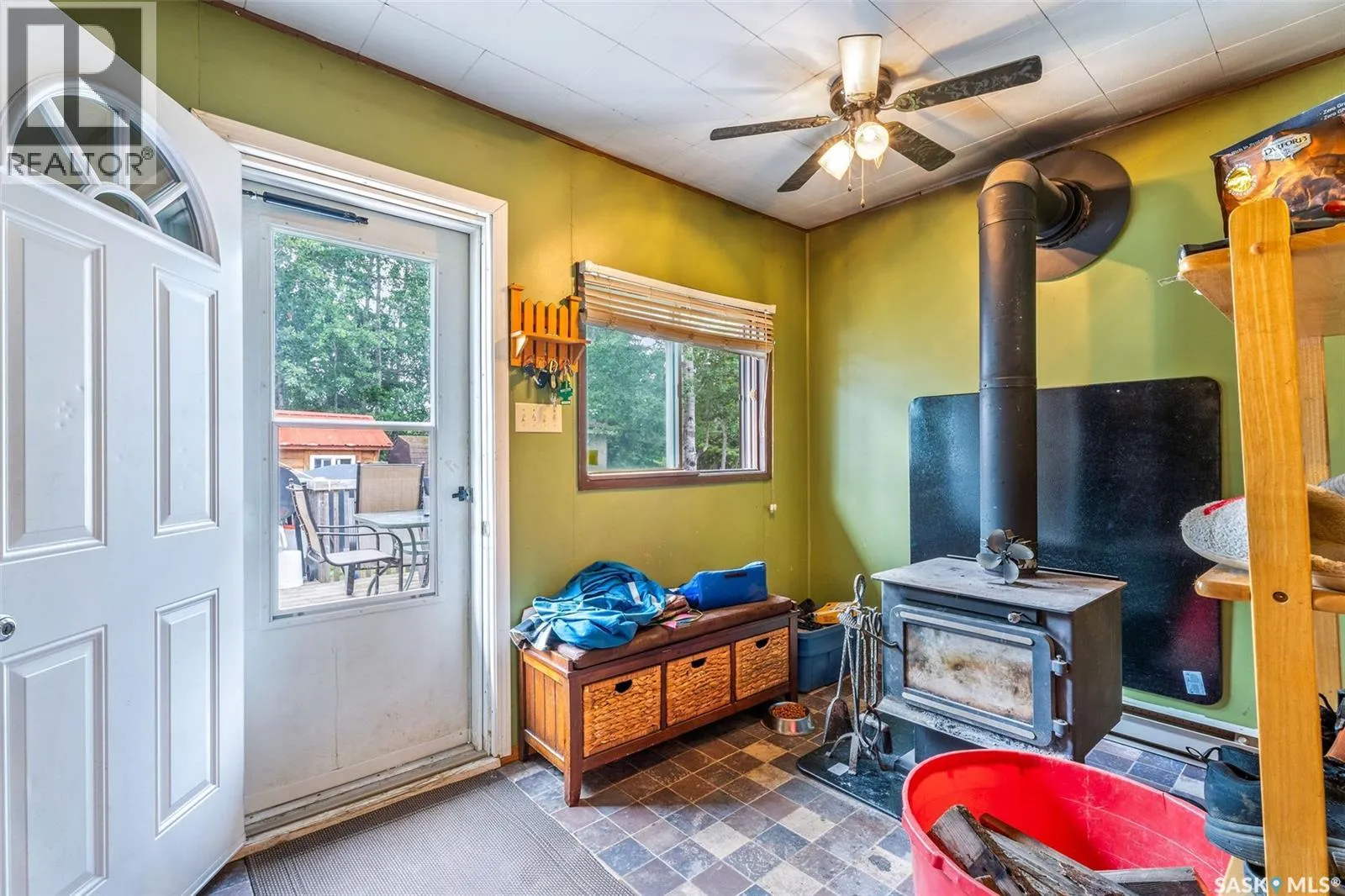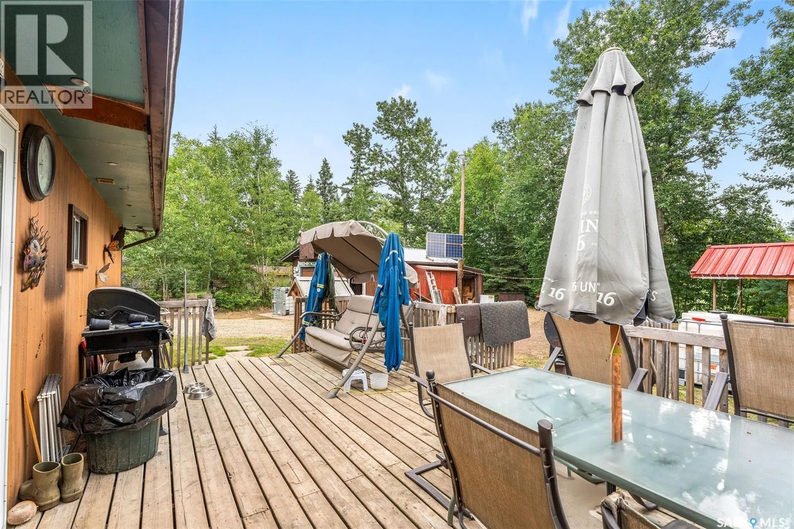 Tucked among the trees on a corner lot and just steps from Sunset Bay Marina and beach, this 3-bedroom bungalow offers the perfect 3-season retreat at Emma Lake. A welcoming entry warmed by a wood stove opens into a cozy living room and a spacious kitchen featuring a large island with bar seating. There are three comfortable bedrooms along with a 4-piece bathroom, while a separate bunk house provides extra sleeping space for guests. Outside, youâll find raised garden beds alongside a mature apple tree and plenty of space for parking or outdoor activities. Backing onto peaceful greenspace, the property offers direct access to trails right from your backyard. A 1-car garage is paired with an attached smaller garage perfect for recreational vehicles or extra storage. Practical touches include a 1,250 gallon water tank, a 1,000 gallon cement septic tank, a sandpoint well (not in use), and a natural gas hookup at the cabin ready to be connected. The cabin is equipped with a metal roof upgraded in 2019, providing excellent durability and low maintenance. From boating and beach days to evenings around the firepit, this cabin offers the ideal spot to enjoy lakeside living. With lake access and recreation nearby, this Emma Lake retreat is ready for its next owners. Book your showing today! (id:27476)