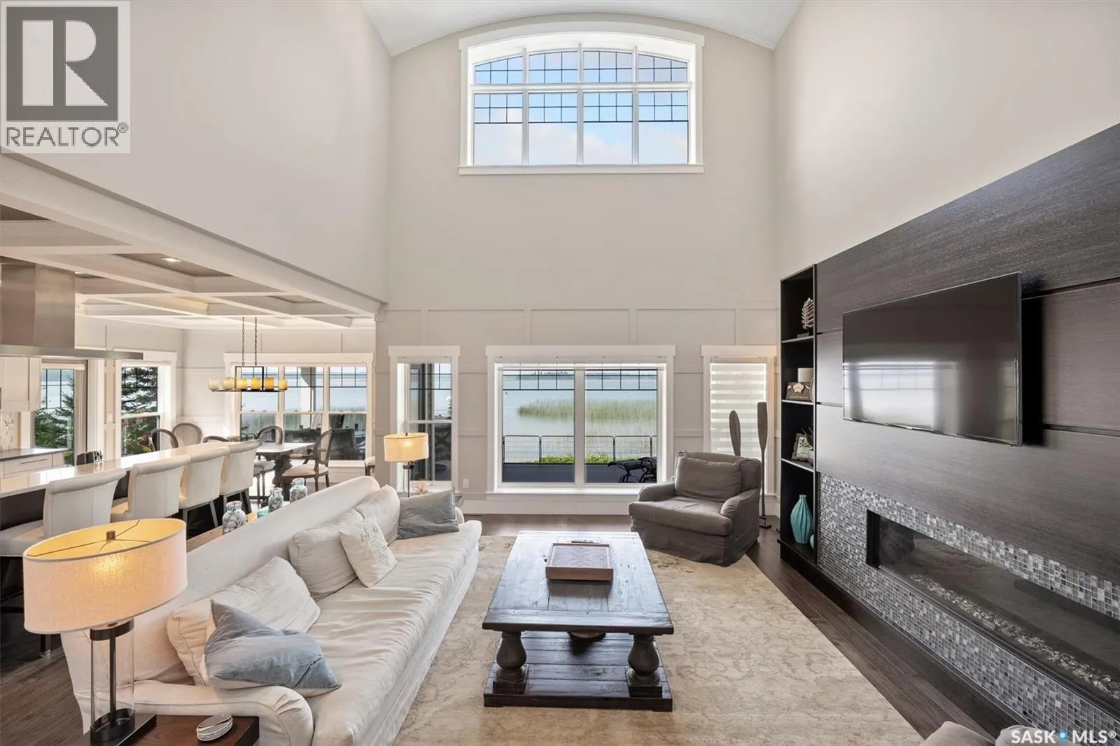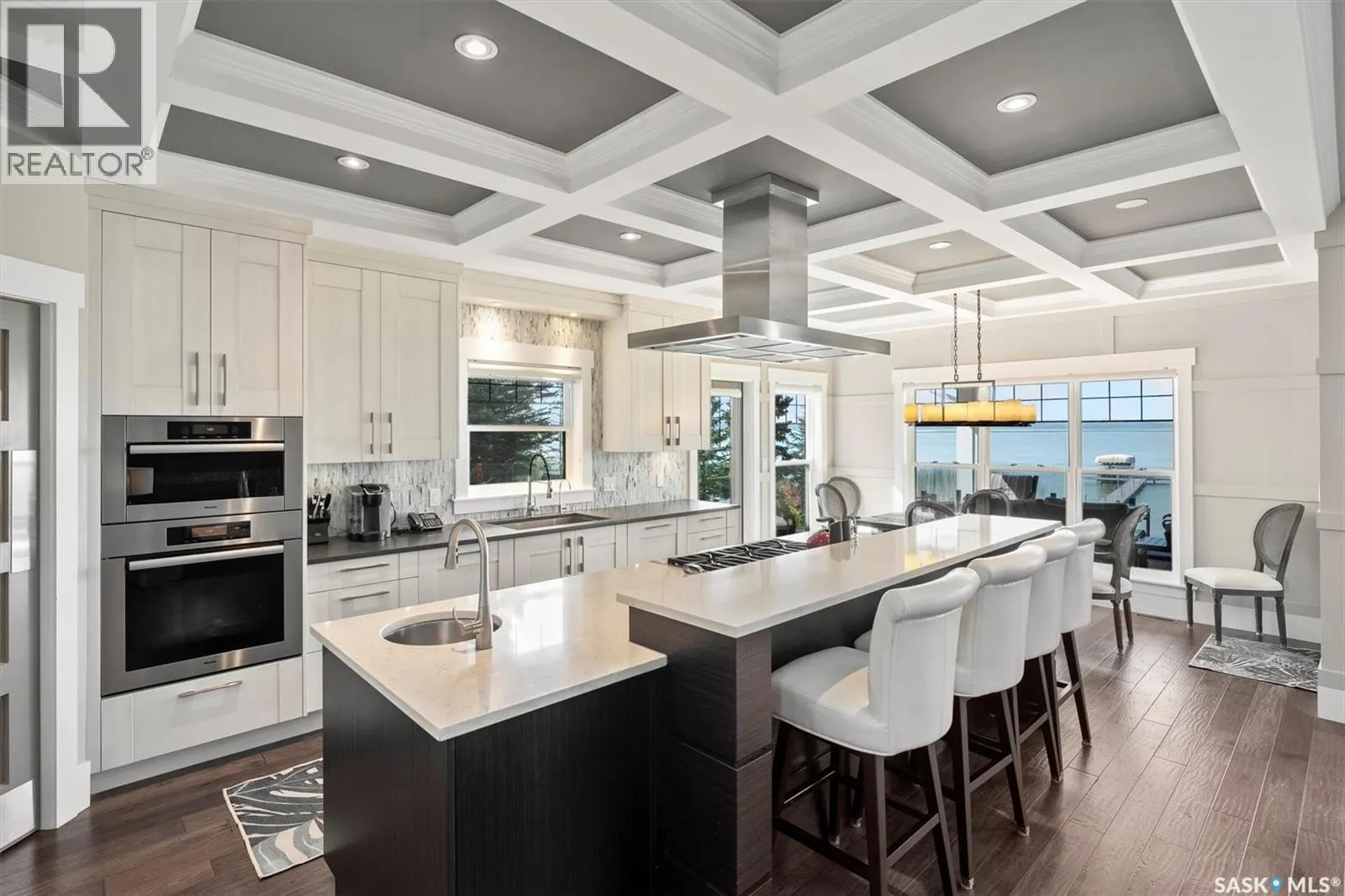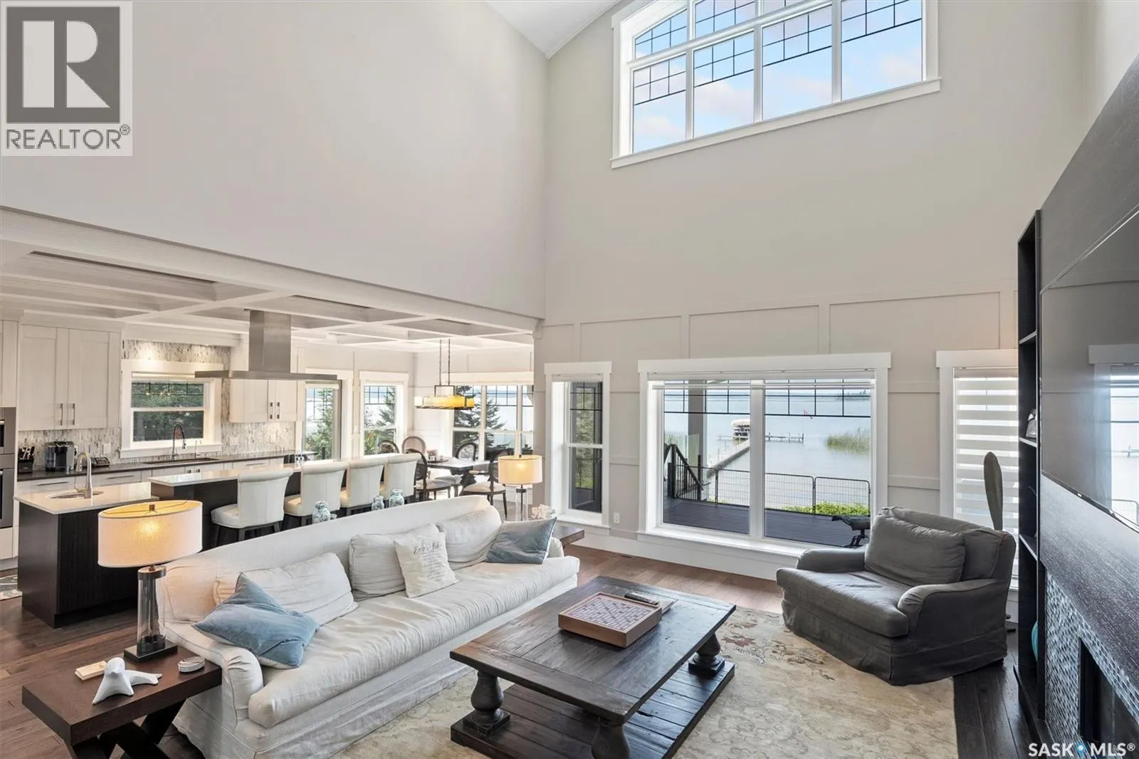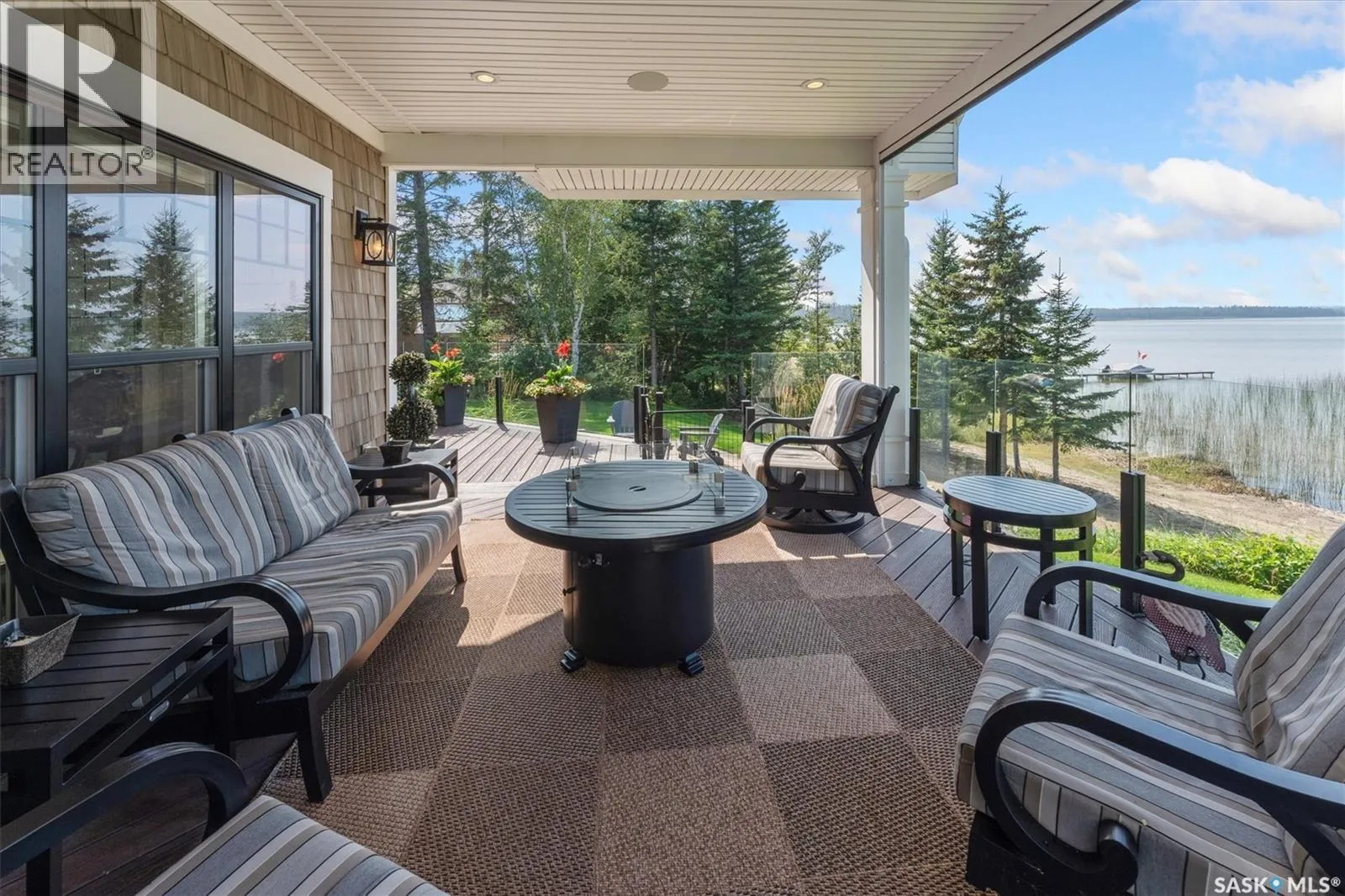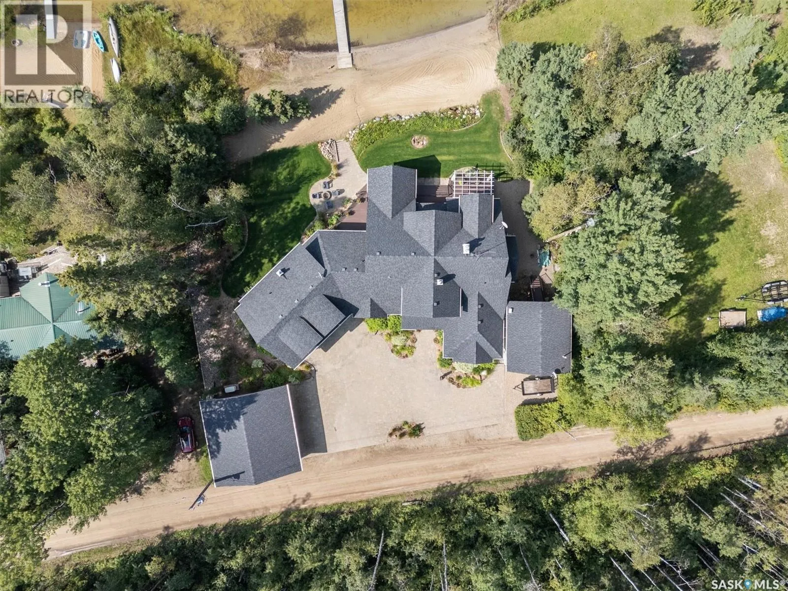 Welcome to 210 Okema Trail, a one-of-a-kind custom-built luxury resort property at Emma Lake, completed in 2015 and set on the exclusive third lake with only 32 homes along its pristine shoreline. Boasting 150 feet of private, sandy lakefront across two expansive lots, this 3,737 sq. ft. two-storey masterpiece is designed for entertaining and family gatherings, comfortably sleeping 17+ guests. The main residence features 4 bedrooms, a home study with a balcony and 4 bathrooms, highlighted by a grand foyer with a double-sided gas fireplace, soaring ceilings, and a family room with stunning panoramic lake views. The family room and dining are all open to the kitchen. The gourmet kitchen is a chef's dream, offering top-tier Miele appliances, Wolf 6-burner gas cooktop, dual dishwashers, steam/convection ovens, a wine fridge, and a walk-through butler's pantry. The luxurious master retreat includes a cozy fireplace, a spa-like ensuite with a soaker tub and steam shower, and a private staircase to a personal retreat with beautiful lake views. Additional features include a heated 1,275 sq. ft. attached garage with a bonus suite sleeping 6 with a large family room and games area as well as a 3 piece bathroom. A separate 400 sq. ft. guest house with living quarters, one bedroom and a bathroom all above the single heated garage. There is also another 3-car detached garage for recreational toys, incredible professionally landscaped yards, all with views of the lake, 800 sq. ft. of compost deck area with glass railings facing the lake as well as beautiful sand beach out front. The property also comes with its own dock. Enjoy this luxury home in every season. Amazing groomed snow mobile trails and ski trails in the winter. Golf, Pickle Ball, groceries and shopping amenities all within 10 minutes. The Prince Albert Airport is located 35 minutes away. This exceptional lakeside property redefines luxury and relaxationâschedule your private tour today! (id:27476)