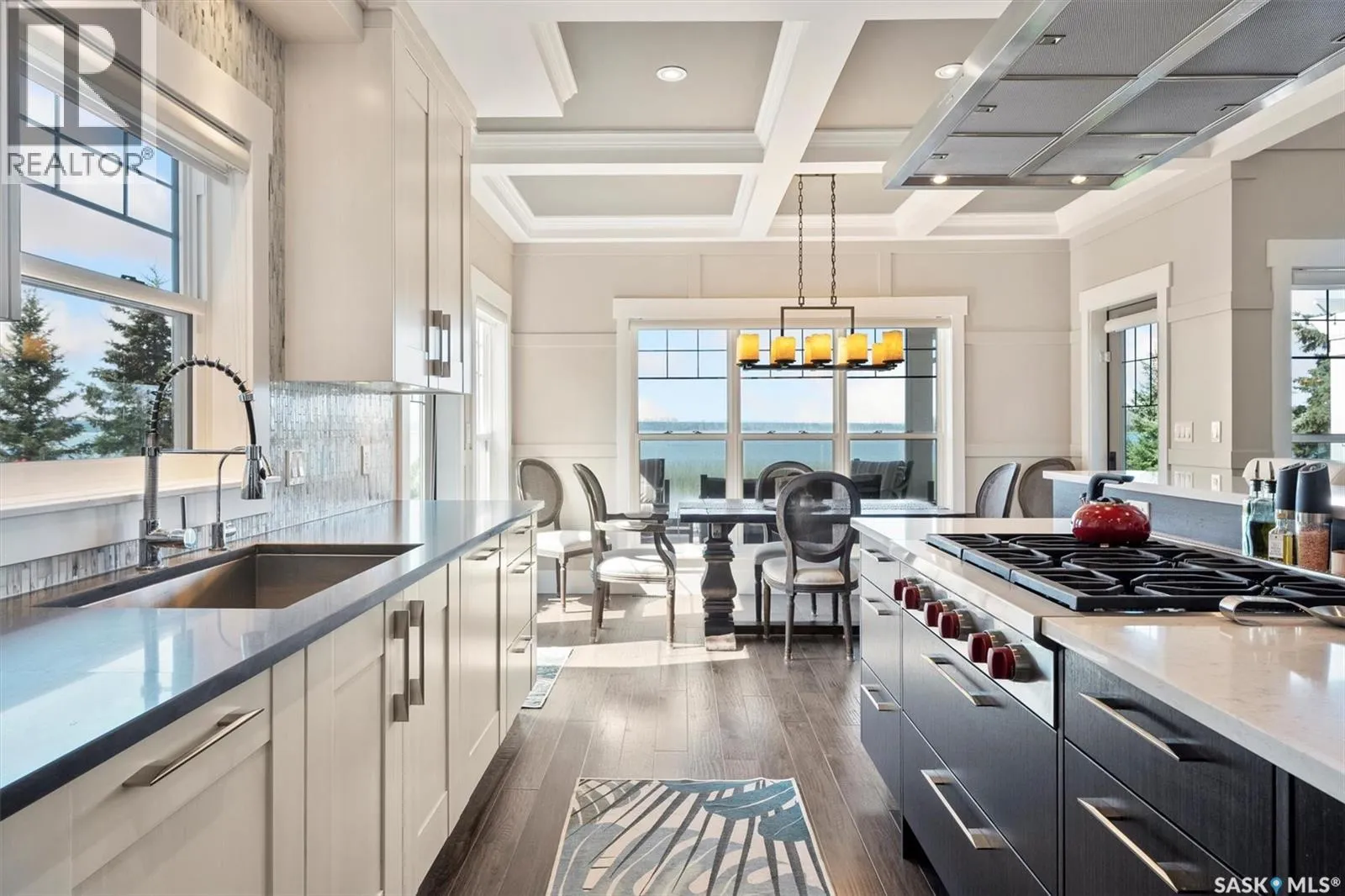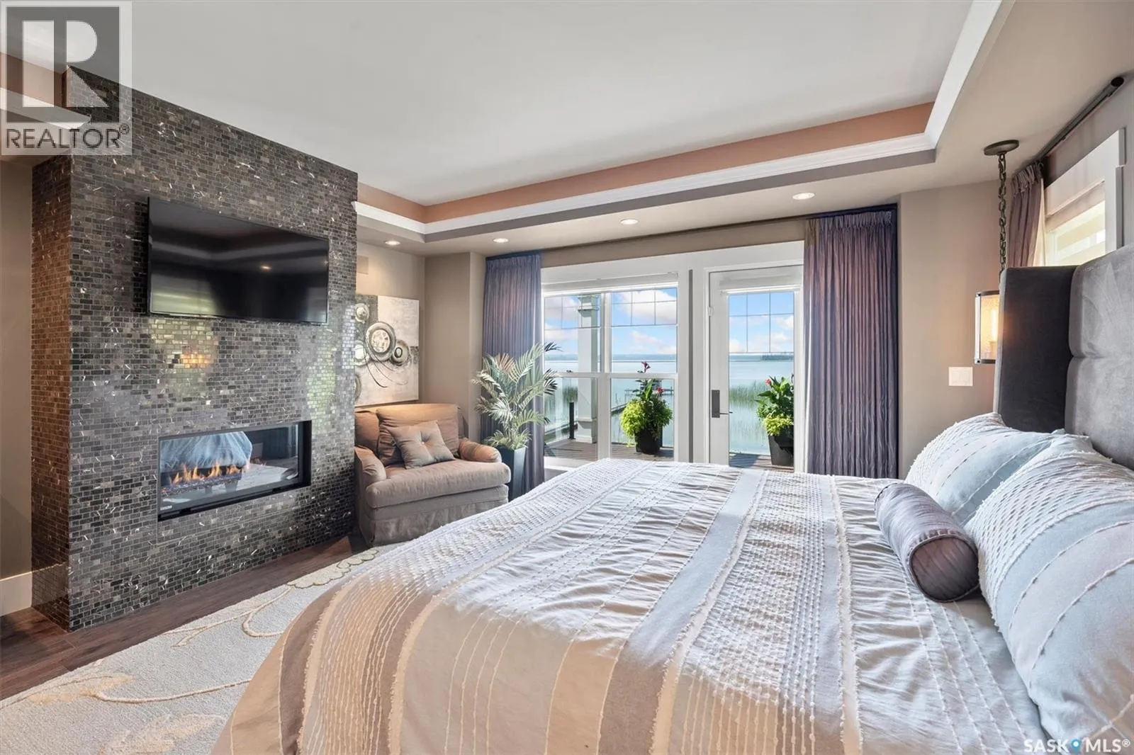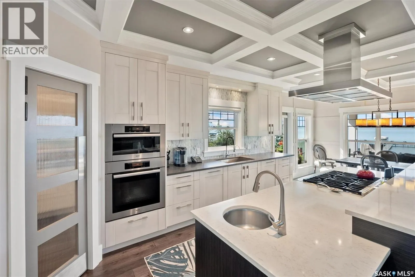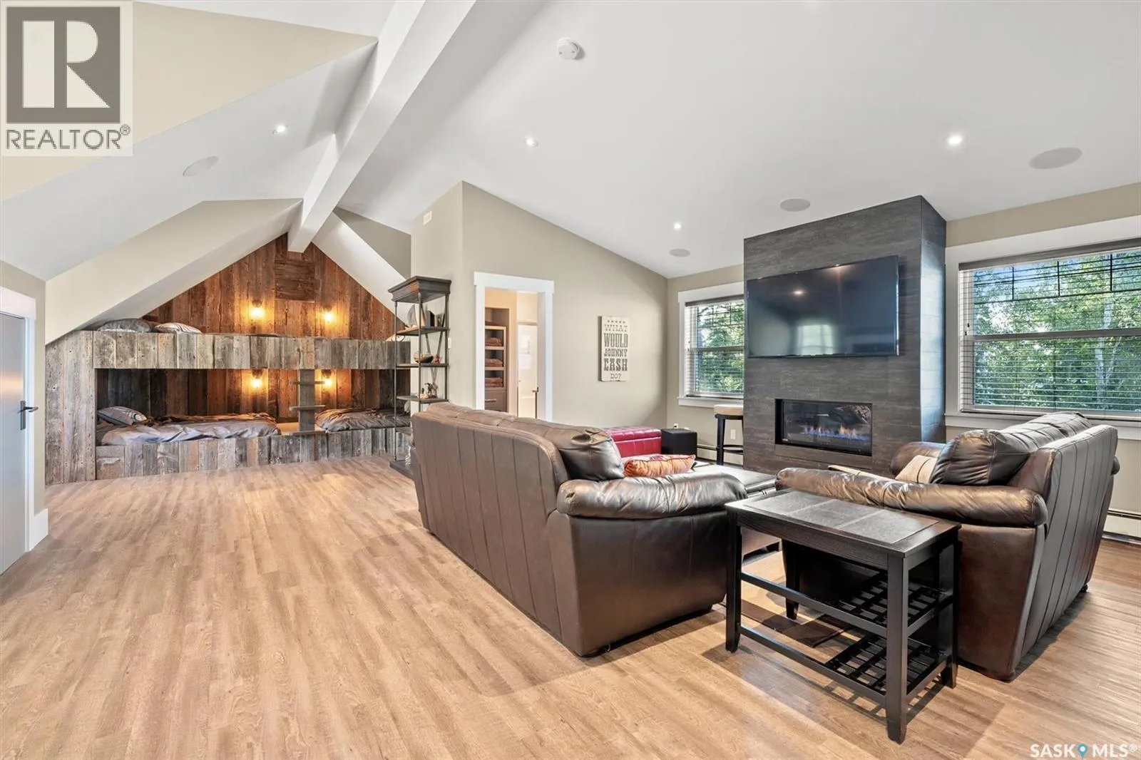 Welcome to 210 Okema Trail, a one-of-a-kind custom-built luxury resort property at Emma Lake, completed in 2015 and set on the exclusive third lake with only 32 homes along its pristine shoreline. Boasting 150 feet of private, sandy lakefront across two expansive lots, this 3,737 sq. ft. two-storey masterpiece is designed for entertaining and family gatherings, comfortably sleeping 17+ guests. The main residence features 4 bedrooms, a home study with a balcony and 4 bathrooms, highlighted by a grand foyer with a double-sided gas fireplace, soaring ceilings, and a family room with stunning panoramic lake views. The family room and dining are all open to the kitchen. The gourmet kitchen is a chef's dream, offering top-tier Miele appliances, Wolf 6-burner gas cooktop, dual dishwashers, steam/convection ovens, a wine fridge, and a walk-through butler's pantry. The luxurious master retreat includes a cozy fireplace, a spa-like ensuite with a soaker tub and steam shower, and a private staircase to a personal retreat with beautiful lake views. Additional features include a heated 1,275 sq. ft. attached garage with a bonus suite sleeping 6 with a large family room and games area as well as a 3 piece bathroom. A separate 400 sq. ft. guest house with living quarters, one bedroom and a bathroom all above the single heated garage. There is also another 3-car detached garage for recreational toys, incredible professionally landscaped yards, all with views of the lake, 800 sq. ft. of compost deck area with glass railings facing the lake as well as beautiful sand beach out front. The property also comes with its own dock. Enjoy this luxury home in every season. Amazing groomed snow mobile trails and ski trails in the winter. Golf, Pickle Ball, groceries and shopping amenities all within 10 minutes. The Prince Albert Airport is located 35 minutes away. This exceptional lakeside property redefines luxury and relaxationâschedule your private tour today! (id:27476)