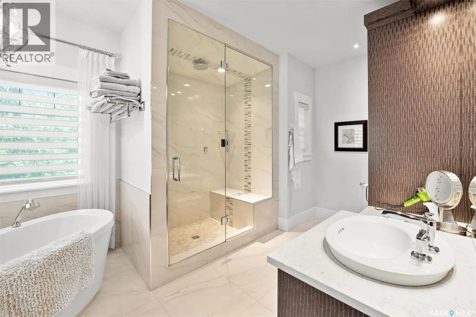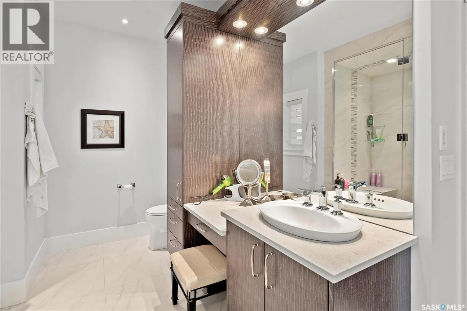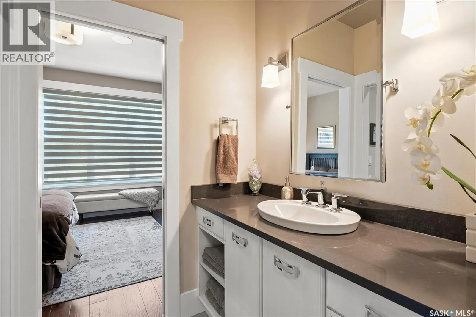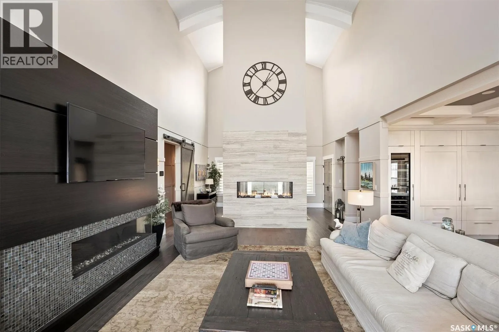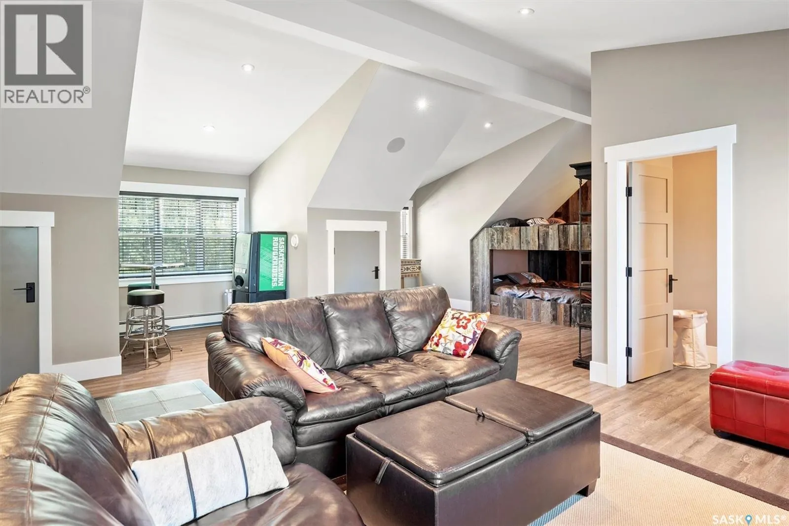 Welcome to 210 Okema Trail, a one-of-a-kind custom-built luxury resort property at Emma Lake, completed in 2015 and set on the exclusive third lake with only 32 homes along its pristine shoreline. Boasting 150 feet of private, sandy lakefront across two expansive lots, this 3,737 sq. ft. two-storey masterpiece is designed for entertaining and family gatherings, comfortably sleeping 17+ guests. The main residence features 4 bedrooms, a home study with a balcony and 4 bathrooms, highlighted by a grand foyer with a double-sided gas fireplace, soaring ceilings, and a family room with stunning panoramic lake views. The family room and dining are all open to the kitchen. The gourmet kitchen is a chef's dream, offering top-tier Miele appliances, Wolf 6-burner gas cooktop, dual dishwashers, steam/convection ovens, a wine fridge, and a walk-through butler's pantry. The luxurious master retreat includes a cozy fireplace, a spa-like ensuite with a soaker tub and steam shower, and a private staircase to a personal retreat with beautiful lake views. Additional features include a heated 1,275 sq. ft. attached garage with a bonus suite sleeping 6 with a large family room and games area as well as a 3 piece bathroom. A separate 400 sq. ft. guest house with living quarters, one bedroom and a bathroom all above the single heated garage. There is also another 3-car detached garage for recreational toys, incredible professionally landscaped yards, all with views of the lake, 800 sq. ft. of compost deck area with glass railings facing the lake as well as beautiful sand beach out front. The property also comes with its own dock. Enjoy this luxury home in every season. Amazing groomed snow mobile trails and ski trails in the winter. Golf, Pickle Ball, groceries and shopping amenities all within 10 minutes. The Prince Albert Airport is located 35 minutes away. This exceptional lakeside property redefines luxury and relaxationâschedule your private tour today! (id:27476)