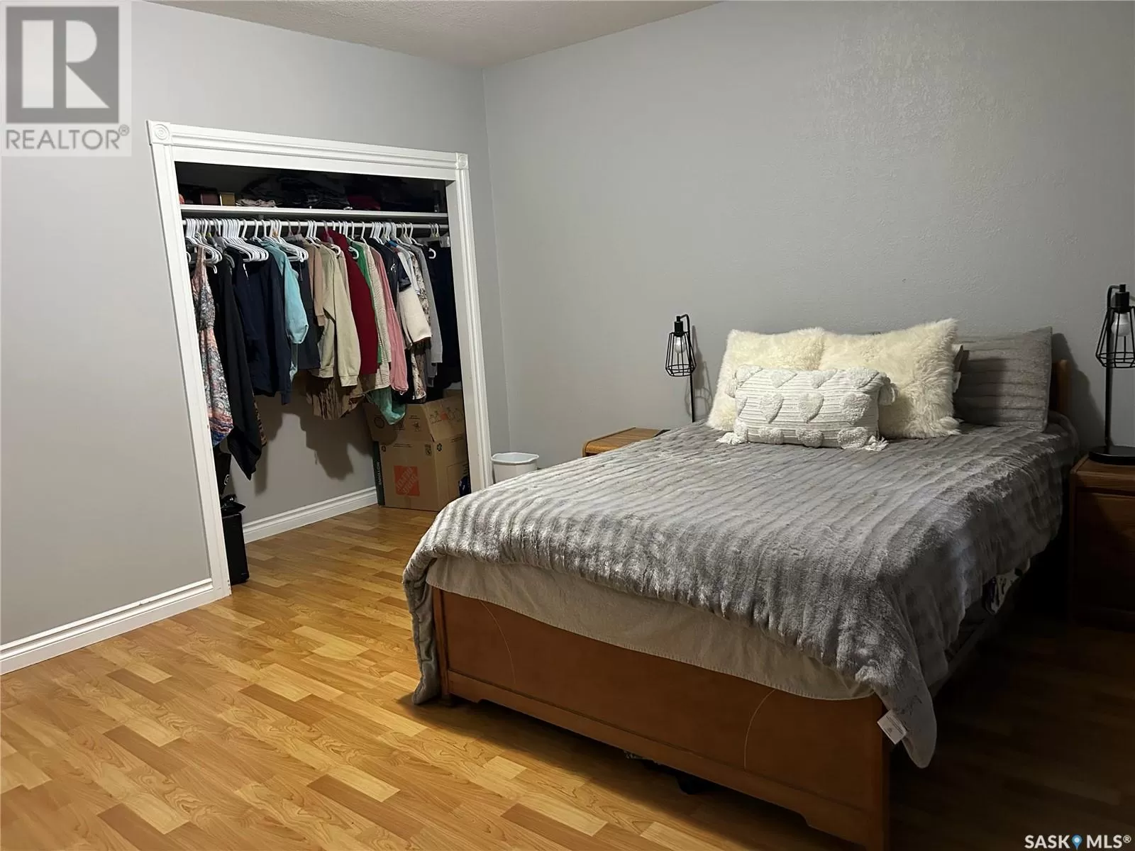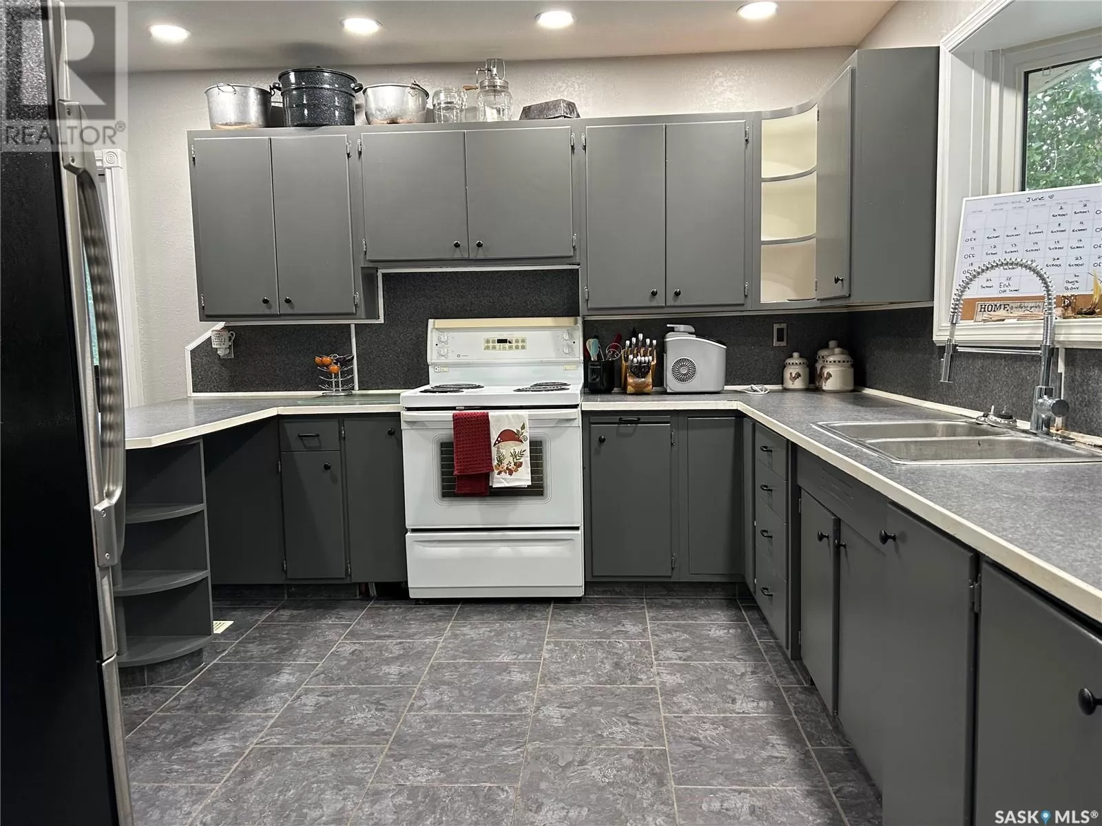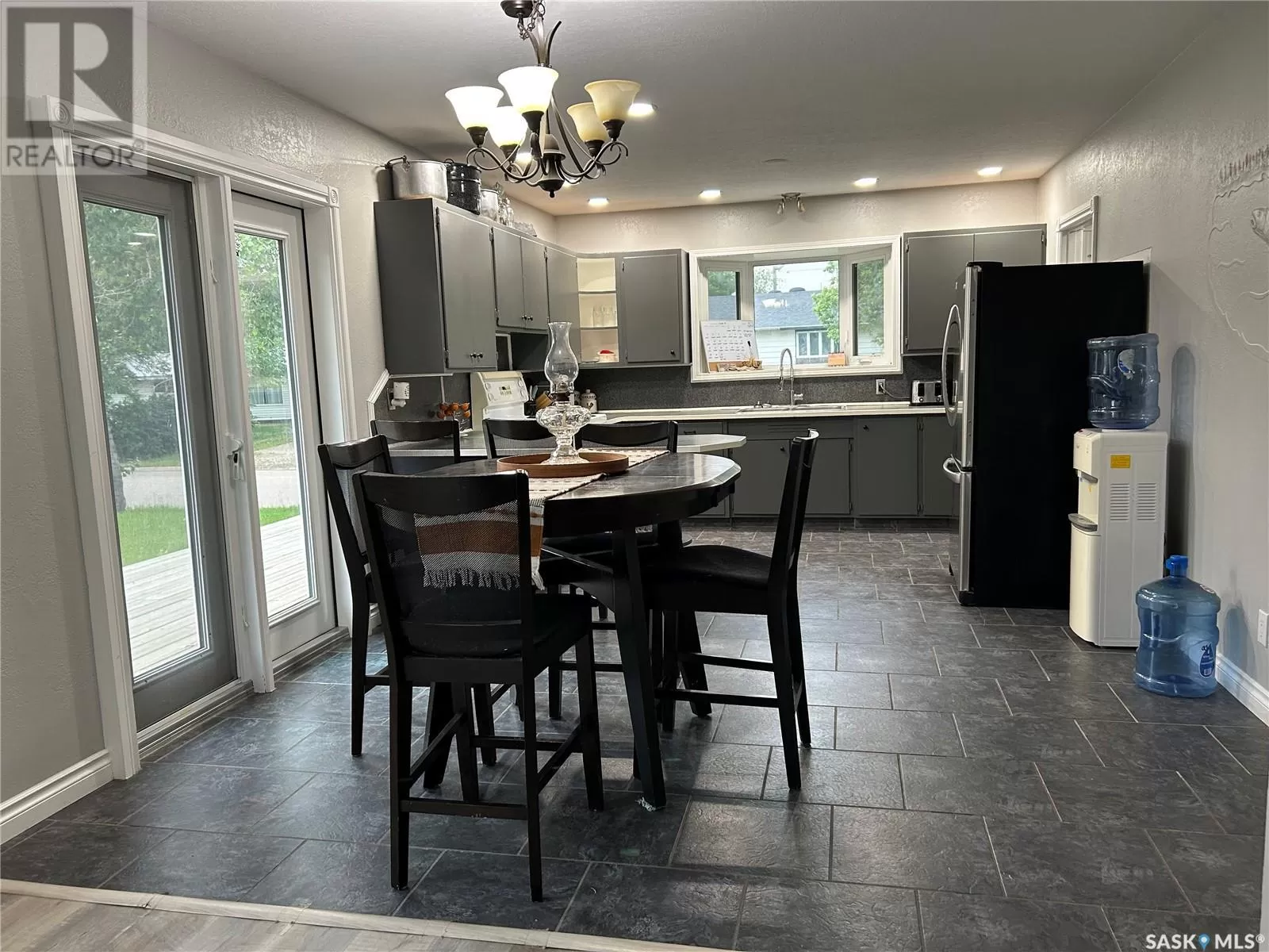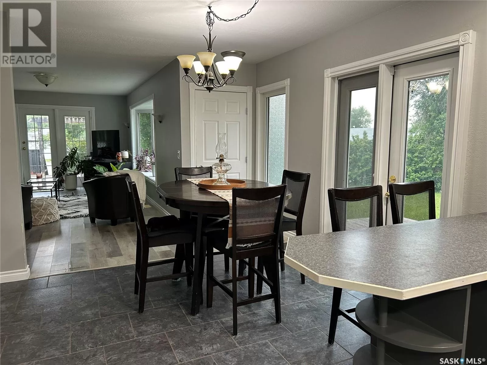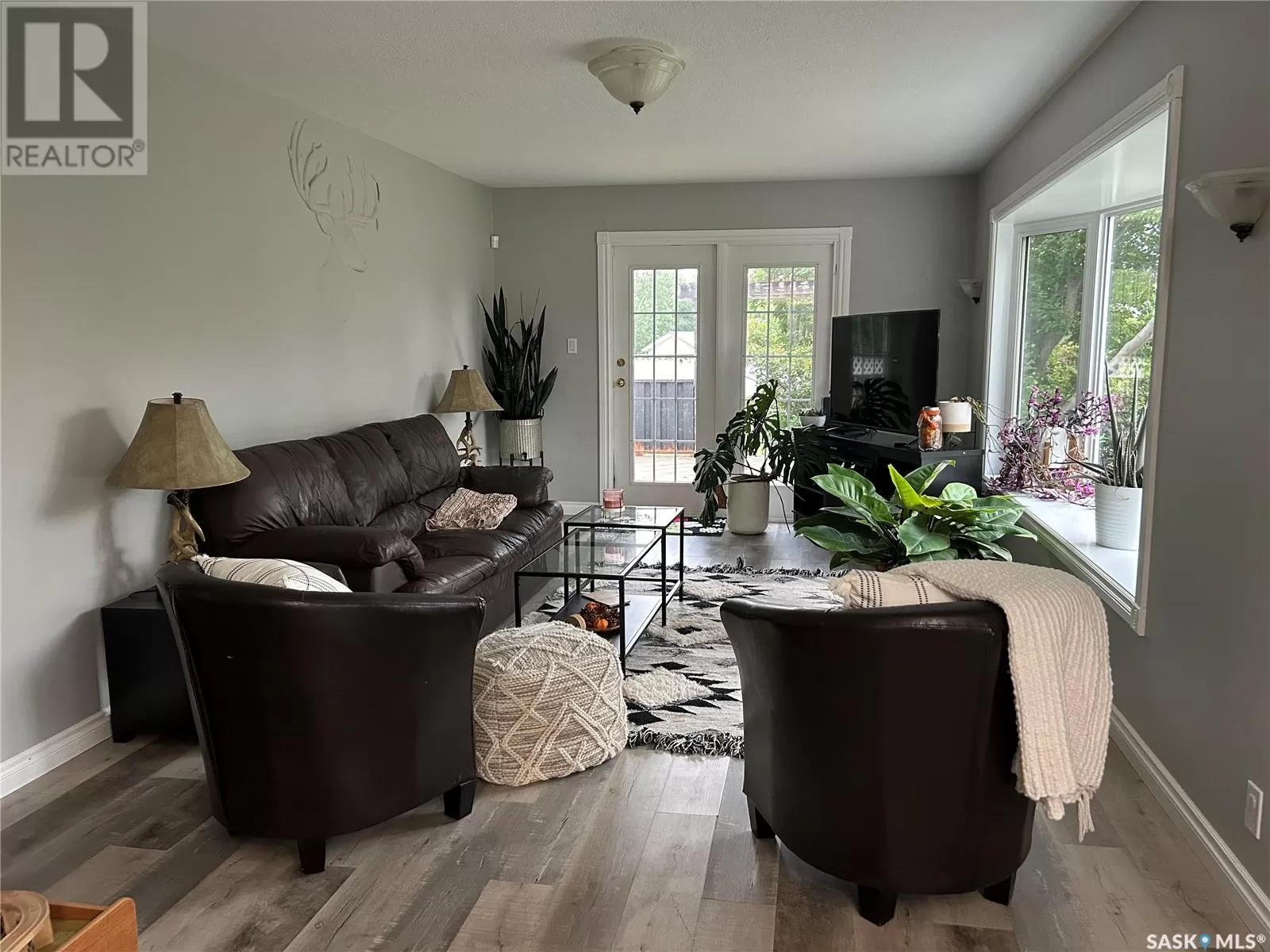 Spacious, Updated & Affordable! This 4-bedroom, 2-bathroom home is nestled on an oversized corner lot in community of Lampman and has seen numerous renovations over the past 10 years. The main floor offers a welcoming, oversized entryway and a bright, open-concept layout with a large kitchen with an eat up counter, separate dining area, and cozy living room. The dining area had patio doors which lead out to the south facing deck. Youâll find three bedrooms on this level, including the primary bedroom with garden doors leading to a private backyard east facing deck. Downstairs, the fully finished basement features a generous entry from the attached garage, family room, fourth bedroom, a den, laundry room, another full 4-piece bathroom, and a large cold storage room. Step outside to enjoy the expansive .23 acre yard with two decks, and ample parking in both the front and back. Updates include windows, paint, trim, interior doors, flooring, both bathrooms, and electrical upgradesâmaking this move-in ready home a must-see! (id:27476)
