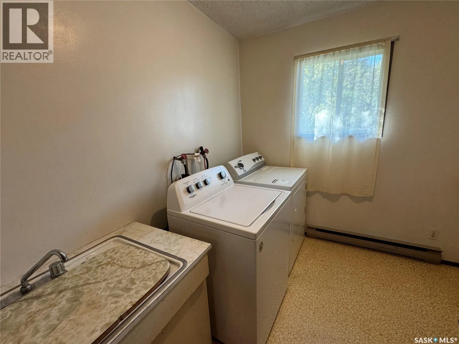 With a smart use of space that makes it feel even larger than it is, this home offers a warm and welcoming main floor featuring a cheerful kitchen, a dining area with a built-in china cabinet, and a spacious living room filled with natural light. The layout flows seamlessly, making it ideal for both everyday living and entertaining. Youâll also find a comfortable primary bedroom, a second bedroom, a 4-piece bathroom, and a convenient laundry/mud room â all on the main level. The full basement offers endless possibilities! Partially finished, itâs currently set up with a family room, an additional bedroom, a utility room, and a rough-in for a 3-piece bathroom. Thereâs plenty of room to expand â add extra bedrooms, a home gym, or a hobby space to suit your lifestyle. One of the homeâs standout features is its efficient heating system, allowing you to easily adjust the heat in each room for personalized comfort and consistent, dust-free warmth. Outdoors, youâll find front and back lawns, a garden shed, and space to build your dream garage with street or alley access. The yard is a gardenerâs delight, complete with mature trees, rhubarb, a crab apple tree, nanking cherry, and saskatoon berry bushes. This home is ideally located across the street from a park featuring a covered picnic area, fenced basketball court, and outdoor play equipment â perfect for families and outdoor fun. Landis is a welcoming community located just 37 km from Biggar and Wilkie, 84 km from the Battlefords, and 130 km from Saskatoon. Local amenities include school bus service to nearby schools (Wilkie and Biggar), a community hall, post office, garbage and recycling pickup, curling and skating rink, banking institution, insurance broker, bar and grill, and a card lock gas station. Catch the beautiful sunsets in small town living â book your viewing today! (id:27476)