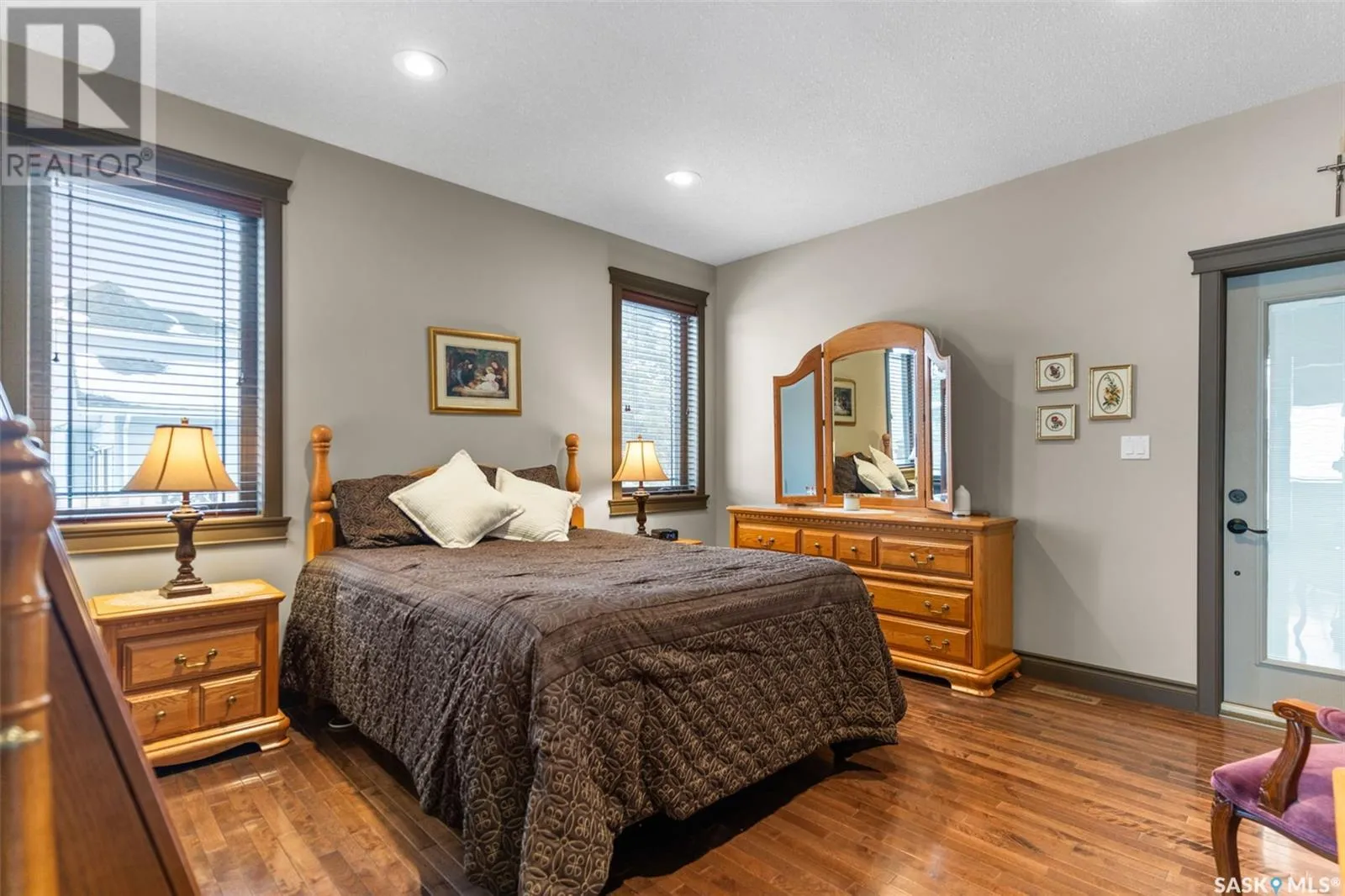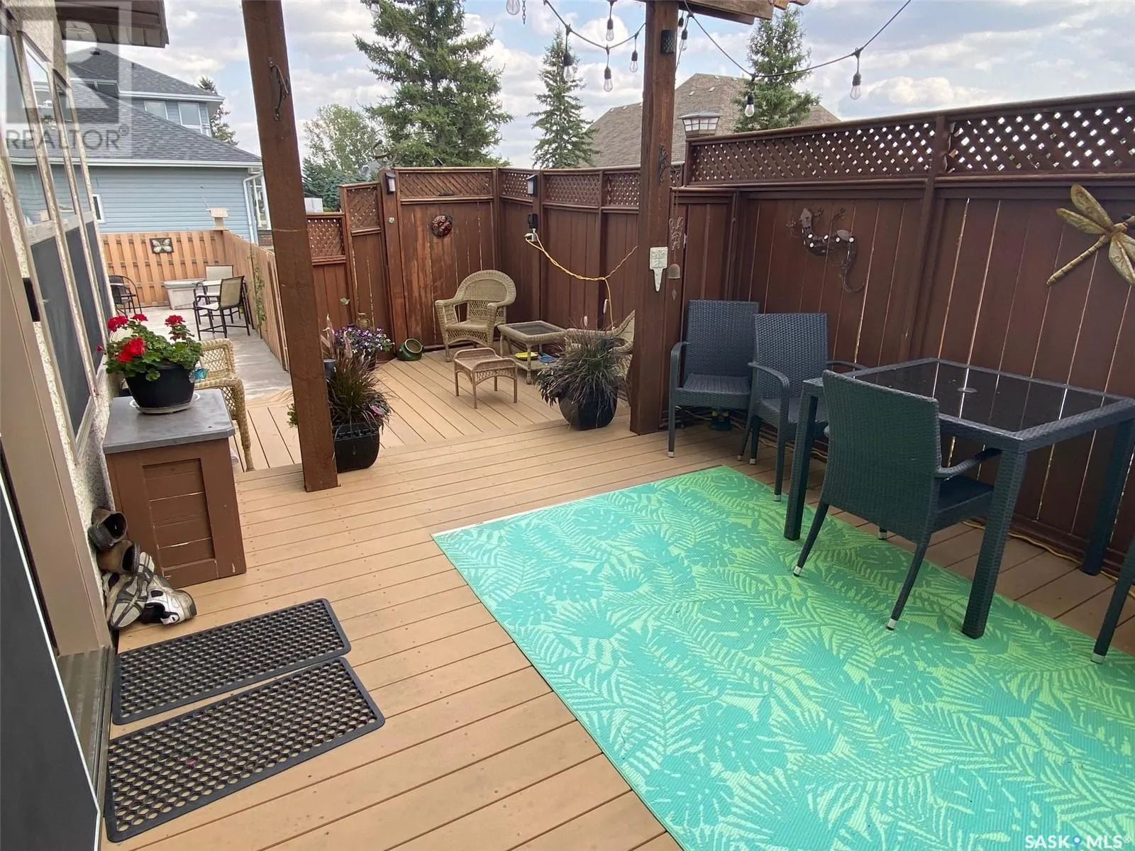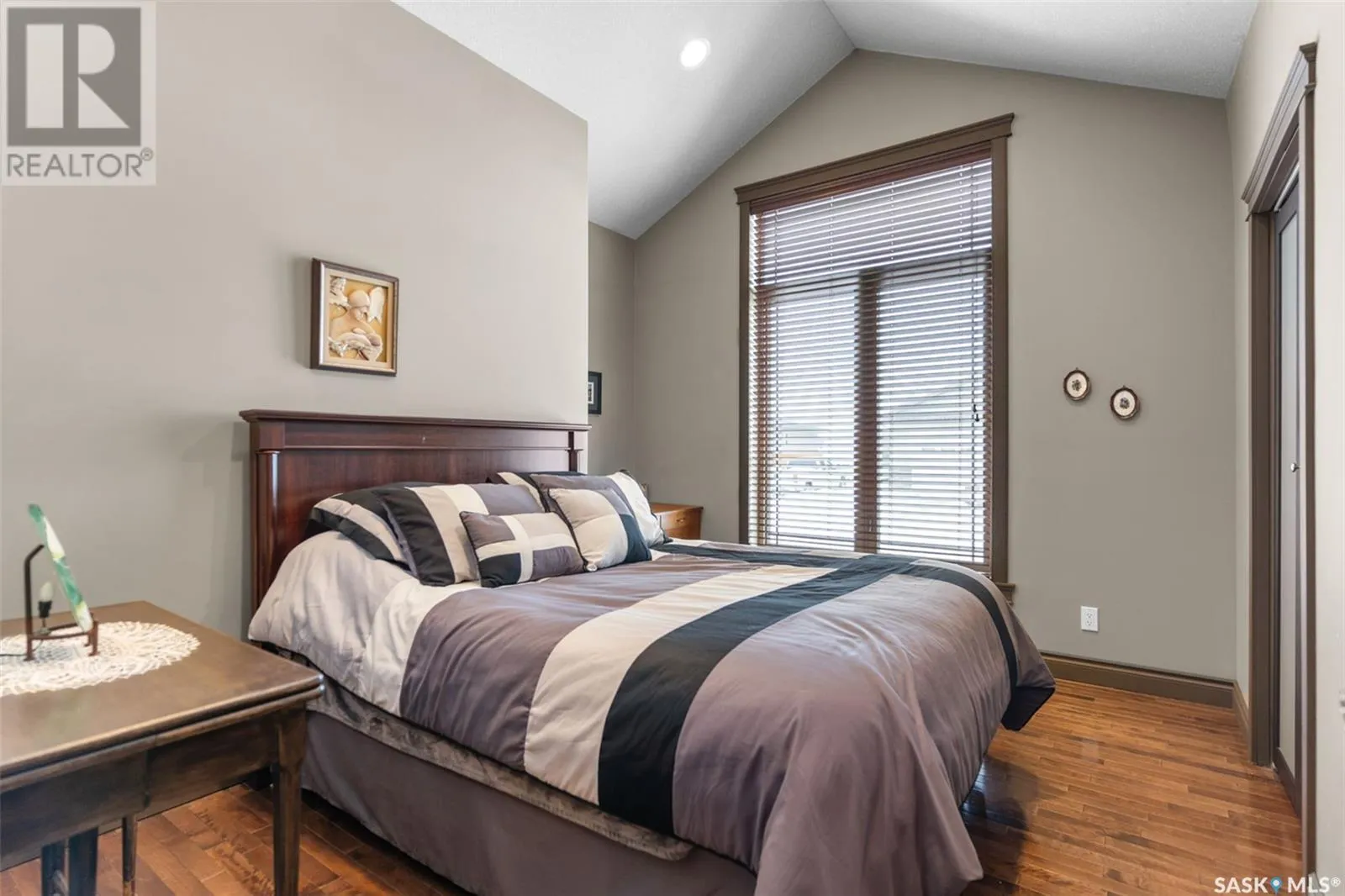 Step into this Sophisticated Luxury Home where quality craftsmanship and high-end finishes create an atmosphere of elegance! This spacious 4-bedroom, 4-bathroom residence welcomes you with a grand foyer and stylish French doors leading to the main living area. The heart of the home is the grand living area featuring soaring vaulted ceilings and a striking double-sided fireplace. The open-concept design seamlessly connects to a chefâs dream kitchen, outfitted with top-of-the-line Jenn-Air appliances, rich maple cabinetry, a large central island, and luxurious granite countertops and sink. The dining area is bright and inviting, accommodating a full-sized table with ease, along with well-placed skylights throughout. At the same time, a gorgeous sunroomâcomplete with a fireplace and backyard accessâadds a cozy retreat. The main floor hosts three bedrooms, including a luxurious primary suite with a spacious walk-in closet and a spa-like 5-piece ensuite featuring a jetted tub, separate shower, and elegant vanity. A second 3-piece bathroom on the main floor offers additional convenience, along with a laundry room that includes a 2-piece bath and tiled flooring. Upstairs, a versatile bonus room with hardwood floors and an electric fireplace offers endless possibilitiesâperfect for a relaxing lounge, home office, or games room with a picturesque view. The basement is partially finished, featuring a fourth bedroom, a 3-piece bathroom, and a utility room. A large heated crawl space with a concrete floor provides excellent storage. Outside, enjoy the beautifully landscaped side yard with a garden shed and a fenced-in area for added privacy. The backyard deck features a pergola and privacy fencing, making it the perfect place to unwind. A heated double attached garage with direct entry and additional parking completes the property. Located just 20 minutes from the BHP Mine and 30 minutes to the City of Humboldt. Call today! (id:27476)