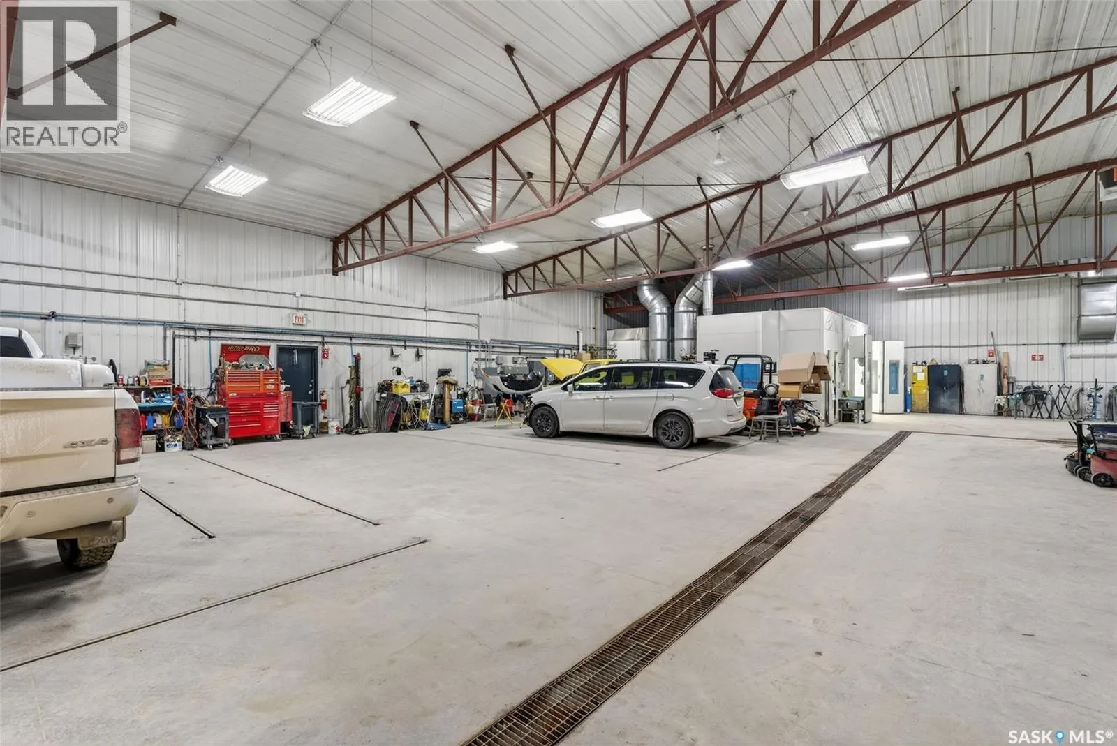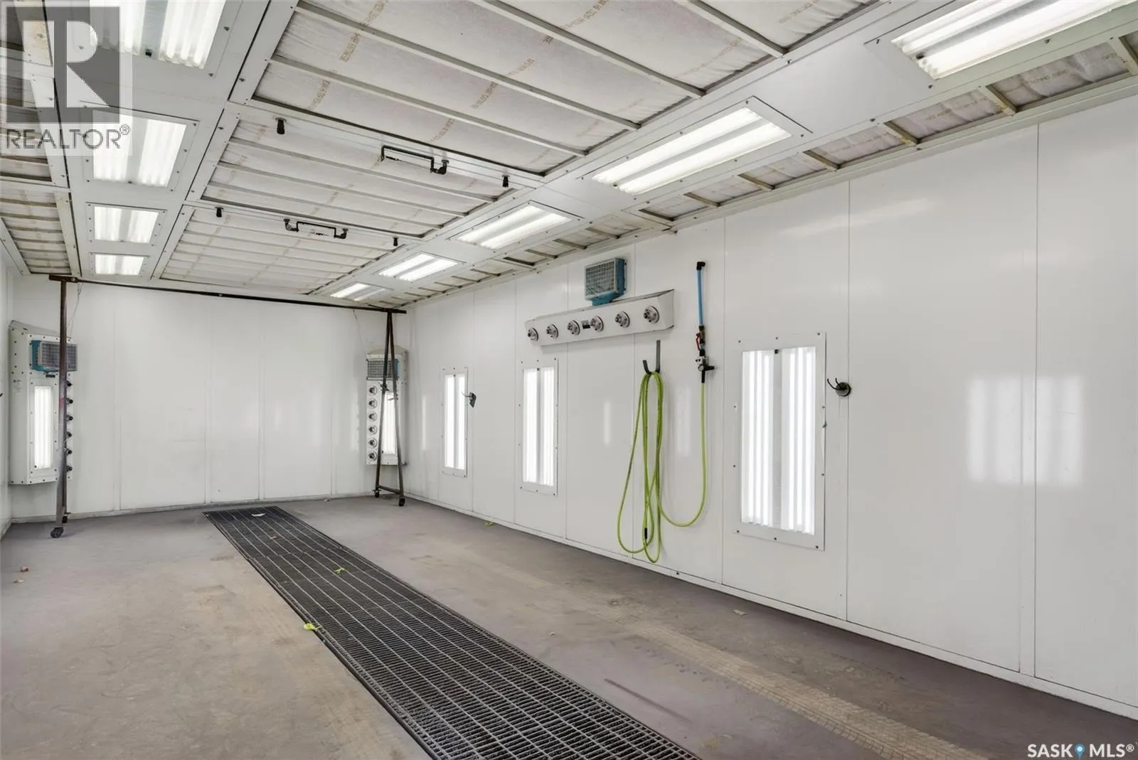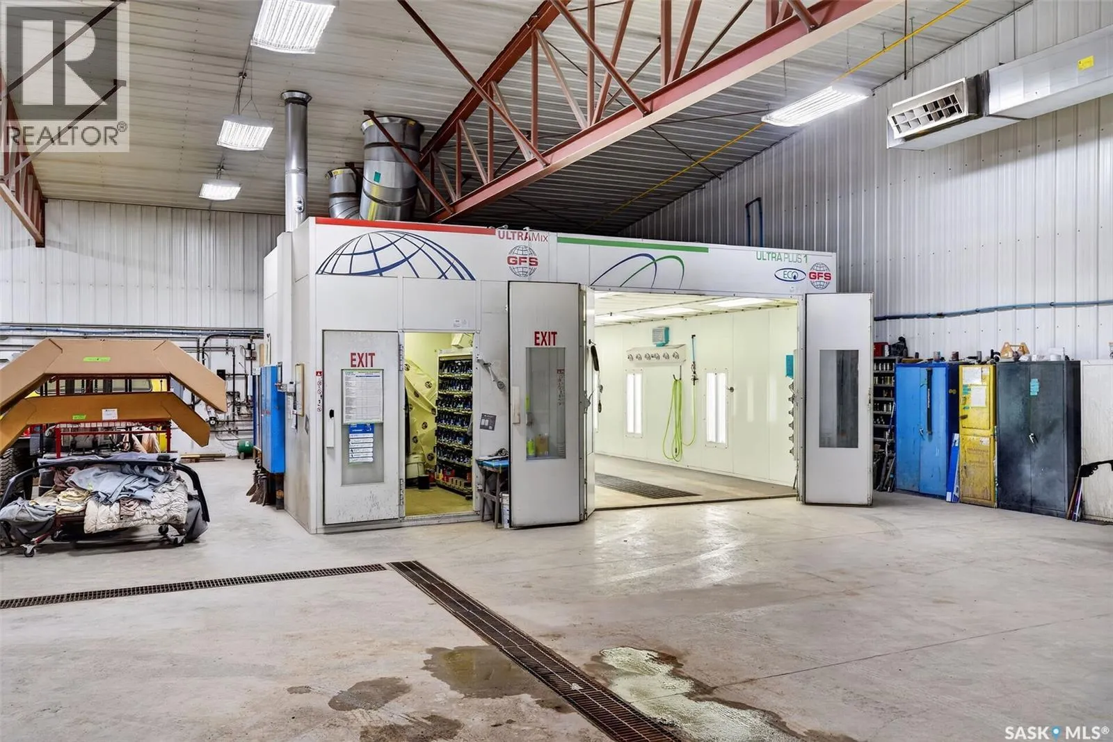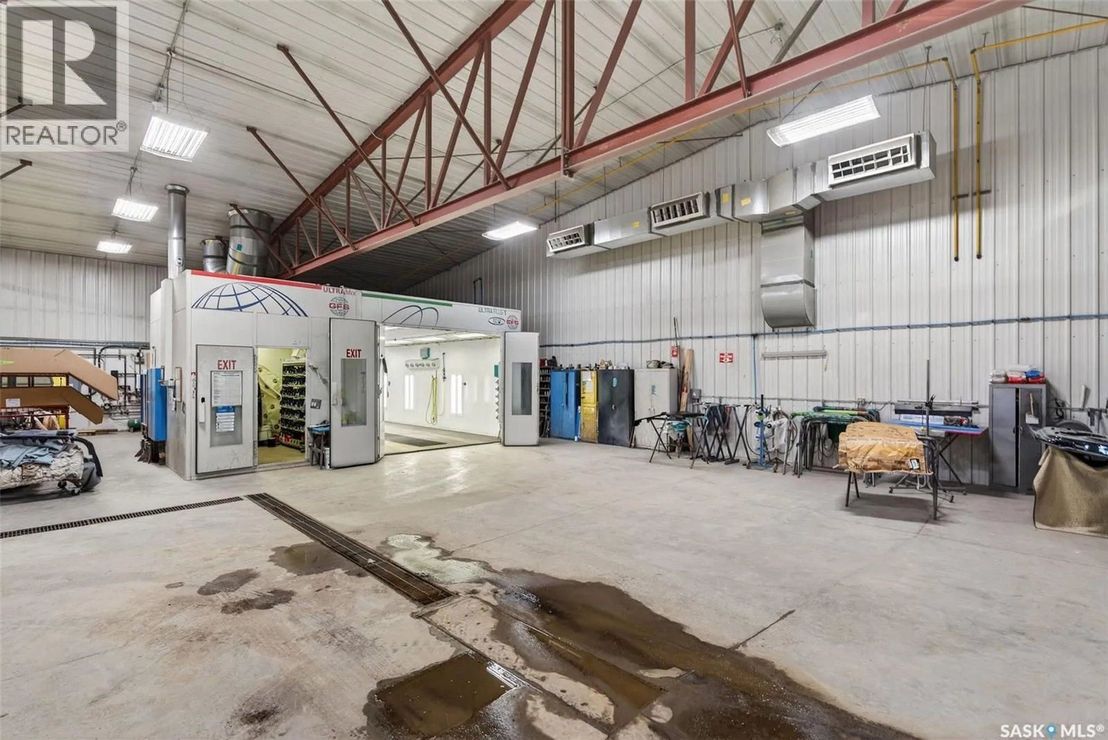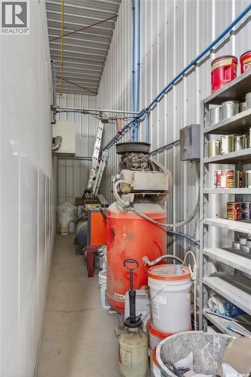âCheck out the Video and Photos of this Modern 7,000 Sq. Ft. Auto Body Facility (Built 2014) with Three-Phase Power & Paint Booth Included.â Turnkey opportunity to own a well-established and highly respected businessâ"Lanigan Auto Palace", a father-and-son operated auto body repair shop proudly serving the community for over 40 years. This modern, state-of-the-art facility was constructed in 2014 and offers approximately 7,000 sq. ft. (100â x 70â) of steel-frame construction designed for efficiency and long-term durability. The building features in-floor heat, three-phase power, two 12-ft overhead doors, plus an additional overhead receiving door for smooth workflow and vehicle movement. Inside, youâll find a professional reception area, multiple offices, and a dedicated staff/lunch room, providing a comfortable and functional workspace. The shop is fully equipped and includes a Global Finishing Solutions Ultra Plus Paint Booth, making this a true turnkey operation for continued success. A 20â x 60â mezzanine adds valuable storage space, while the wash bay connected to town sewer enhances daily operations and efficiency. The property sits on approximately 1 acre of land with 250 feet of frontage, offering excellent accessibility and room for expansion or additional uses. Additional outbuildings provide further storage, including the original shop building and a detached garage, giving flexibility for parts storage, overflow work, or rental potential. A Clean Phase 2 Environmental Report is available, offering peace of mind to buyers. Sellers are open to multiple options and would consider selling the building only, creating an excellent opportunity for investors or operators looking to establish or expand their automotive or light industrial business in the growing community of Lanigan. Call today for more information! (id:27476)