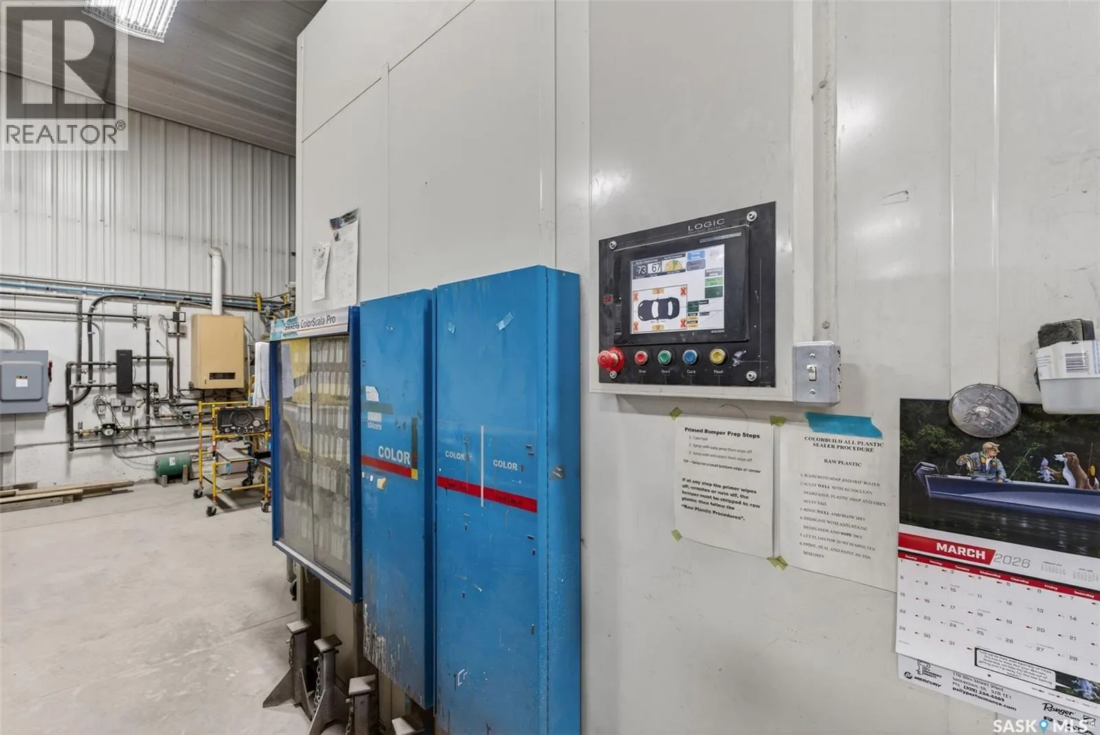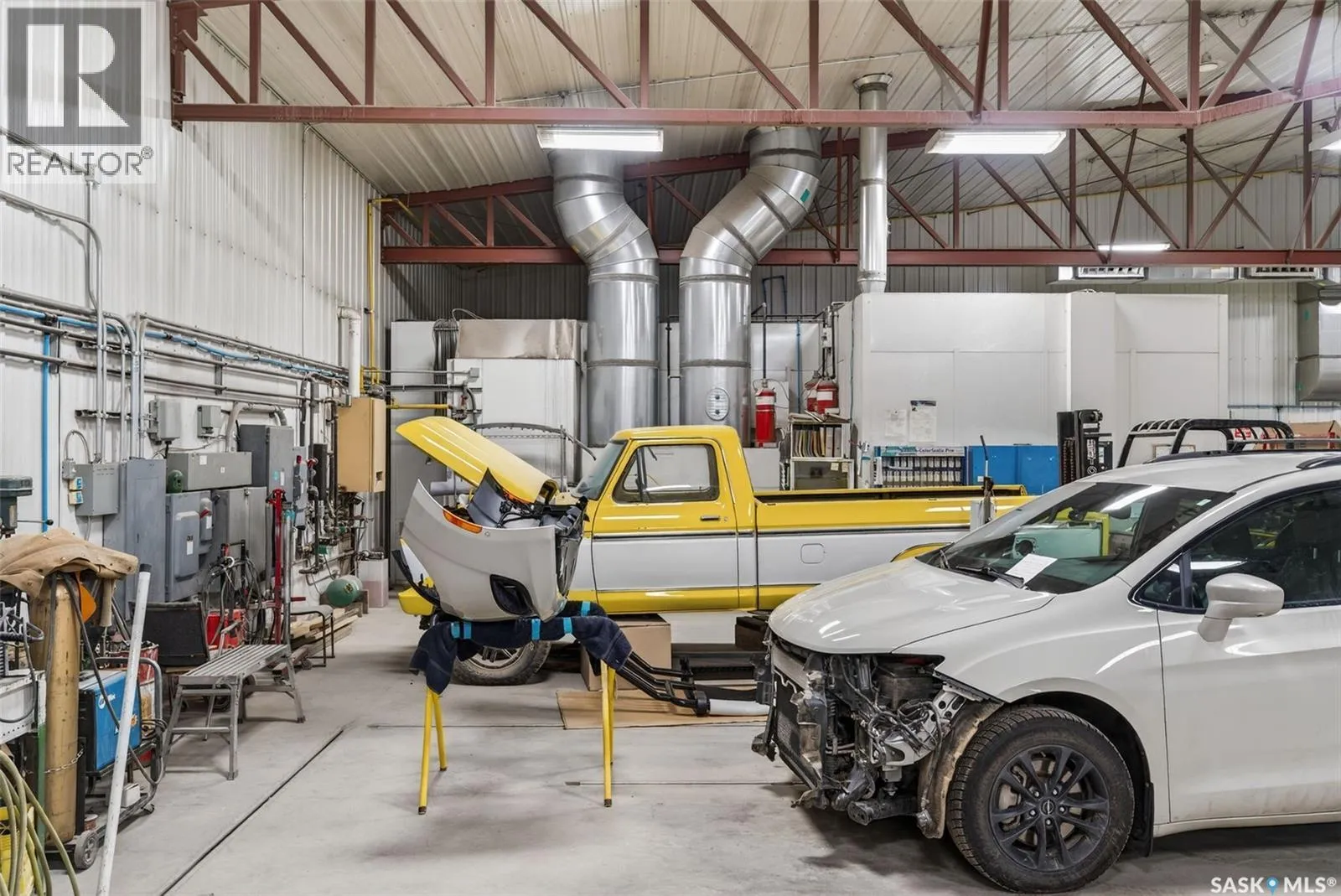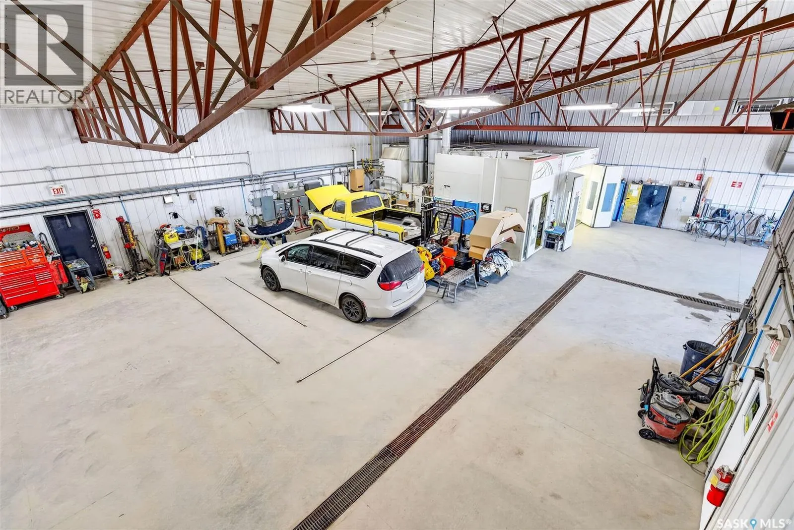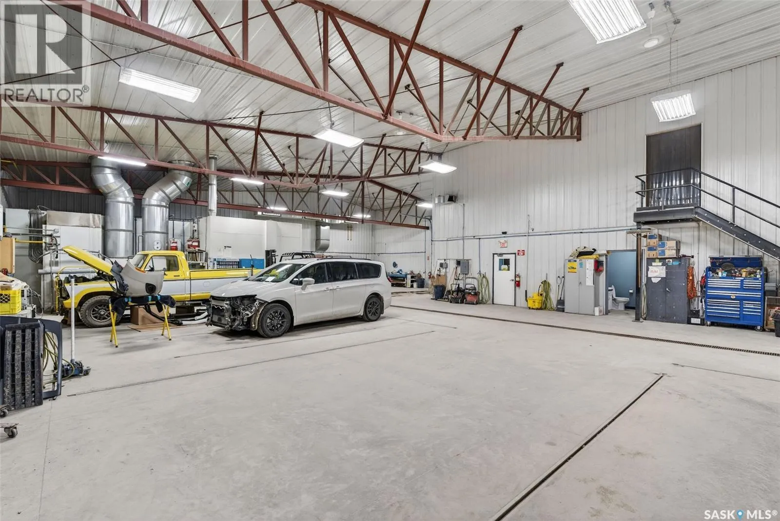 âCheck out the Video and Photos of this Modern 7,000 Sq. Ft. Auto Body Facility (Built 2014) with Three-Phase Power & Paint Booth Included.â Turnkey opportunity to own a well-established and highly respected businessâ"Lanigan Auto Palace", a father-and-son operated auto body repair shop proudly serving the community for over 40 years. This modern, state-of-the-art facility was constructed in 2014 and offers approximately 7,000 sq. ft. (100â x 70â) of steel-frame construction designed for efficiency and long-term durability. The building features in-floor heat, three-phase power, two 12-ft overhead doors, plus an additional overhead receiving door for smooth workflow and vehicle movement. Inside, youâll find a professional reception area, multiple offices, and a dedicated staff/lunch room, providing a comfortable and functional workspace. The shop is fully equipped and includes a Global Finishing Solutions Ultra Plus Paint Booth, making this a true turnkey operation for continued success. A 20â x 60â mezzanine adds valuable storage space, while the wash bay connected to town sewer enhances daily operations and efficiency. The property sits on approximately 1 acre of land with 250 feet of frontage, offering excellent accessibility and room for expansion or additional uses. Additional outbuildings provide further storage, including the original shop building and a detached garage, giving flexibility for parts storage, overflow work, or rental potential. A Clean Phase 2 Environmental Report is available, offering peace of mind to buyers. Sellers are open to multiple options and would consider selling the building only, creating an excellent opportunity for investors or operators looking to establish or expand their automotive or light industrial business in the growing community of Lanigan. Call today for more information! (id:27476)