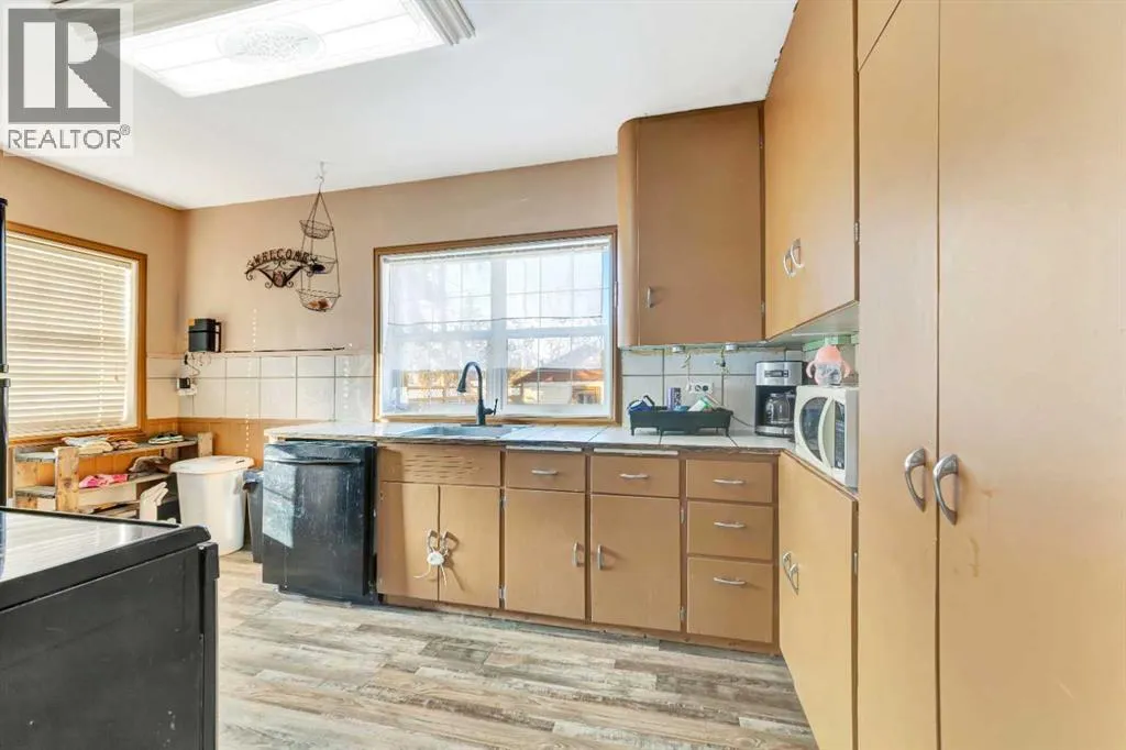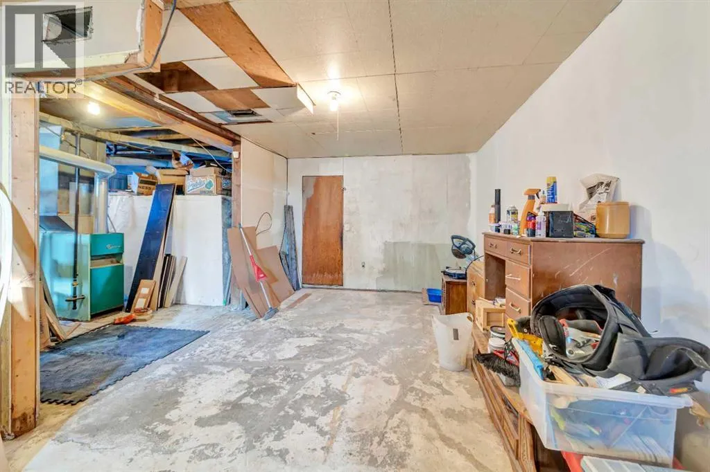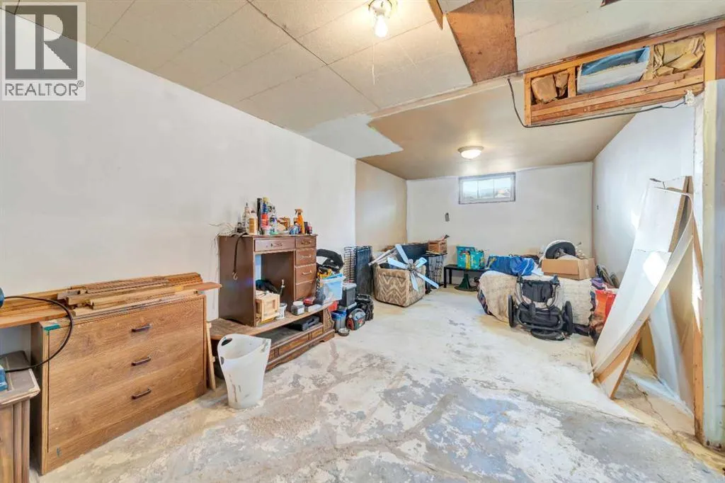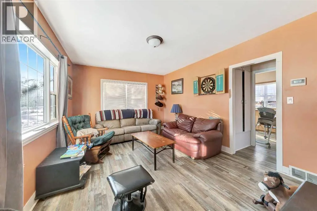 Great opportunity for first-time buyers or investors! This corner-lot property is ideally located just a short walk from the golf course, school and main street. The fully fenced yard is perfect for kids and pets, and the 19' x 14' detached garage provides great storage for vehicles, tools, or recreational toys.Inside, the home features a functional layout with two well-sized bedrooms on the main floor, an updated bathroom, a spacious living room, and updated flooring throughout. The basement offers excellent potential for future development, with space for an additional bedroom and family room, plus existing laundry and a cold storage area. This affordable, well-located home offers plenty of potential! (id:27476)