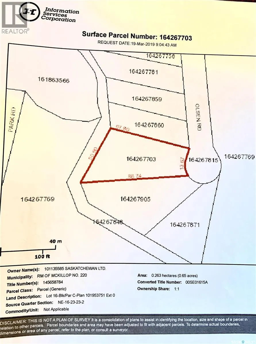 Irregular Lot With A Lake And Closed Bay View. Absolutely Beautiful Views From This Lot. Wow! $94,900.00. This stunning 0.65-acre pie-shaped virgin prairie lot, boasting a wide west-facing side overlooking the serene pond and picturesque Last Mountain Lake, is ready foryoy to develope at Sunset Resort. This unique, irregularly-shaped lot offers awe-inspiring views, ideal for a cottage or home with a walkout basement design. Located at Sunset Resort, 3 miles south of Rowanâs Ravine Provincial Park, with power and gas services conveniently accessible on the street side at 132 Olsen Road. A camper trailer is permissible with the installation of a septic tank. Power and gas services are readily available at the front of the property. Please consult McKillop RM for property Bylaws. A hard copy of the topographical survey is available for an additional fee. Architectural design services can be provided at a cost. Sunset Resort is situated on the east side of Last Mountain Lake, approximately 1 hour from Regina via pavement and 2 hours from Saskatoon. 2025 Taxes are $729.00. (id:27476)