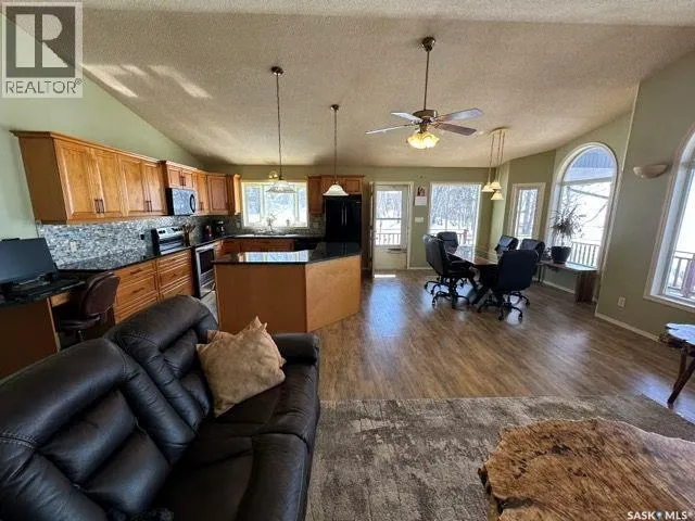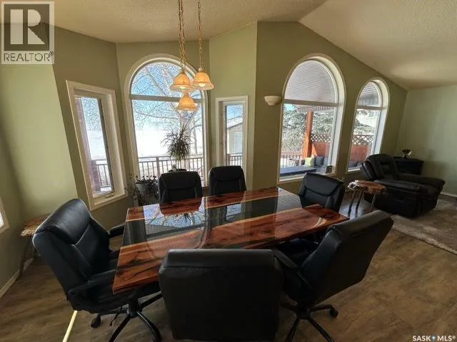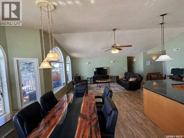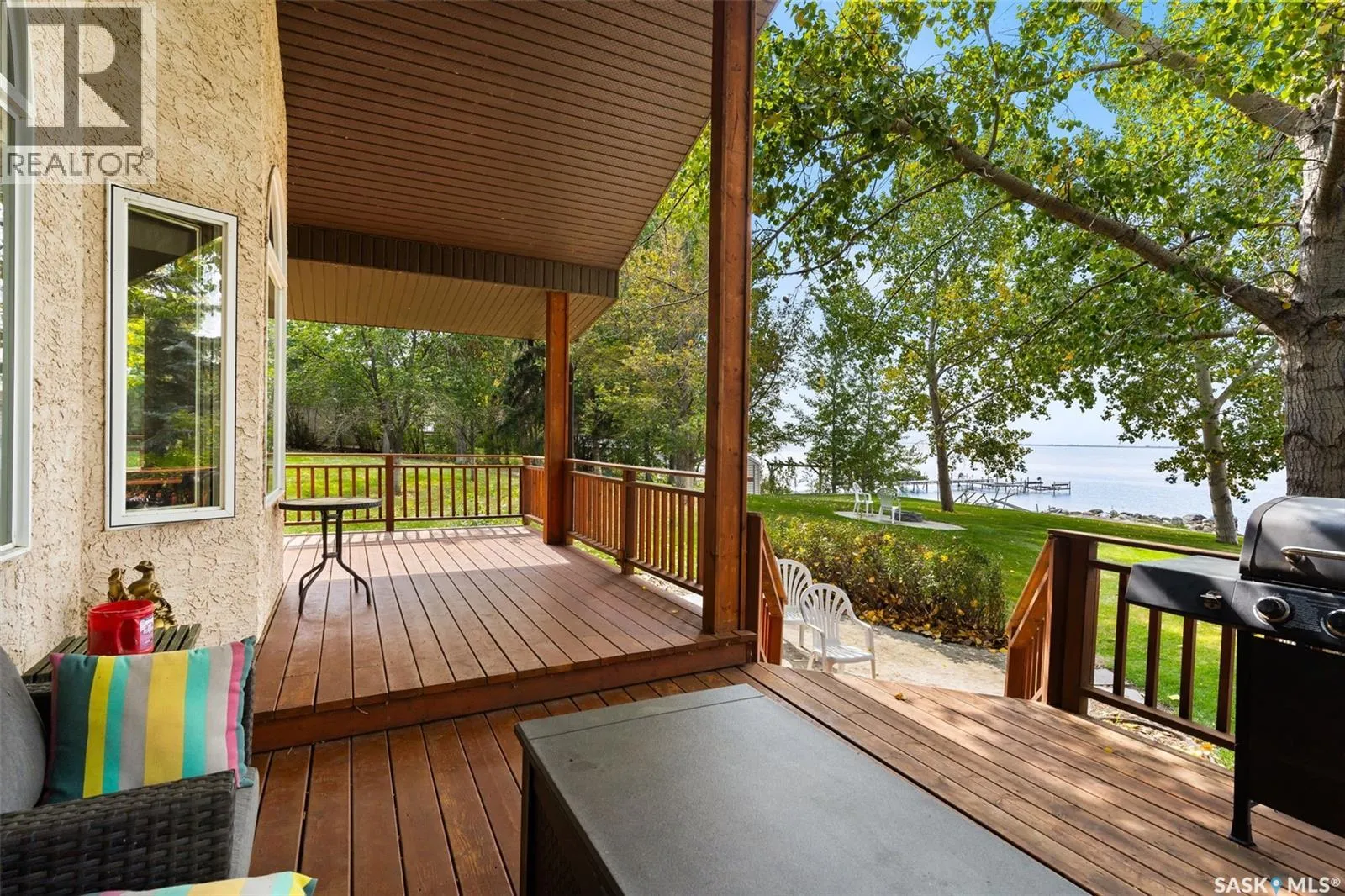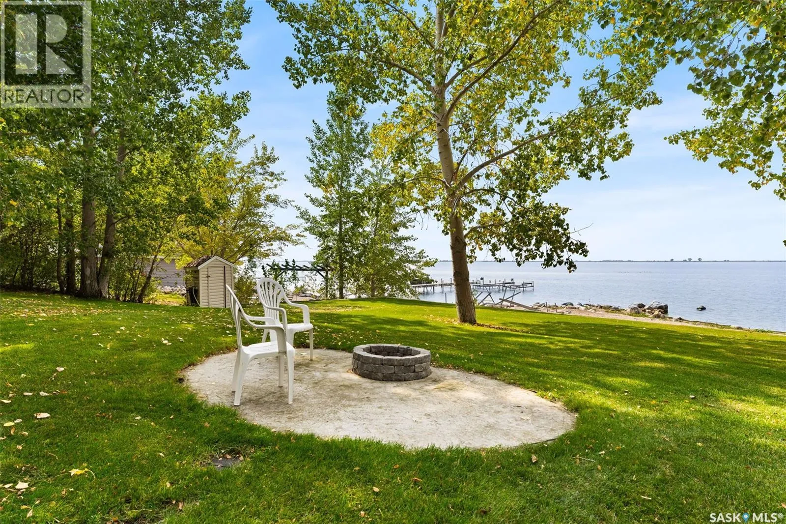 Collingwood Estates Check out this Fabulous AAA waterfront property (144' of sandy beach) with oversize double car garage and an additional boathouse garage at Collingwood Lakeshore Estates just 1 hour North of Regina on Last Mountain lake. There is an ADDITIONAL titled lot across the street for future building or additional parking and storage that is included in the sale. This beautiful fully landscaped yard is so private with mature trees, underground sprinklers and numerous patios totalling just over a 1 acre land. Walking up to this 4 season home you automatically see has so much the property has to offer with a beautiful covered private deck just off the front entry which is absolutely perfect for those morning coffees. The smart design of the house gives you breathtaking west views of the lake. Stepping into the foyer you immediately see the modern entertainers kitchen which overlooks the livingroom and dining room with 14' vaulted ceiling with feature natural gas fireplace all overlooking west views of the lake the lake with oversize windows. The fabulous kitchen with granite countertops has a large breakfast island and comes complete with stove, fridge, built in dishwasher and microwave hood fan. The dining area is conveniently set off to the front and side of the great room with direct exit to another covered deck. The large primary bedroom has a convenient 3 piece ensuite. There are 2 additional bedrooms, 4 piece bath and a laundry /storage room that completes the home. The detached drive thru boat house garage is perfect for all of your toys. The detached double car main garage is also heated. This home is an absolute gem and is such a pleasure to show. For a virtual walkthru please click on link or view https://unbranded.youriguide.com/194_gordon_drive_collingwood_sk/ (id:27476)