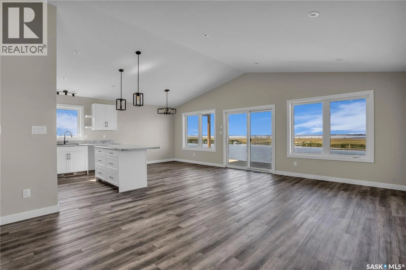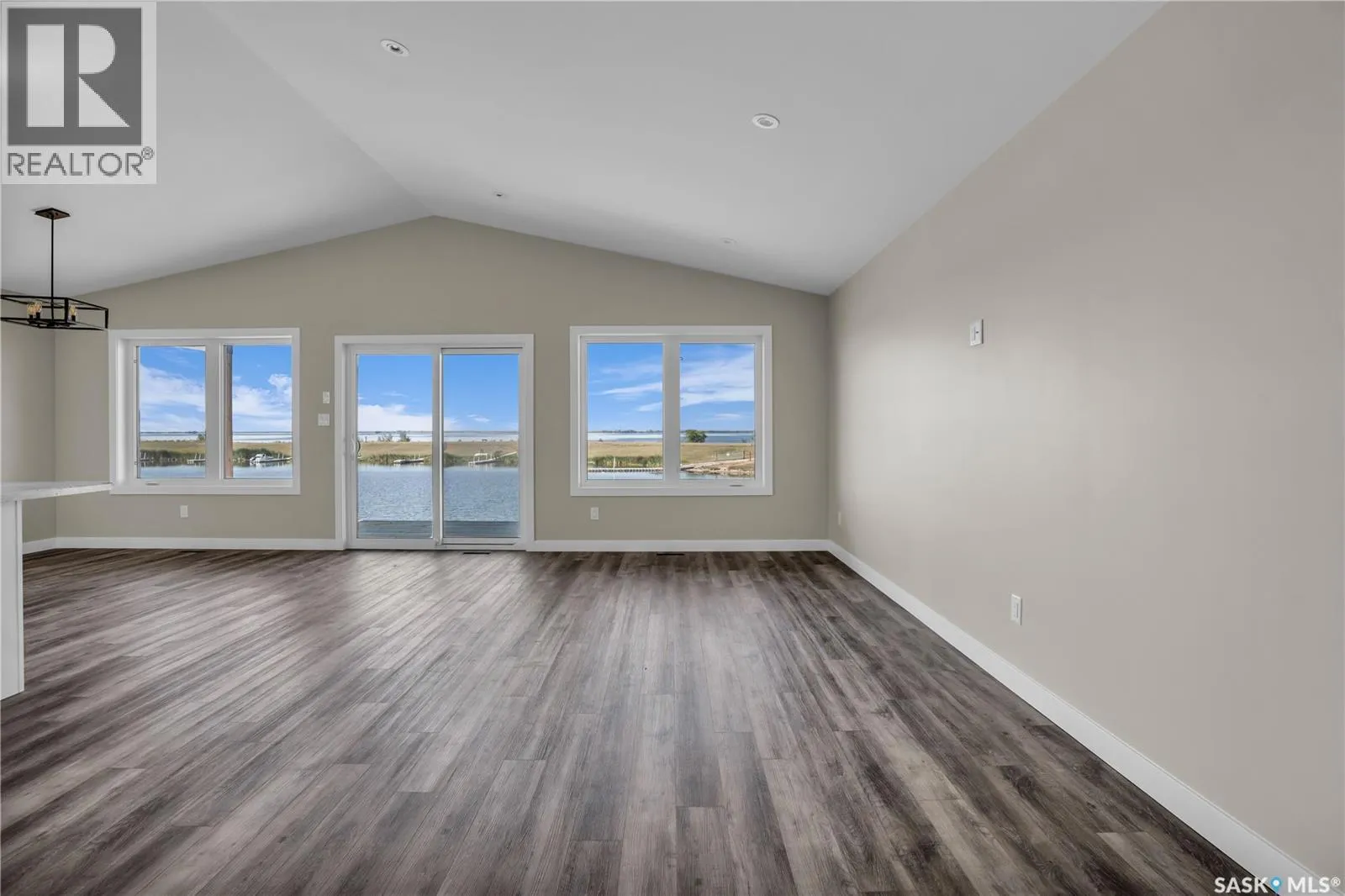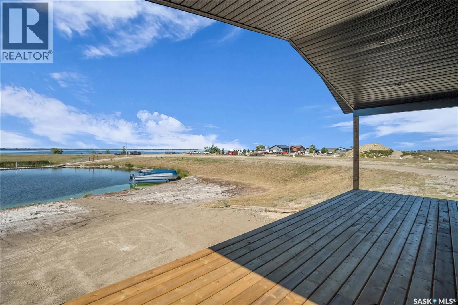 Offered at $528,800 this four-season Marina Lot bungalow is now ready for possession. You still have time to enjoy some summer at the lake this year! The price is plus GST and PST. It is possible the house will qualify for both a GST and PST reduction. Located at Sunset Acres Resort on the east shore of Last Mountain Lake, this development features a marina, 120â concrete boat launch, a tree planting program, and a large beach area. The 1092 sq. ft. main floor features 2 bedrooms, 1 bathroom, and a huge open living space. The kitchen provides plenty of storage space. The waterfront side of the home features an impressive covered deck for a deck off of the main living space. Large windows provide sweeping views of the marina and lake beyond. This home will sit on a full concrete walk-out basement, with rough-in plumbing and ready for your personal development touch. There is plenty of space for additional bedrooms, a games room, office space, movie room, or whatever your lifestyle requires. A hi-efficient forced air natural gas furnace and water heater complete this level. With a large lot, 75â x 269â in size, there is plenty of room for a future garage. https://sunsetacres.com/ Contact your REALTOR® today for more information. (id:27476)