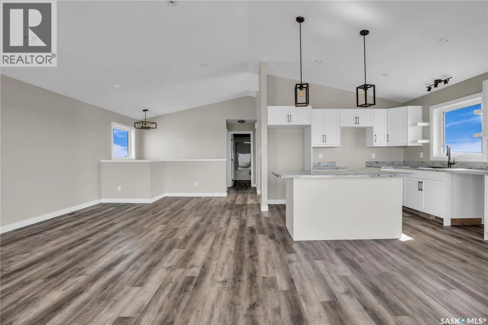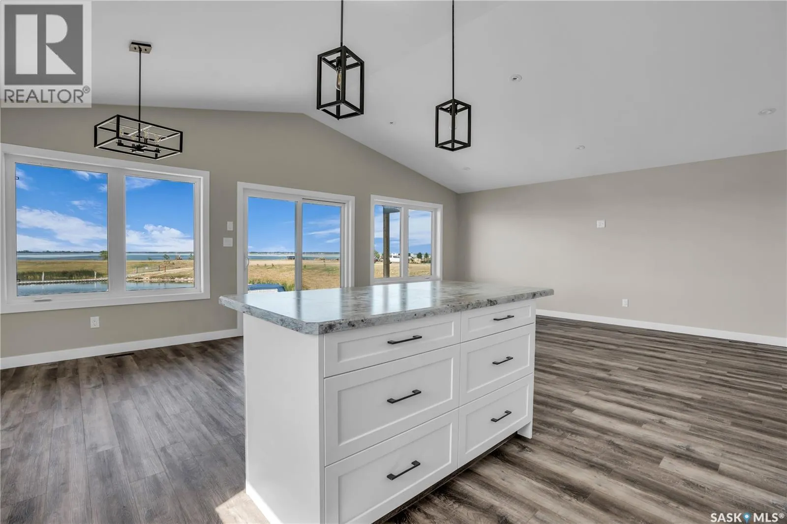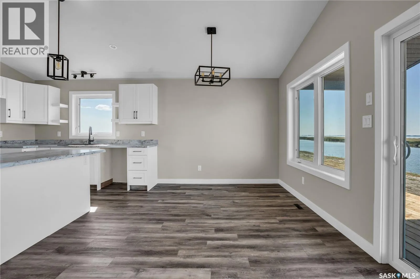 Offered at $528,800 this four-season Marina Lot bungalow is now ready for possession. You still have time to enjoy some summer at the lake this year! The price is plus GST and PST. It is possible the house will qualify for both a GST and PST reduction. Located at Sunset Acres Resort on the east shore of Last Mountain Lake, this development features a marina, 120â concrete boat launch, a tree planting program, and a large beach area. The 1092 sq. ft. main floor features 2 bedrooms, 1 bathroom, and a huge open living space. The kitchen provides plenty of storage space. The waterfront side of the home features an impressive covered deck for a deck off of the main living space. Large windows provide sweeping views of the marina and lake beyond. This home will sit on a full concrete walk-out basement, with rough-in plumbing and ready for your personal development touch. There is plenty of space for additional bedrooms, a games room, office space, movie room, or whatever your lifestyle requires. A hi-efficient forced air natural gas furnace and water heater complete this level. With a large lot, 75â x 269â in size, there is plenty of room for a future garage. https://sunsetacres.com/ Contact your REALTOR® today for more information. (id:27476)
