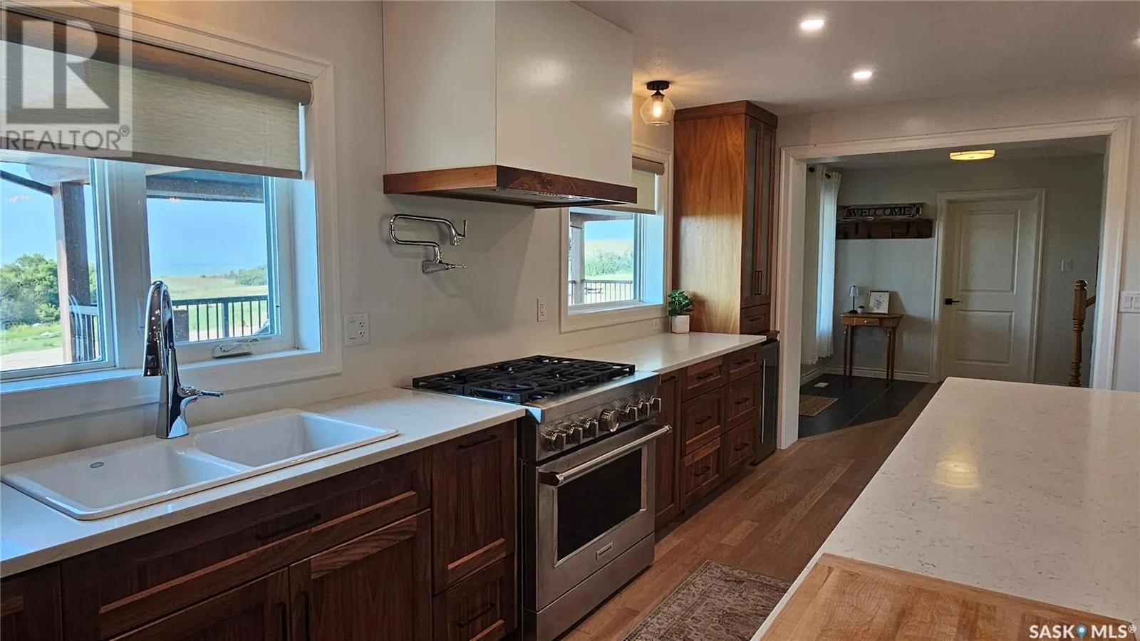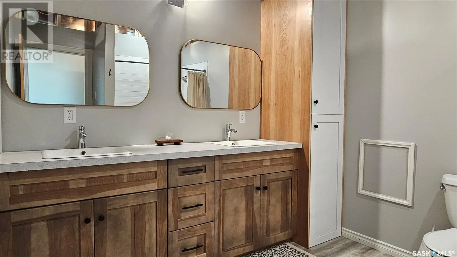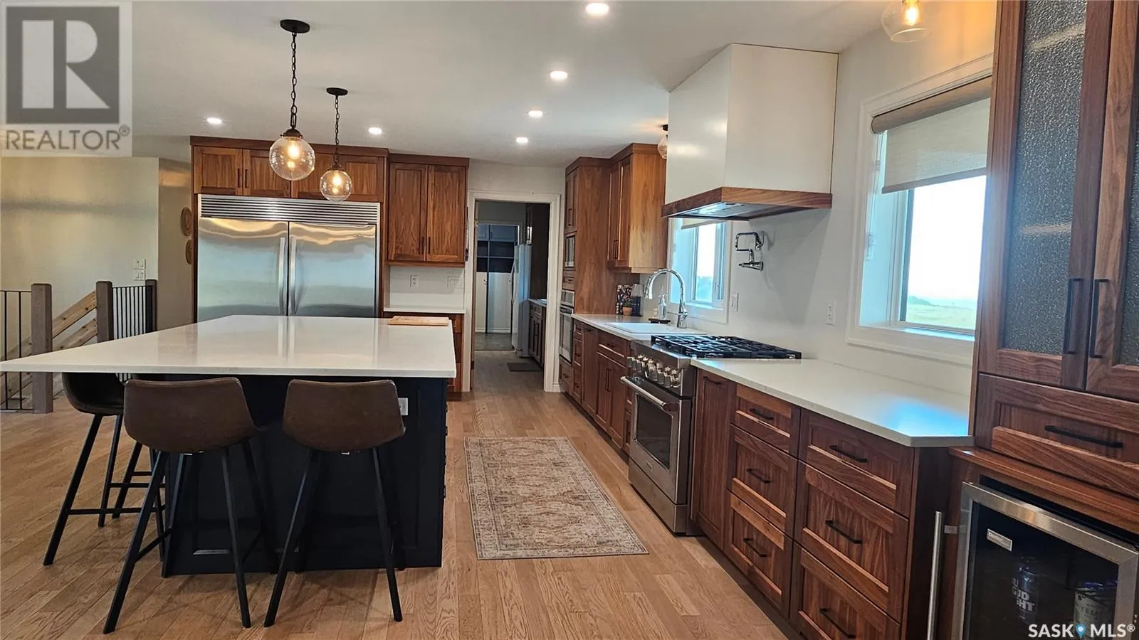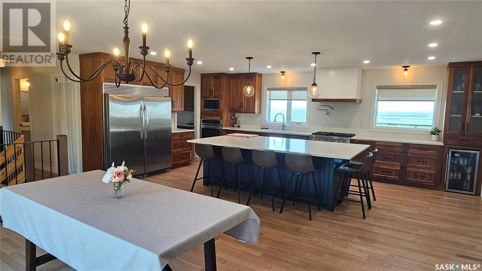Welcome to Edwards Acreage, a remarkable 160-acre property located just east of Duval, SK. This fully updated two-storey home offers 2,216 sq ft of thoughtfully designed living space, featuring 5 spacious bedrooms and 4 modern bathrooms. The heart of the home is a chefâs dream kitchen, complete with a large island perfect for entertaining, and a beautifully appointed butlerâs pantry that includes a second sink, freezer, and space for a second dishwasher. The cozy living room is anchored by a wood-burning fireplace, creating a warm and inviting atmosphere. Upstairs, the expansive primary suite offers a private retreat with an en-suite and a generous walk-in closet. Comfort meets functionality with heated floors in both the basement and the 40' x 80' heated shop, ideal for year-round use. A 24' x 24' heated storage building adds even more versatility. The property includes a reliable well, separate septic systems for the house and shop, and a dugout water system that keeps the grass and trees thriving. Portions of the land are currently rented for agriculture, offering excellent income potential, and gravel deposits on-site add further value. Located just 8 minutes from Strasbourg, 15 minutes from Last Mountain Lake, 25 minutes from Rowanâs Ravine Provincial Park, and under an hour to Regina, this property offers the perfect balance of peaceful rural living and convenient access to amenities and recreation. With so much more to see, Edwards Acreage must be experienced in person to be fully appreciated. Whether you're seeking a private family retreat, a working acreage, or a smart investment, this property delivers space, comfort, and opportunity in one exceptional package. (id:27476)