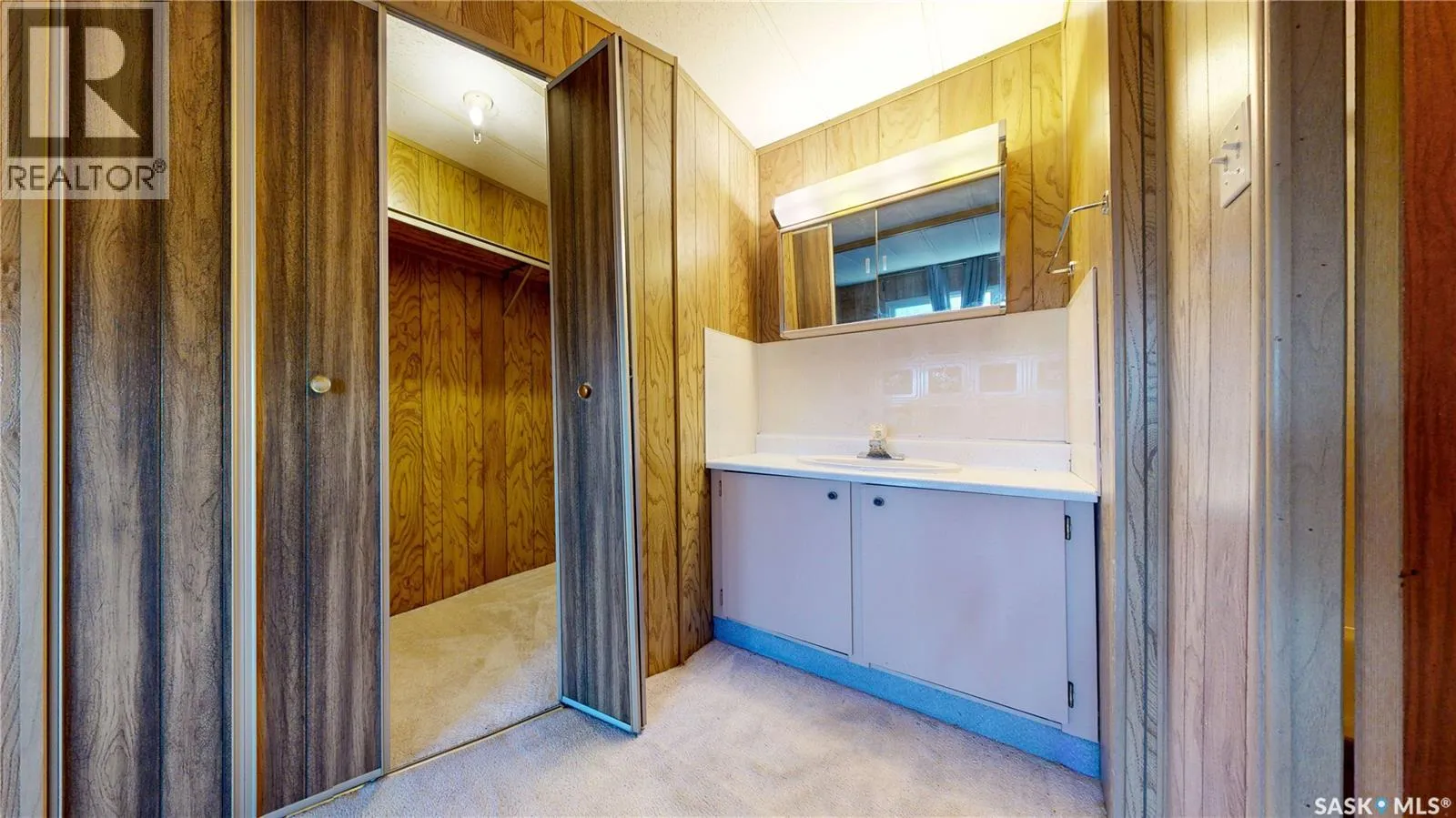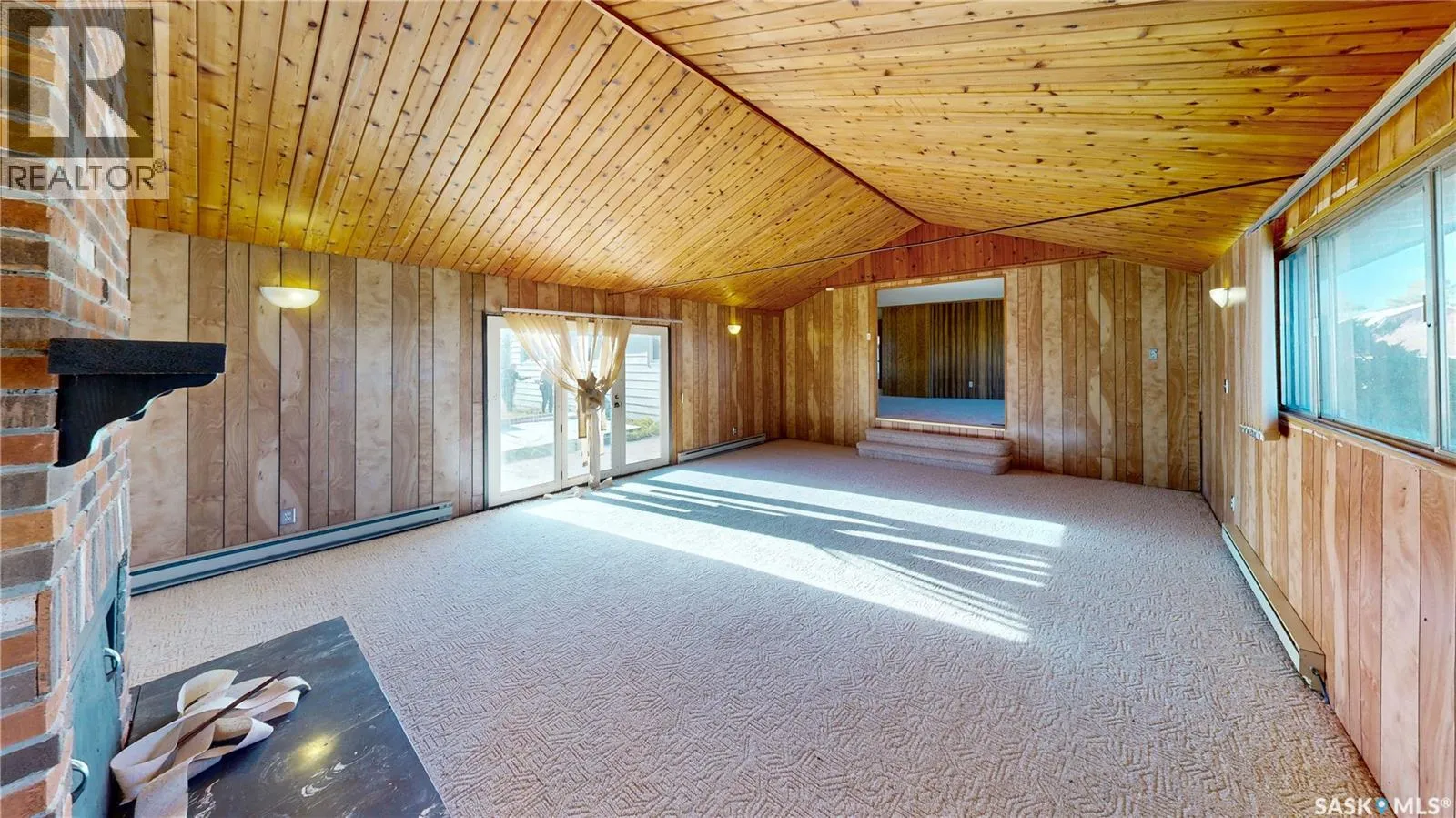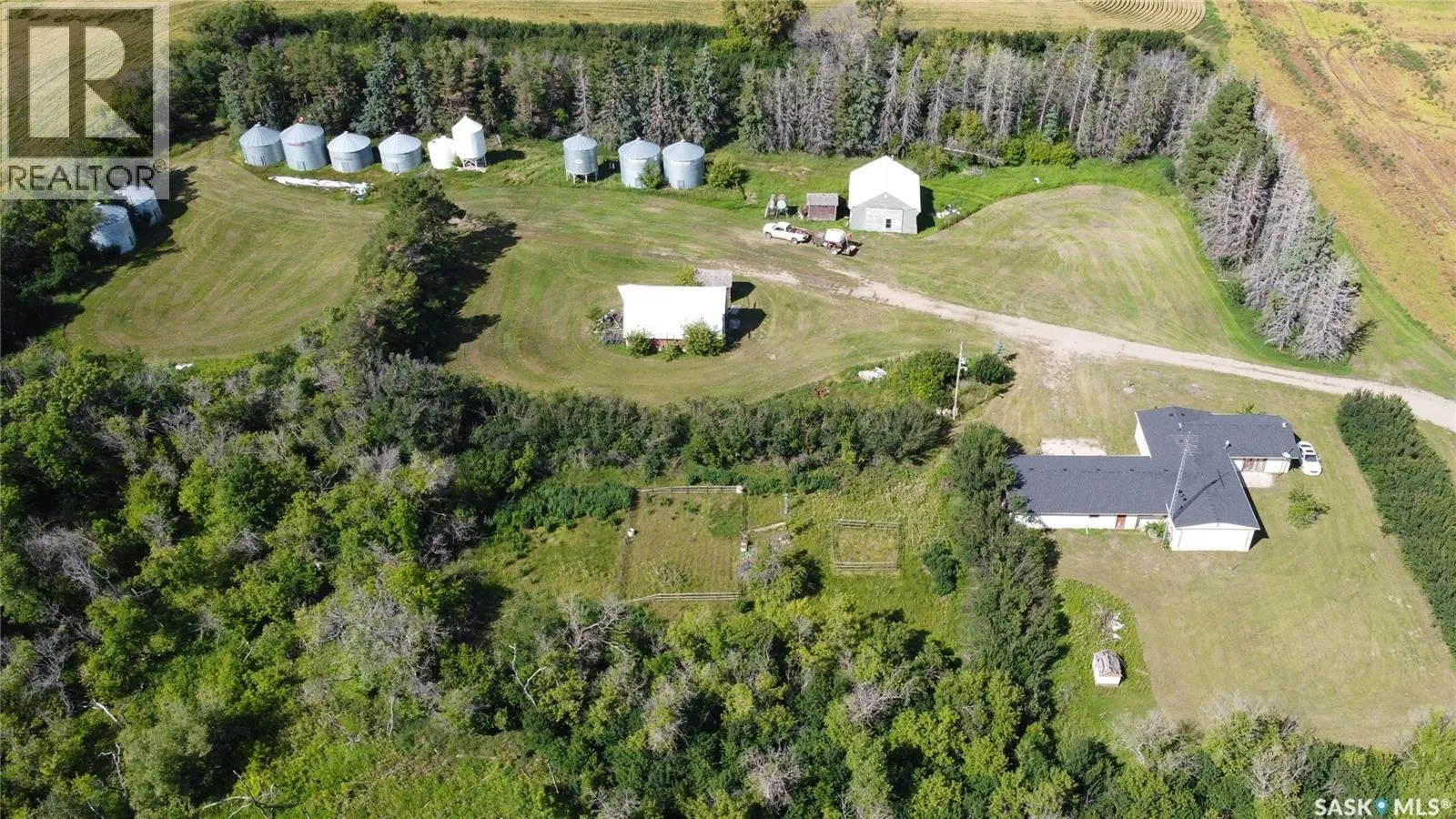 Portion of SE-18-27-22-2 - Pin location on realtor.ca is exact and correct Welcome to the Lakness Acreage nestled in the picturesque Last Mountain Valley. This 1977 built double wide mobile home has both a porch and family room addition bringing its total size to 2,160 square feet. The home has 3 bedrooms, 2 bathrooms and sits on a massive 13.97 sprawling acres of land close to the town of Govan Saskatchewan. The property is well-equipped for farming, storage, and working featuring a 26 x 36 barn, a shed, a 28 x 36 heated workshop, a double attached 24 x 26 garage and a single 14 x 26 garage! You enter the home into the huge mud room with two closets for your outdoor wear, access to the garage and handy storage cabinets. This will also be your future laundry room! Down the staircase is the partial, unfinished basement that houses the owned furnace and gas water heater. The kitchen has ample room for a smaller table and chairs, an island with bar eating and the fridge, stove and dishwasher are all included. The dining room has a built-in dry bar and has space for a table that will seat the whole family! Perfect for hosting large gatherings! The family room has a large bay window overlooking the yard that fills the space with natural light. A step down is the gorgeous additional living room with high ceilings, a wood-burning brick fireplace, and sliding glass doors that lead into the yard. Next are two bedrooms and the main 4 piece bathroom. Finishing off the home is the primary suite with a walk in closet, vanity and 4 piece en suite bathroom! This home also features central air conditioning and a 100 amp electrical panel, an updated roof as well as well water and a septic pump out. (id:27476)