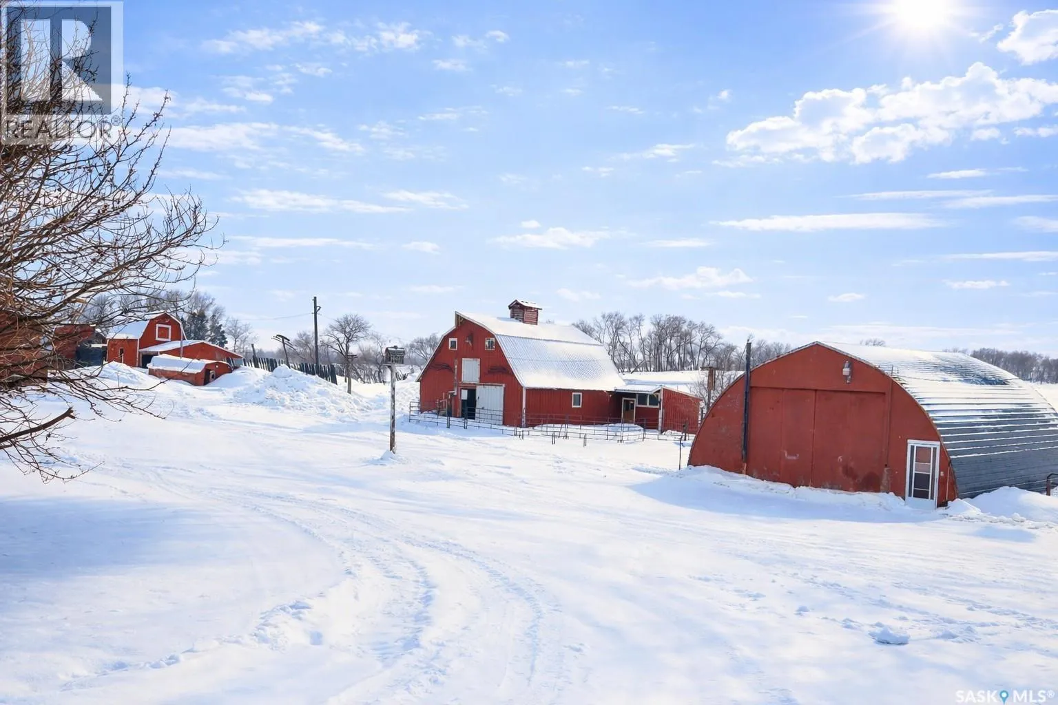 Welcome to this outstanding 17.04-acre country property, ideally located in the RM of Leask within the Brightholme District. Set in a peaceful and private rural setting, this well-developed farmstead offers an excellent opportunity for those seeking a hobby farm, small livestock operation, or tranquil country living with a move-in-ready family home. The beautifully established yard site is framed by sweeping prairie views and features an impressive collection of functional agricultural and utility buildings. Improvements include a large barn, a second mid-sized barn, pole shed/livestock shelter, brooder house with chicken coop, two heated watering bowls, an insulated 1,200 sq. ft. shop, a 1200-bushel hopper-bottom grain bin, and multiple additional storage shedsâproviding versatility and ample space for equipment, animals, and projects. Adding unique historical charm is the original Brightholme Lutheran Parsonage, over a century old and still standing solid, offering rare heritage character to the property. The 1737 sq. ft. residence is a well-maintained four-bedroom, one-bathroom home that blends modern upgrades with warm country comfort. Recent improvements include a newly renovated kitchen, updated windows and doors throughout, a spacious porch addition, bright solarium, main-floor laundry, and a new propane furnace, ensuring efficiency and everyday convenience. The basement provides excellent additional space, ideal for a recreation room, along with a cold room and abundant storage. Outdoors, the mature yard is thoughtfully landscaped and includes a large garden area, fruit trees, and shrubs, enhancing both the visual appeal and self-sustaining potential of the property. This is a rare opportunity to own a turn-key acreage offering privacy, functionality, and character in a serene rural locationâperfect for those looking to embrace country living without sacrificing comfort. (id:27476)
