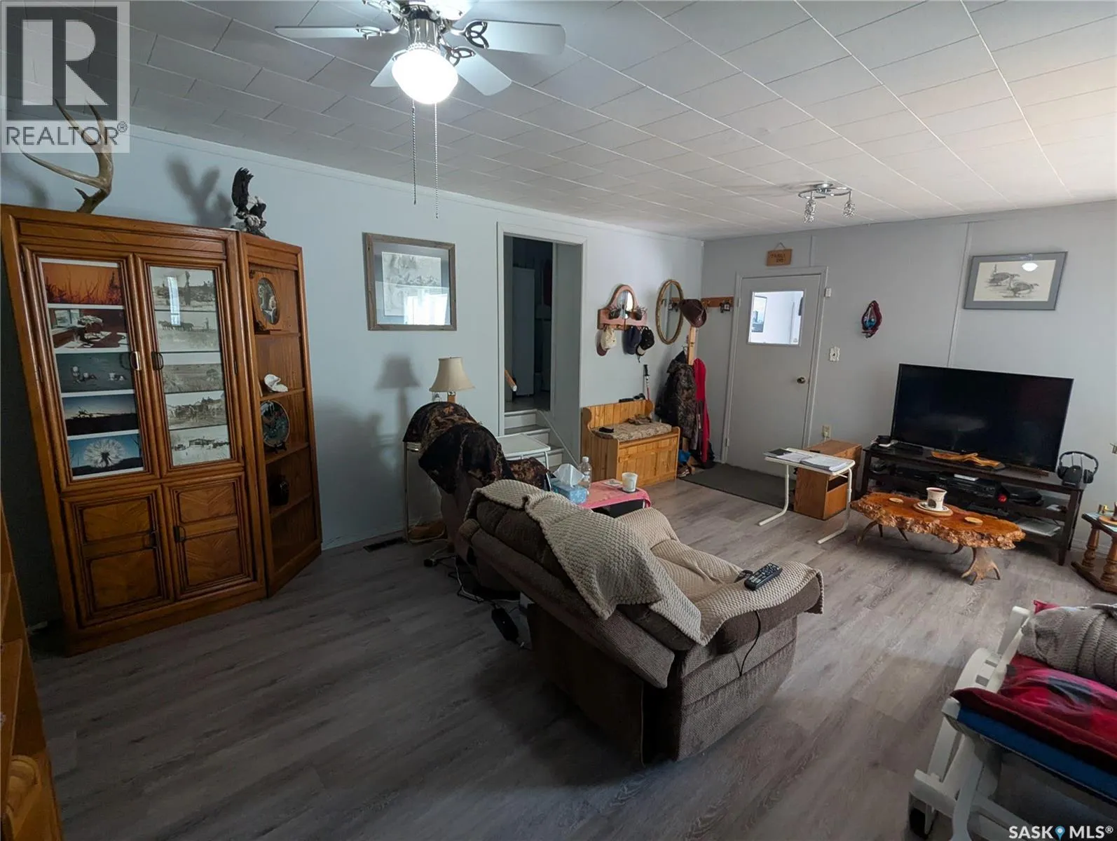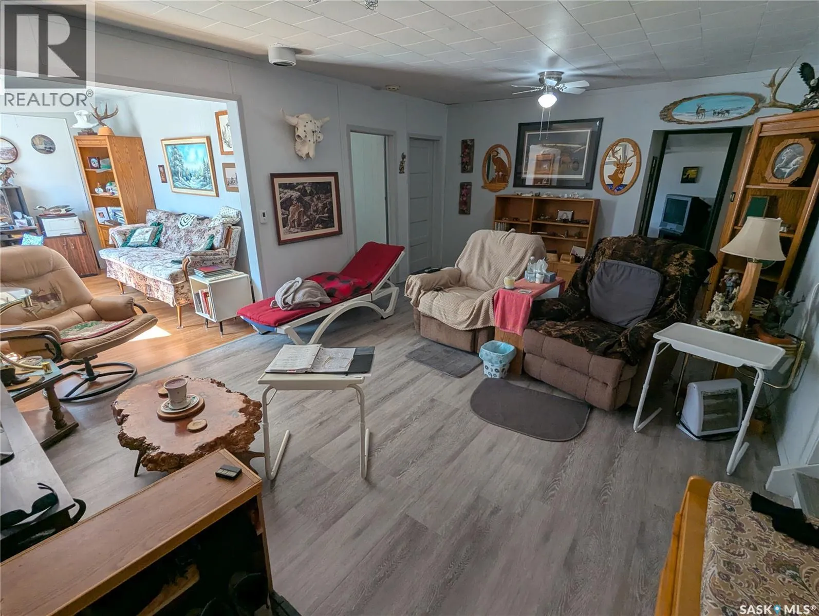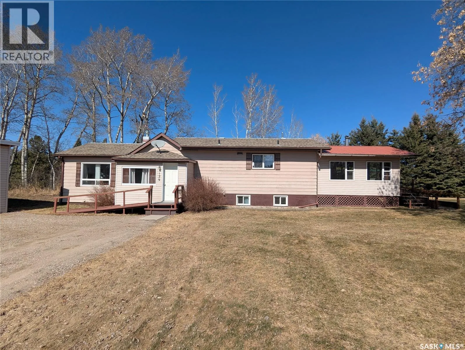 Welcome to 129 Lemieux Crescent! Arguably one of the nicest lots in the town of Leoville. Spanning 1.51 acres this lot is surrounded by both mature and freshly planted evergreens, giving you amazing scenery and privacy. Out back you will find your own walking path secluded in the trees. The square footage of the house is 1320 square feet that does not include the new addition that is another 208 square ft. This home has newer pvc windows, laminate throughout, new lighting and a fresh paint job throughout the home. There is also a newer 24 x 24 detached garage! On top of that two large sheds for storage. This home has 3 bedrooms and 2 baths with the space to convert more space into bedrooms if needed. There are 3 wells on the property. The home has its own sewer system with a sewage holding tank and mound system. Most furniture and the riding mower can be included in the sale. This is a home you don't want to miss out on. Call to view! (id:27476)