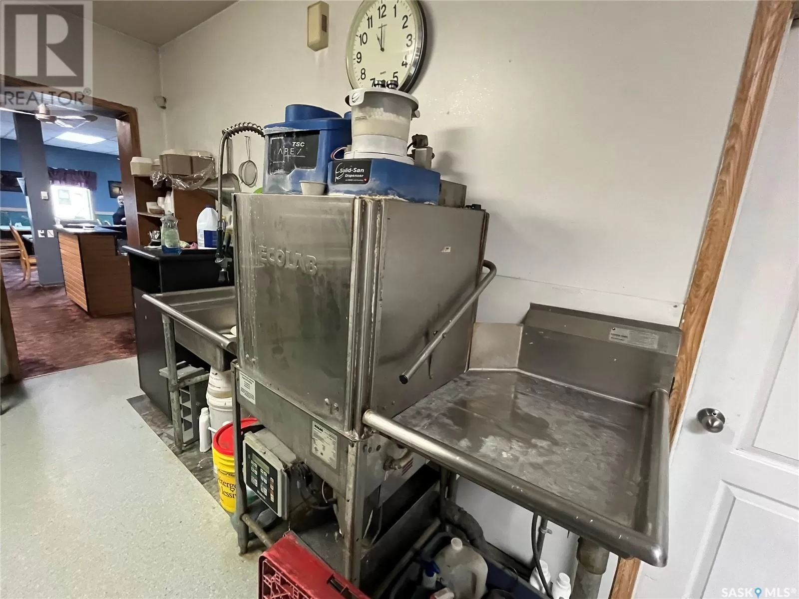 This listing has options, options, options. It is currently ran as a restaurant with Liquor license for dine in and Offsale. Backing highway 49 in the town of Lintlaw this property is right in the middle of hunting, snowmobile, fishing, and recreation country and this property offers a great commercial opportunity. This 1941 build was added onto in 1996 with the restaurant seating area, the two public bathrooms and the entire living quarters on second floor. The property has a entrance for the second floor and could easily be converted into a rental space if the owner doesn't to occupy it. The restaurant has wheelchair access. The kitchen included gas broiler, 4 top burners, flat top grill, ovens, pizza oven, deep fryer, commercial toaster, prep table with refrigeration, and commercial dishwasher unit. The property also has freezers, and more you can offer on. Living quarters includes a large living room with a kitchen area, 3 bedrooms, and 4-piece bathroom. The main floor offers the restaurant public area, 2 public washrooms, 1 staff washroom with laundry hook ups, storage areas, furnace room (for second floor), and office. The property features a nice back yard and good sized deck. Don't want a business? The sellers would consider selling as a building only and removing or auctioning off the commercial equipment and fixtures. This could make a great large home with huge kitchen, and living room on main floor three bedrooms up and office could be converted to a main floor bedroom. (id:27476)