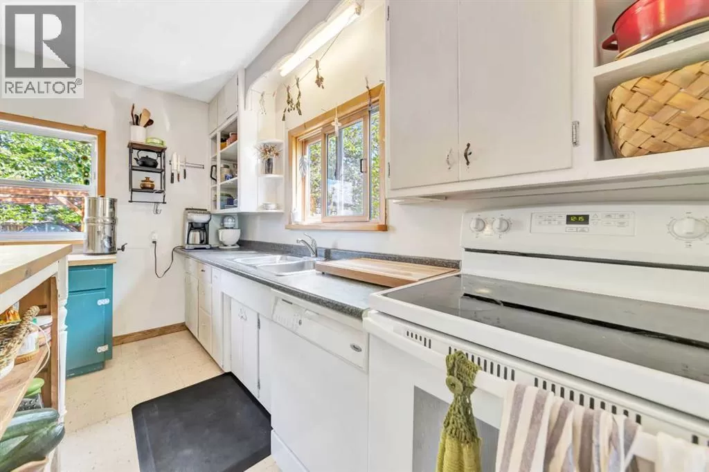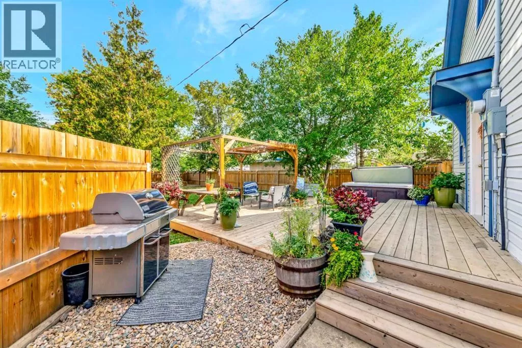 This charming home sits on a double lot and is bursting with character! The open floor plan features a functional kitchen with space for a table and the bright South facing living room features original hardwood flooring. The main floor also consists of 2 good sized bedrooms and a fully renovated bathroom. Upstairs you'll find the primary oasis! Huge space featuring lots of space for a king size bed, a sitting area, vanity area, large closet and a 3 piece ensuite! The backyard is private and tranquil with lots of trees, new fence, raised garden beds, large deck and an included hot tub to help unwind after your day! (id:27476)