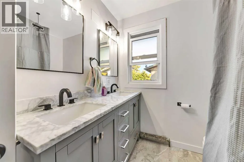 Full of charm and character, this bungalow is just steps from Jack Kemp School! The kitchen shines with updated cabinets, new appliances (2022), and excellent counter and storage space. The dining room flows seamlessly into a bright family room featuring stunning original hardwood floors and tons of natural light from the brand-new windows.The main floor includes three bedrooms, a hallway laundry closet, and a gorgeous fully renovated bathroom with double sinks. The finished basement adds even more living space with new flooring, an additional bedroom and bathroom, a spacious family room, and loads of storage.Outside, enjoy a large private yardâperfect for relaxing or entertaining. Recent updates also include modern light fixtures and a new boiler (2018). (id:27476)