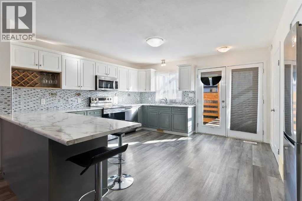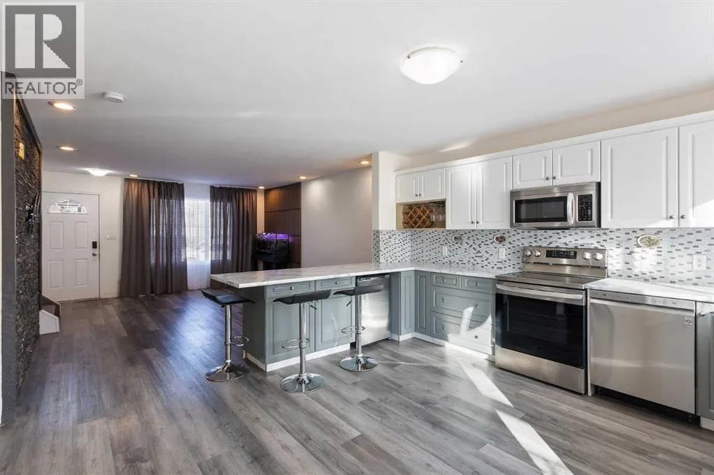 This modern, fully updated townhouse is move-in ready and designed for style and function. Featuring new laminate flooring throughout, a freshly upgraded kitchen with sleek new countertops, modern colors, and new kitchen appliances, this home delivers a bright and inviting atmosphere. The bathrooms have been tastefully updated, and with four bedrooms and three bathrooms, thereâs space for the whole family or guests. The open-concept living area highlights a stunning rock focal wall that adds warmth and character, leading to your private patio and fenced-in deck area â complete with bistro lights for cozy evenings outdoors. This turnkey home perfectly blends comfort, convenience, and modern design, making it an ideal choice with affordability in mind. (id:27476)