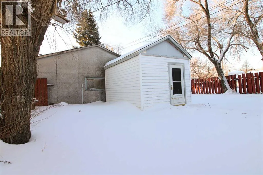 This 1955 bungalow is located on the Saskatchewan side of Lloydminster close to shopping, the Jack Kemp Community School, Glendale Park, and the dog park. The home boasts a functional family layout with an eat-in kitchen, living room, 2 bedrooms, and a 4-pc bathroom on the main level. The basement doubles the living space and features a family room, bedroom, laundry with non-private 2-pc bath, and storage. Lots of expensive updates have already been done! The home has vinyl windows and vinyl siding. The shingles were new in 2022, and the furnace was replaced in 2021. There is back-alley access to this property. The back yard is fenced and has a 14 ft X 10 ft shed with power. There is also a 24 ft X 24 ft double detached garage with one vehicle door. The garage is in need of repair. Call to view this terrific property! (id:27476)