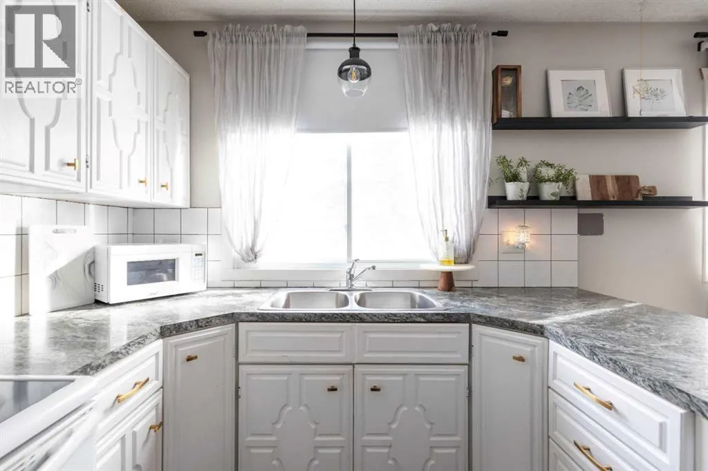 Located in Lloydminster on the Saskatchewan side, this well-kept home sits on a quiet street close to schools and parks, making it a great location for families. The main floor features an open concept kitchen and living area that creates a bright and welcoming space for everyday living and entertaining. With 3 bedrooms upstairs and 2 bedrooms downstairs, there is plenty of room for a growing family or guests.The basement has seen thoughtful updates over the years, including updated flooring, paint, baseboards, trim, and a modern 3-piece bathroom. This functional lower level offers two bedrooms, a large living room, and a convenient laundry and storage area, giving the home plenty of flexible living space.Outside, the mature backyard offers a peaceful setting with plenty of room to enjoy the outdoors. The yard is well treed, has space for a garden, and provides the perfect place to relax and enjoy the summer months. A standout feature of the property is the huge double detached garage with an impressive 27-foot depth, offering excellent space for vehicles, storage, or a workshop.This property offers great space inside and out, all in a quiet and convenient Lloydminster location.The basement has seen thoughtful updates over the years, including updated flooring, paint, baseboards, trim, and a modern 3-piece bathroom. This functional lower level offers two bedrooms, a large living room, and a convenient laundry and storage area, giving the home plenty of flexible living space.Outside, the mature backyard offers a peaceful setting with plenty of room to enjoy the outdoors. The yard is well treed, has space for a garden, and provides the perfect place to relax and enjoy the summer months. A standout feature of the property is the huge double detached garage with an impressive 27-foot depth, offering excellent space for vehicles, storage, or a workshop. (id:27476)